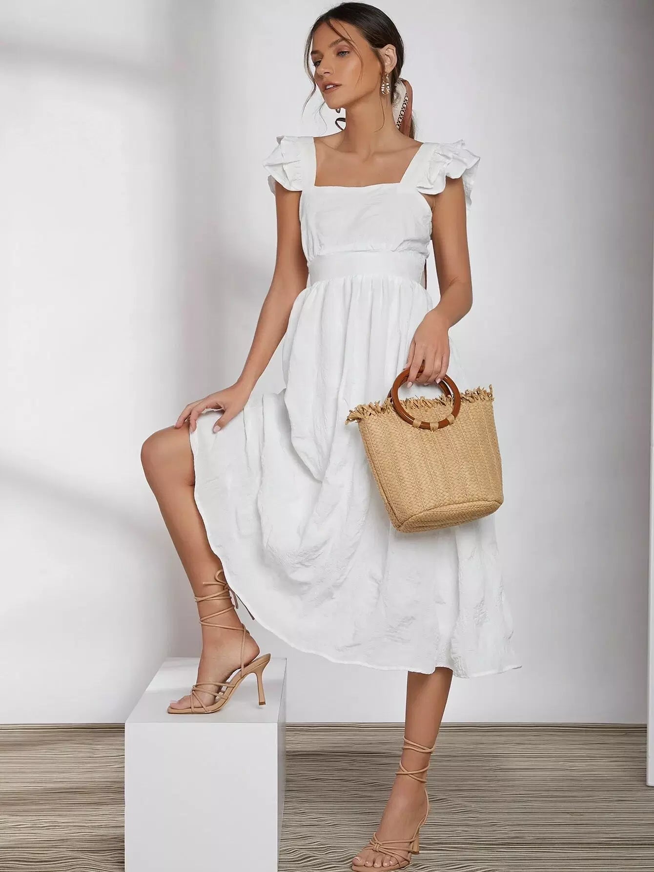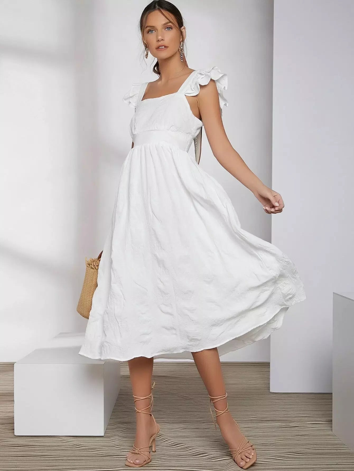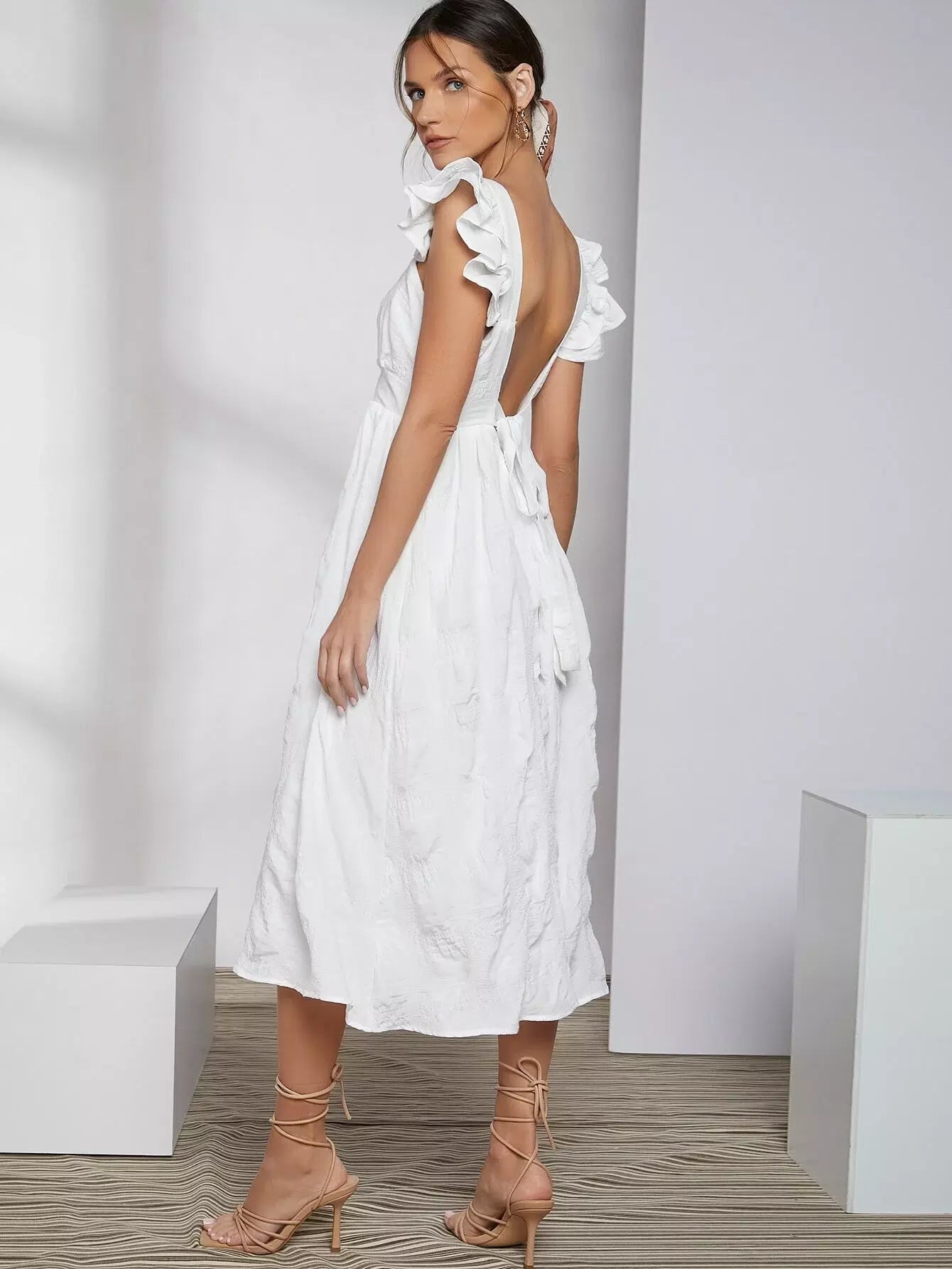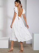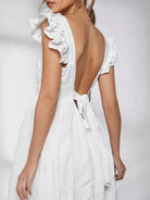 فستان كشكش بفتحة ذراع مكشكشة مربوط من الخلف