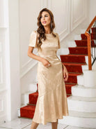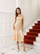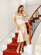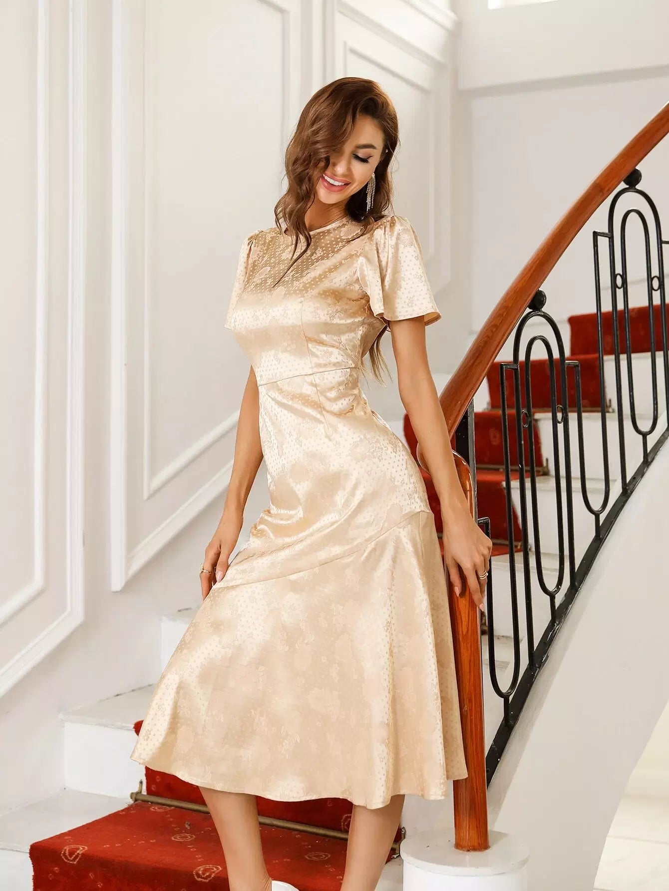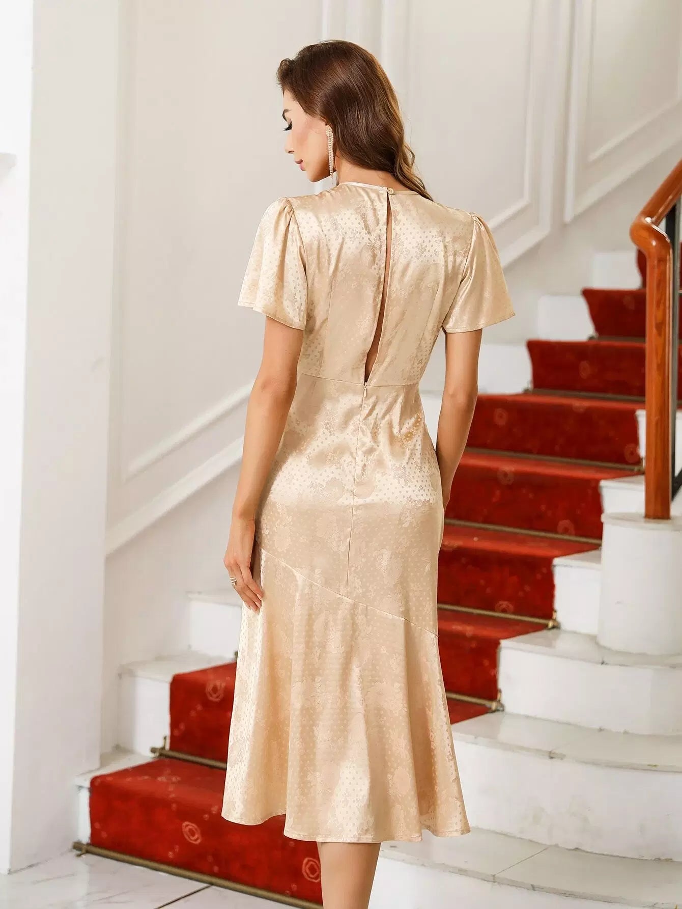 فستان ساتان بفتحة من الساتان بحافة كشكش من الخلف