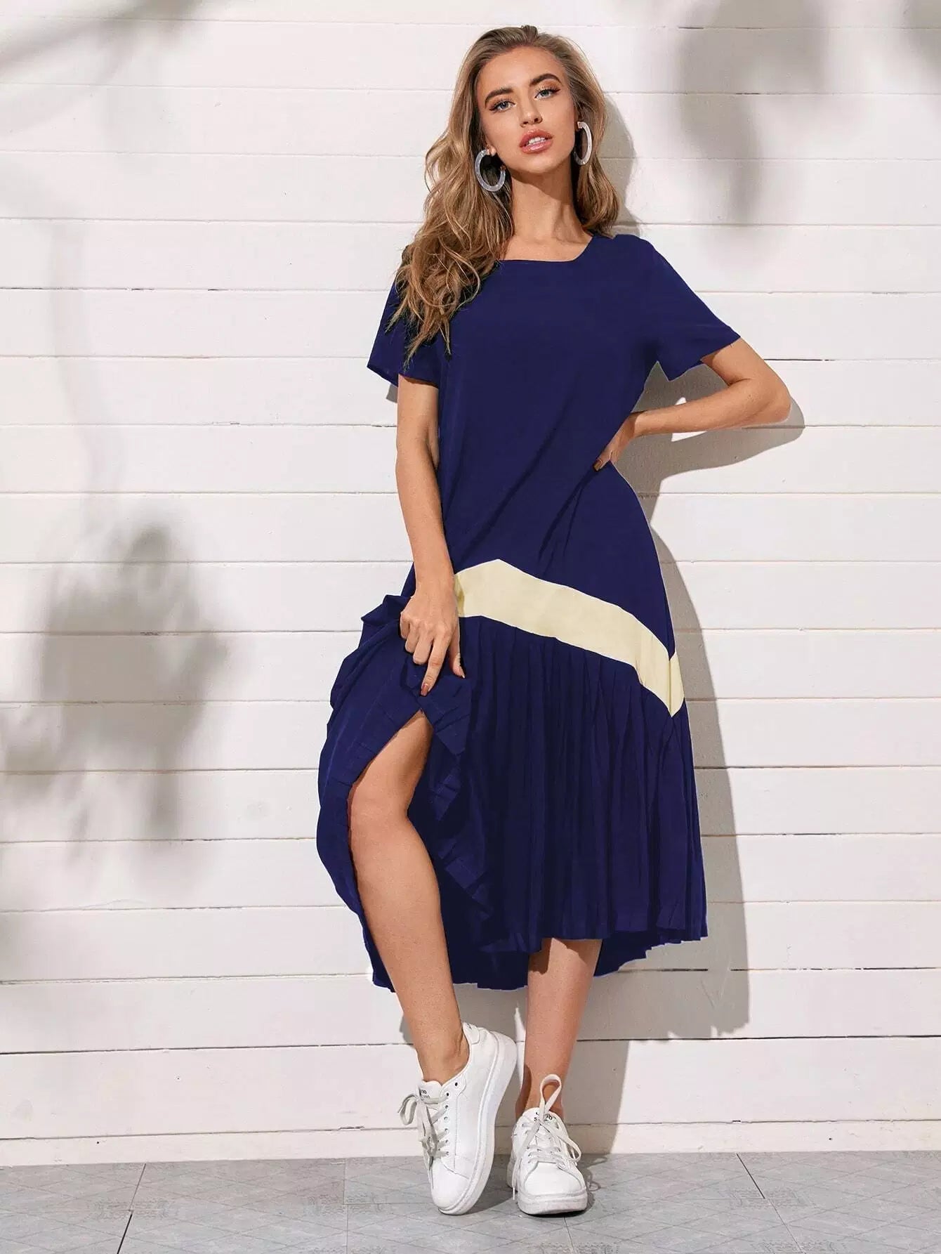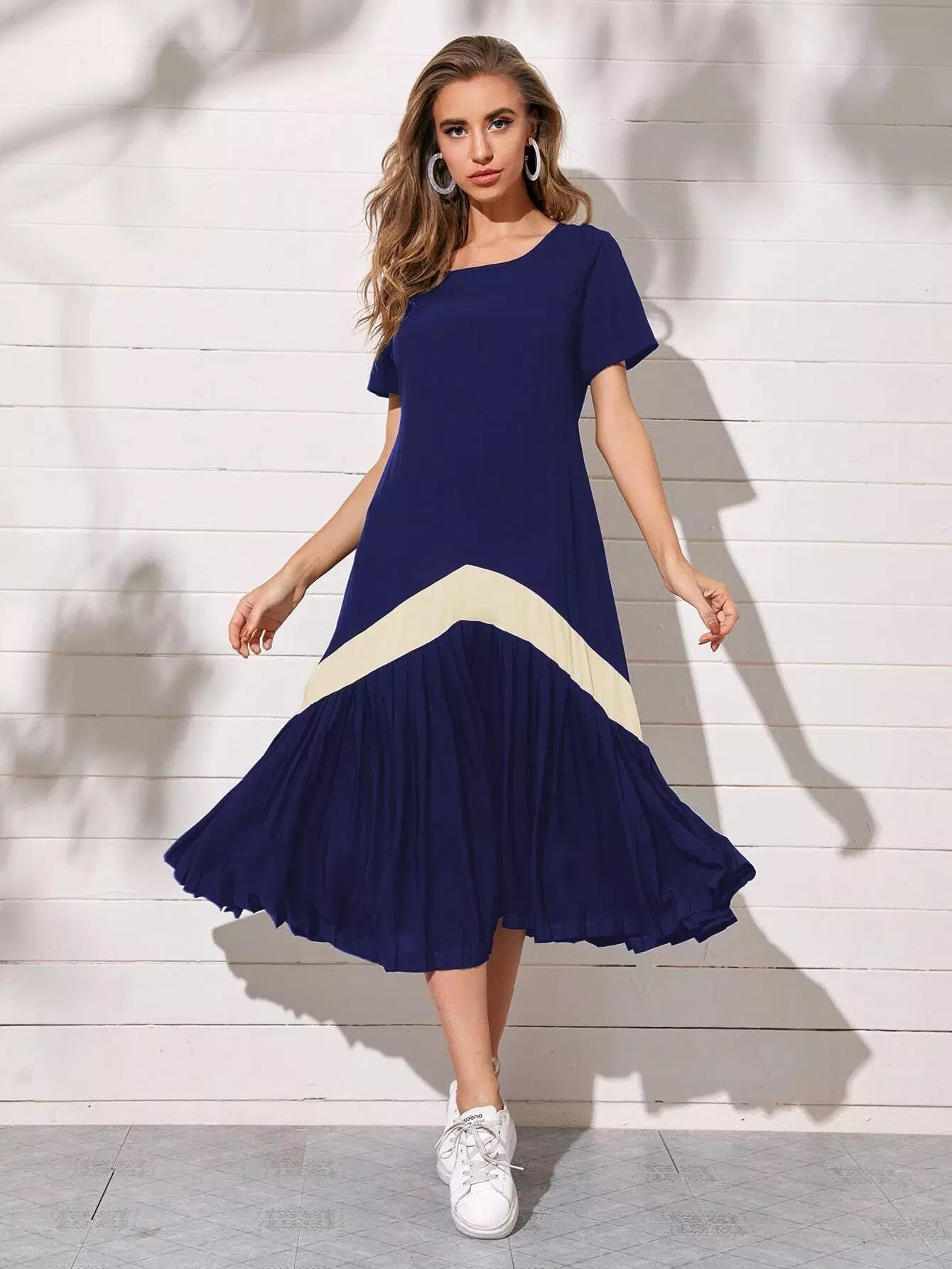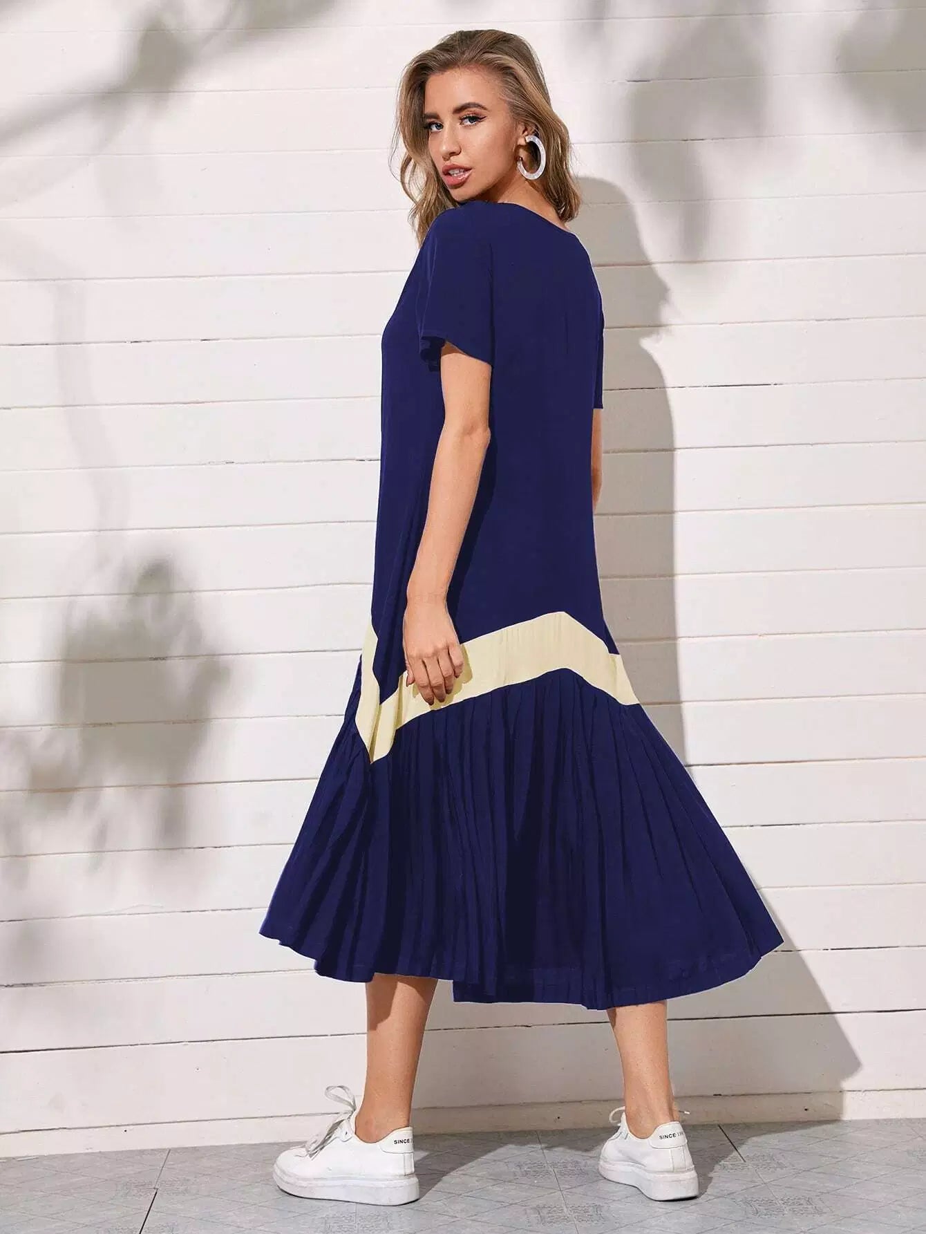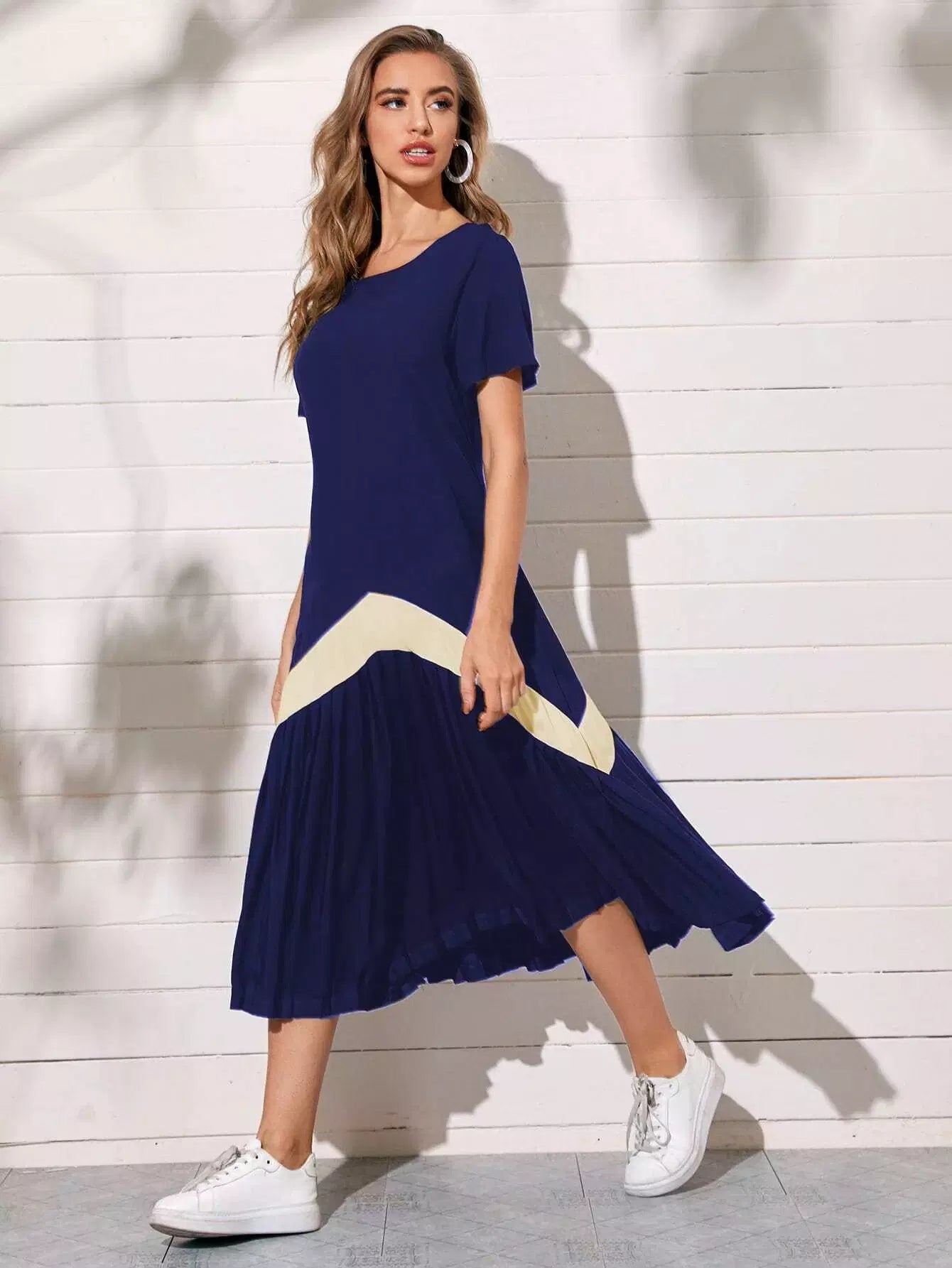 فستان بطبعة شيفرون برقبة مكشكشة بفتحة رقبة مكشكشة مطوية