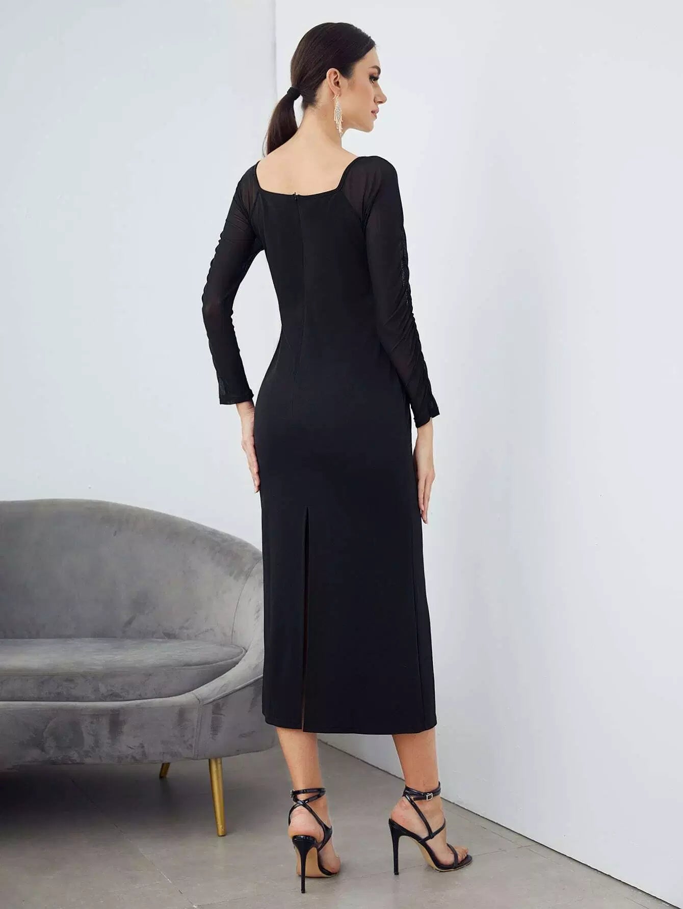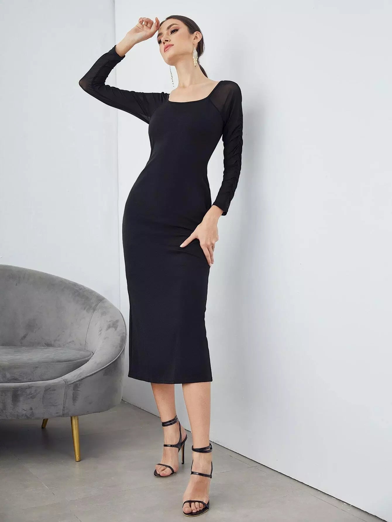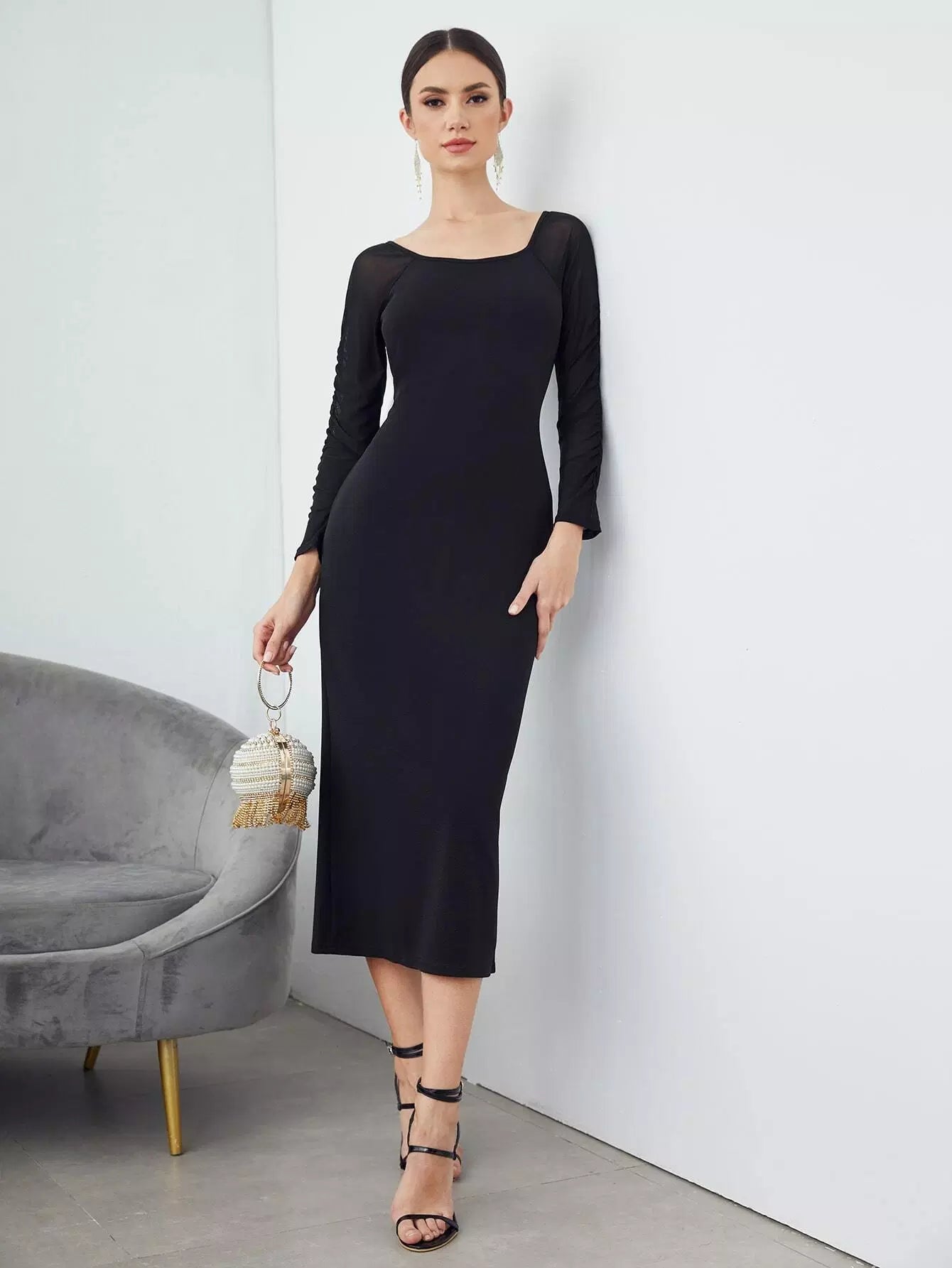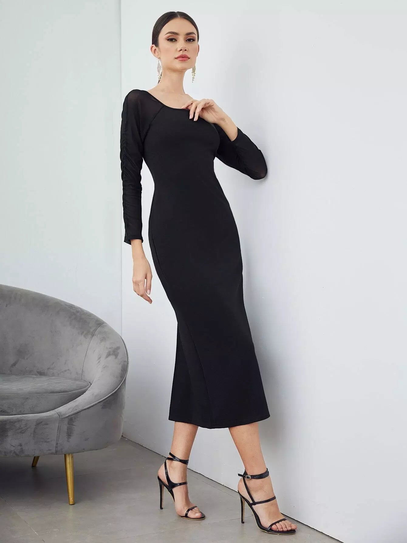 فستان ملائم بفتحة رقبة دائرية وظهر مفتوح