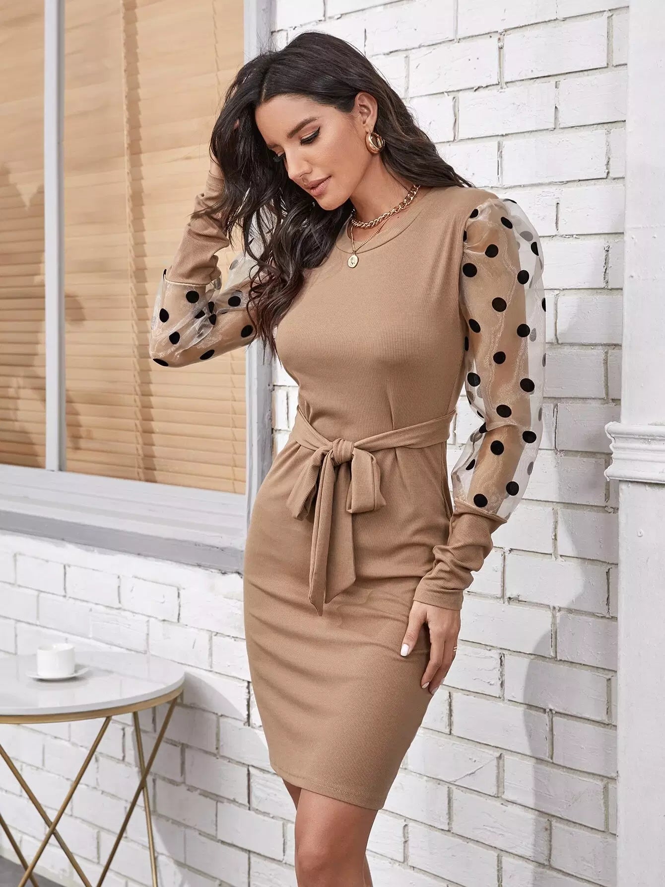 فستان شفاف بأكمام من الأورجانزا بدون حزام