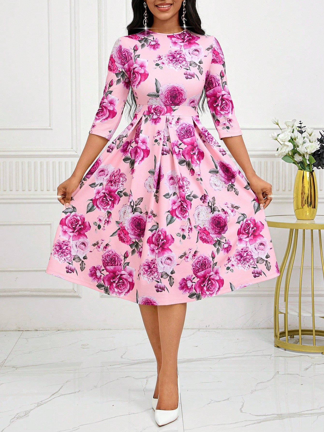 SHEIN Lady Fall/Winter Wedding Guest Dress Holiday Dresses Women's Fashion Casual Round Neck Knitted