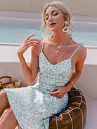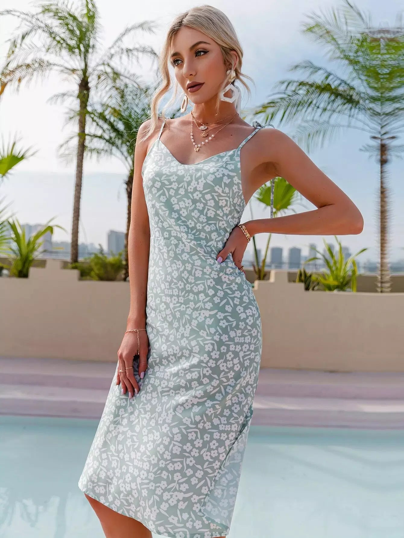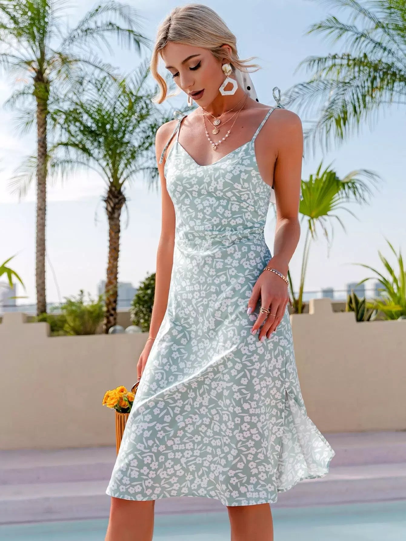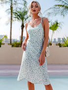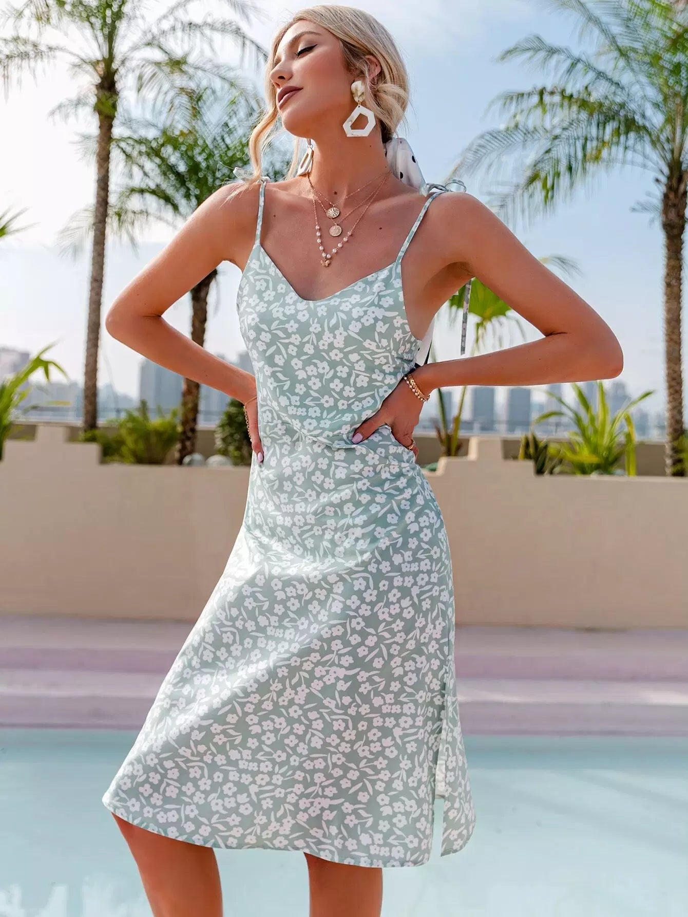 فستان مزين بفتحة كتف معقود من الخلف مزين بطبعة زهور