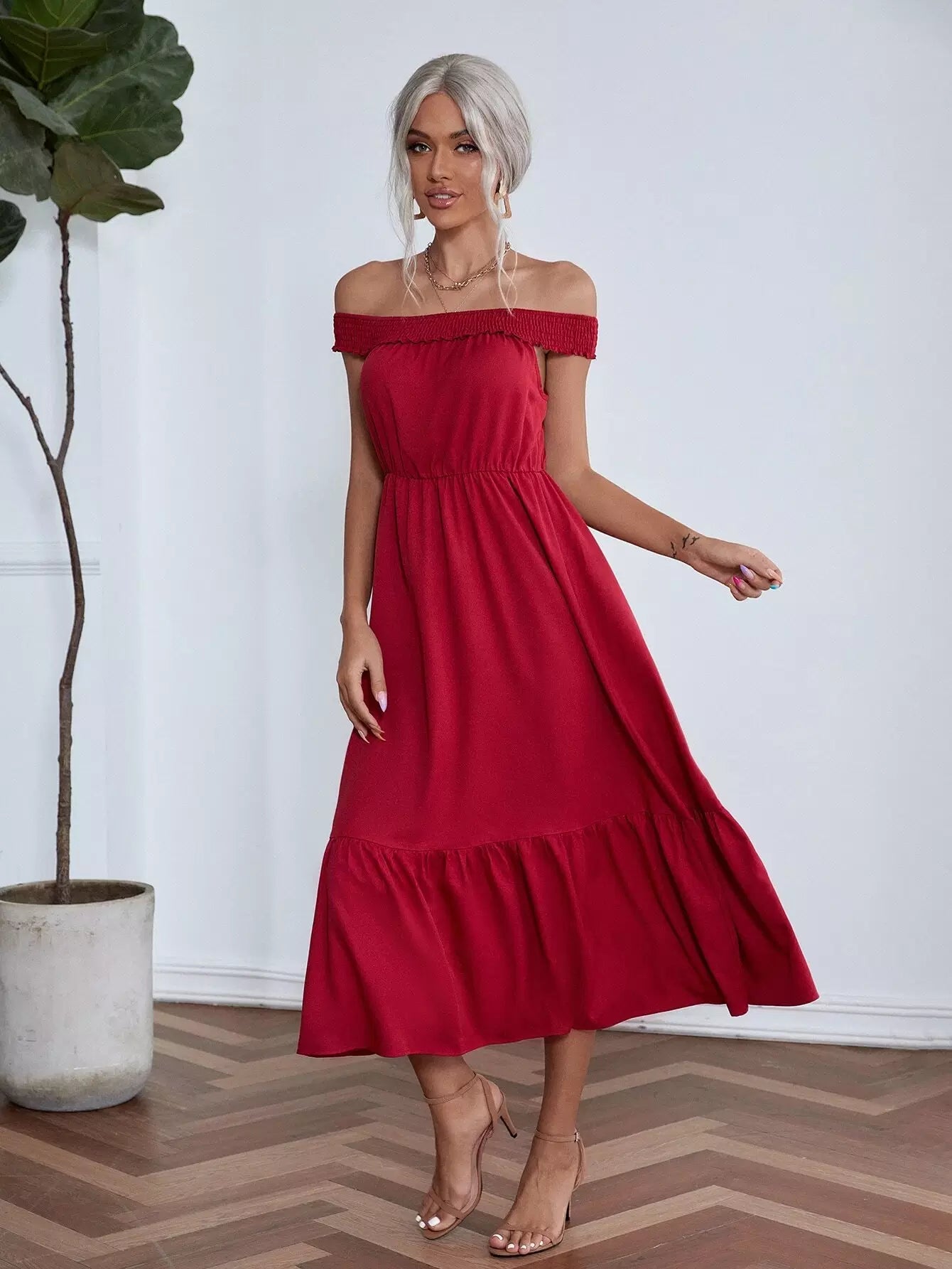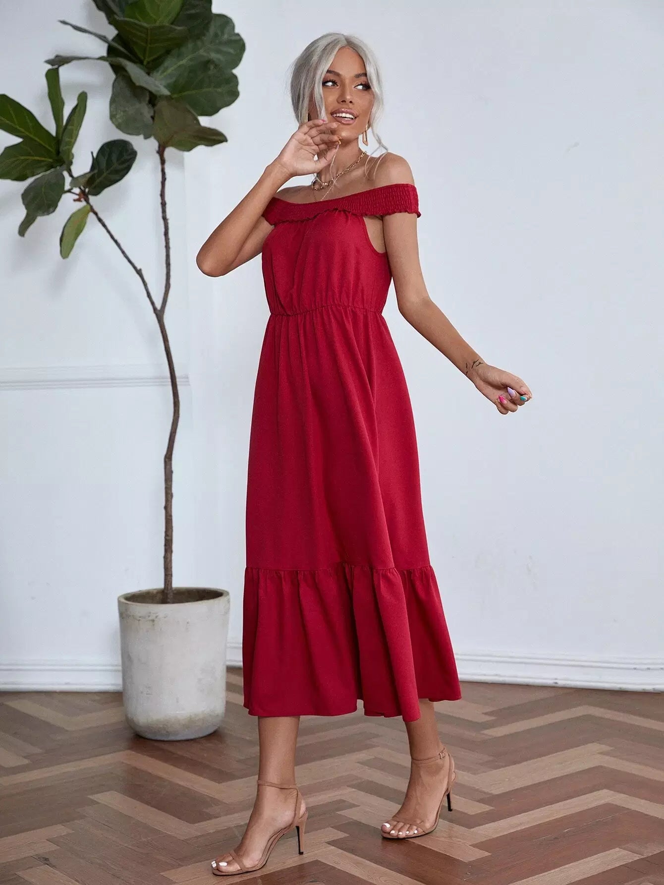 فستان كشكش بحواف كشكش كشكش بحواف كشكش