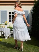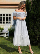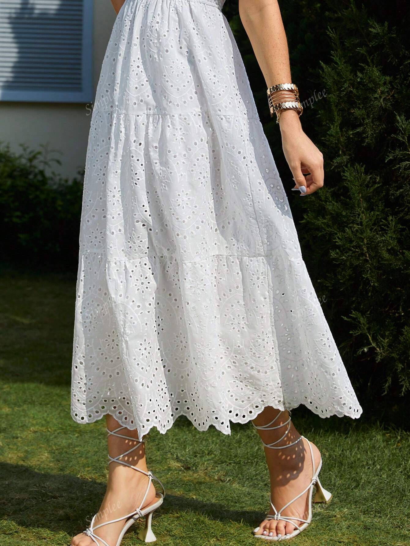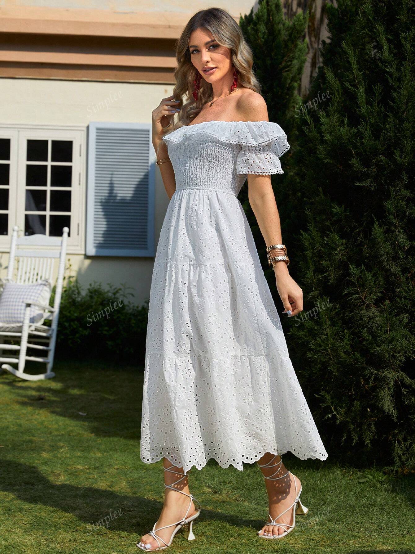 Simplee Women's Summer New Embroidery Solid Off Shoulder High Waist Dress, Party/Formal Dress, Suitable