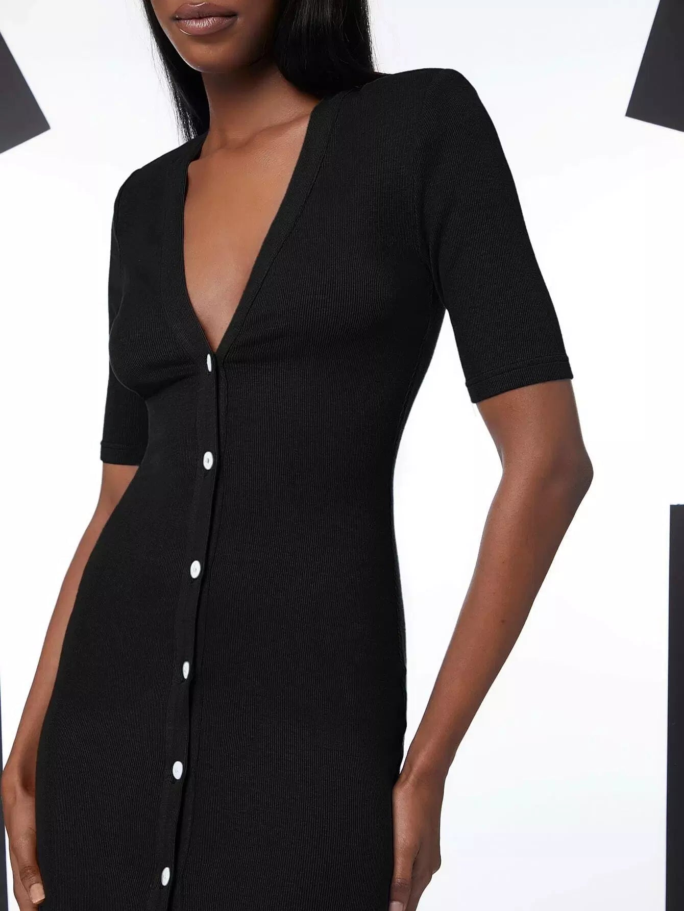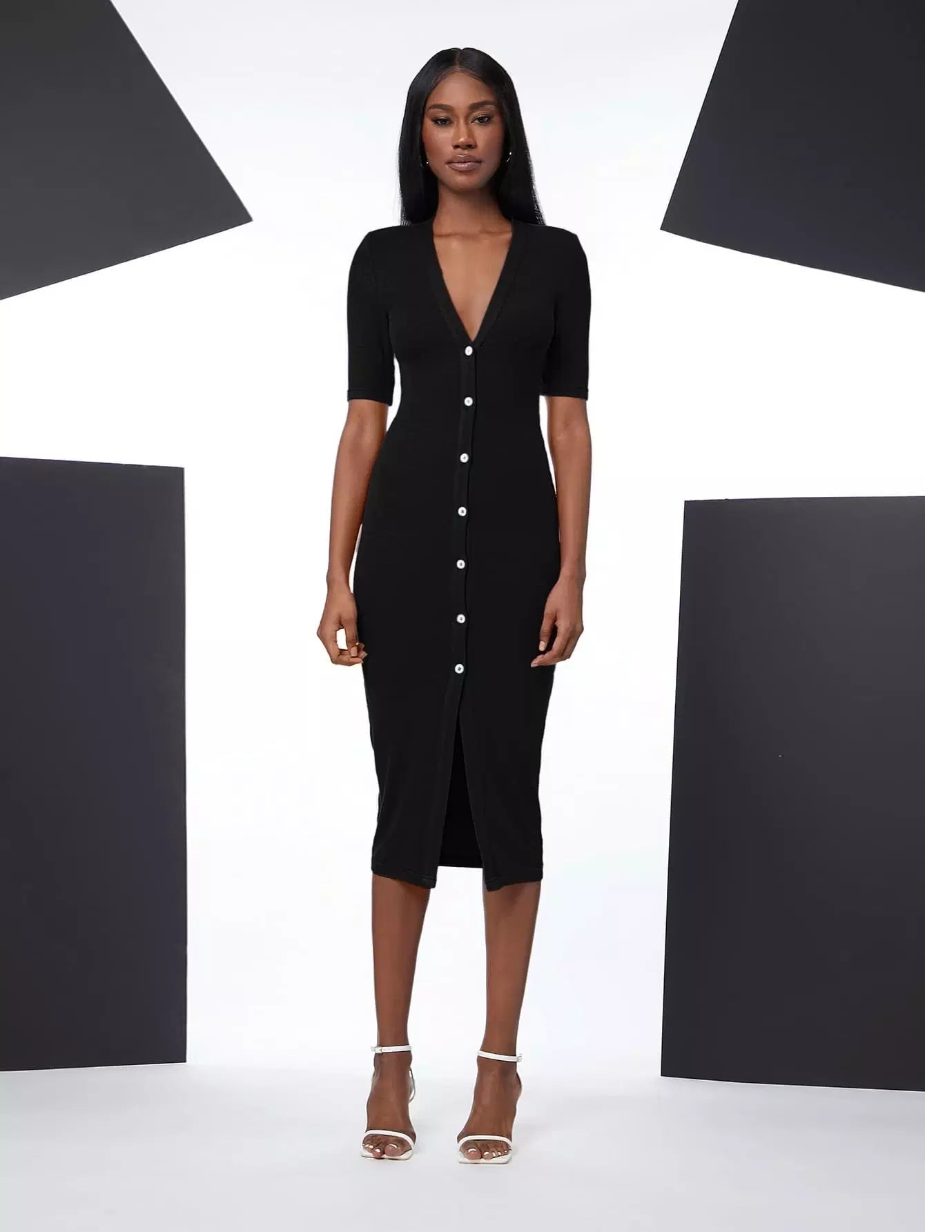 فستان سادة أمامي بصدر واحد