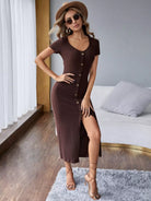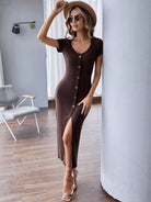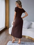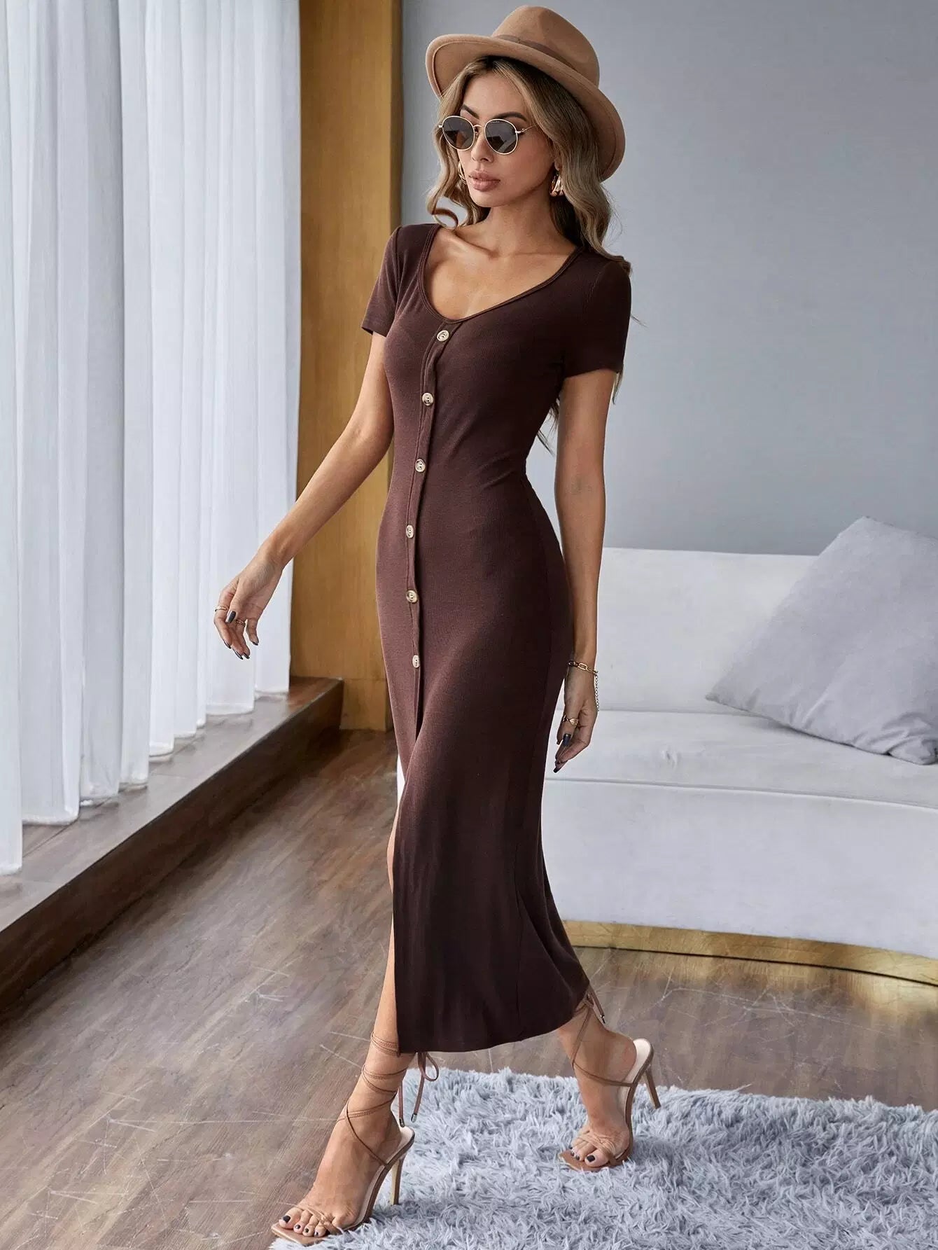 فستان بفتحة صدر واحدة مقسم على الفخذين