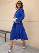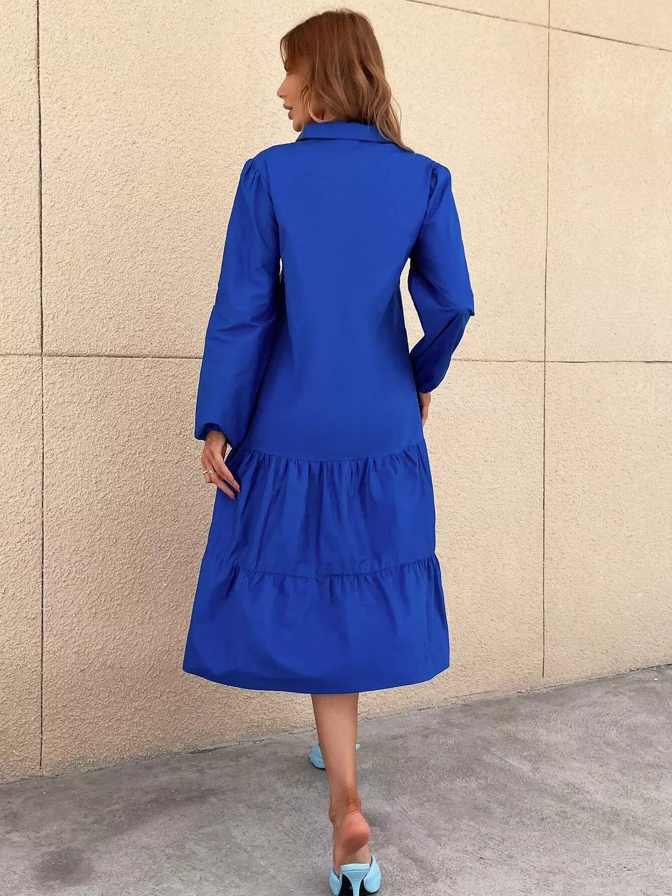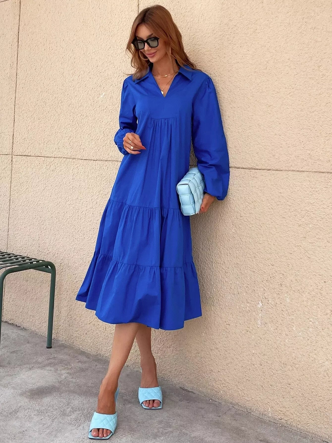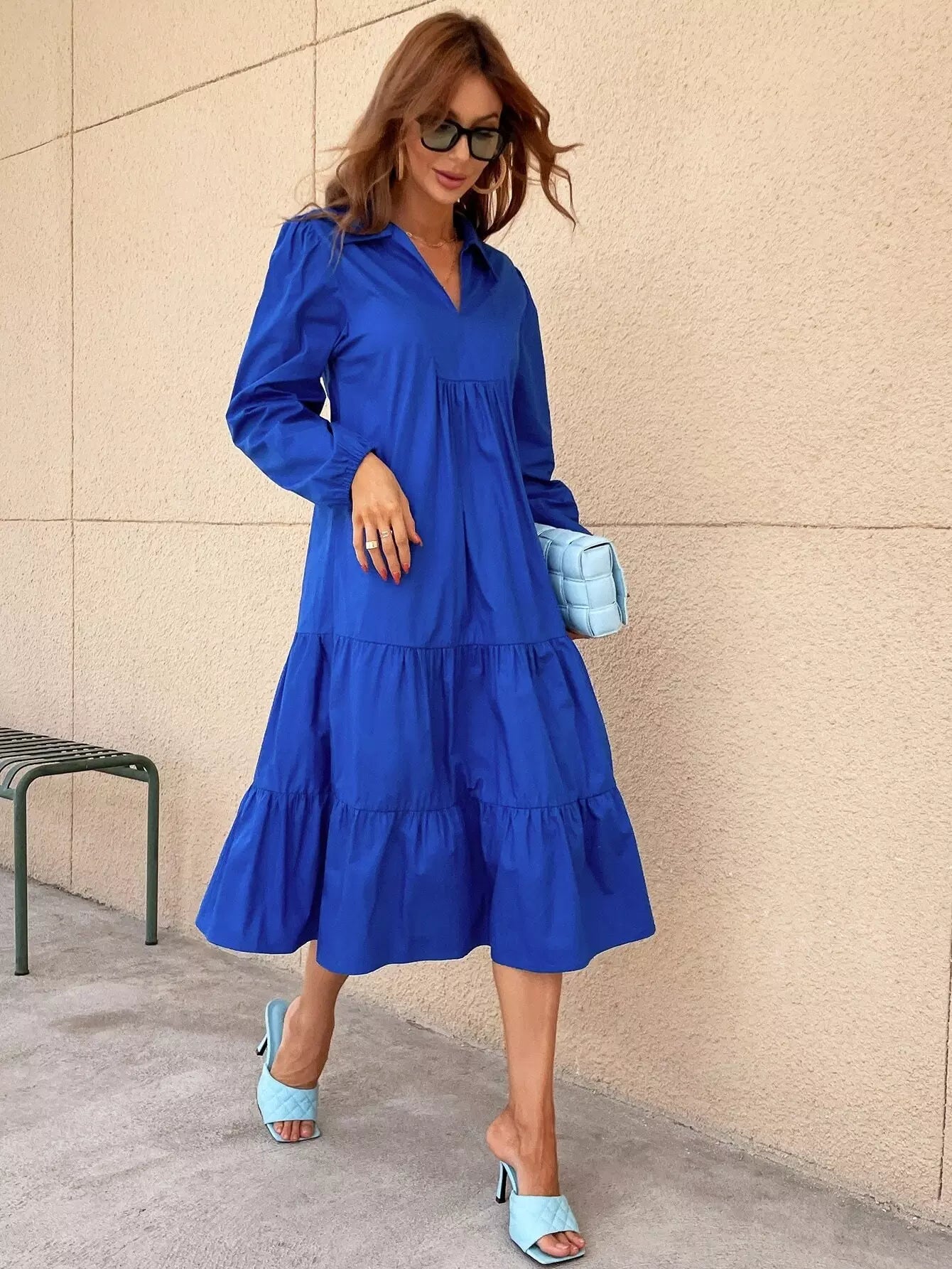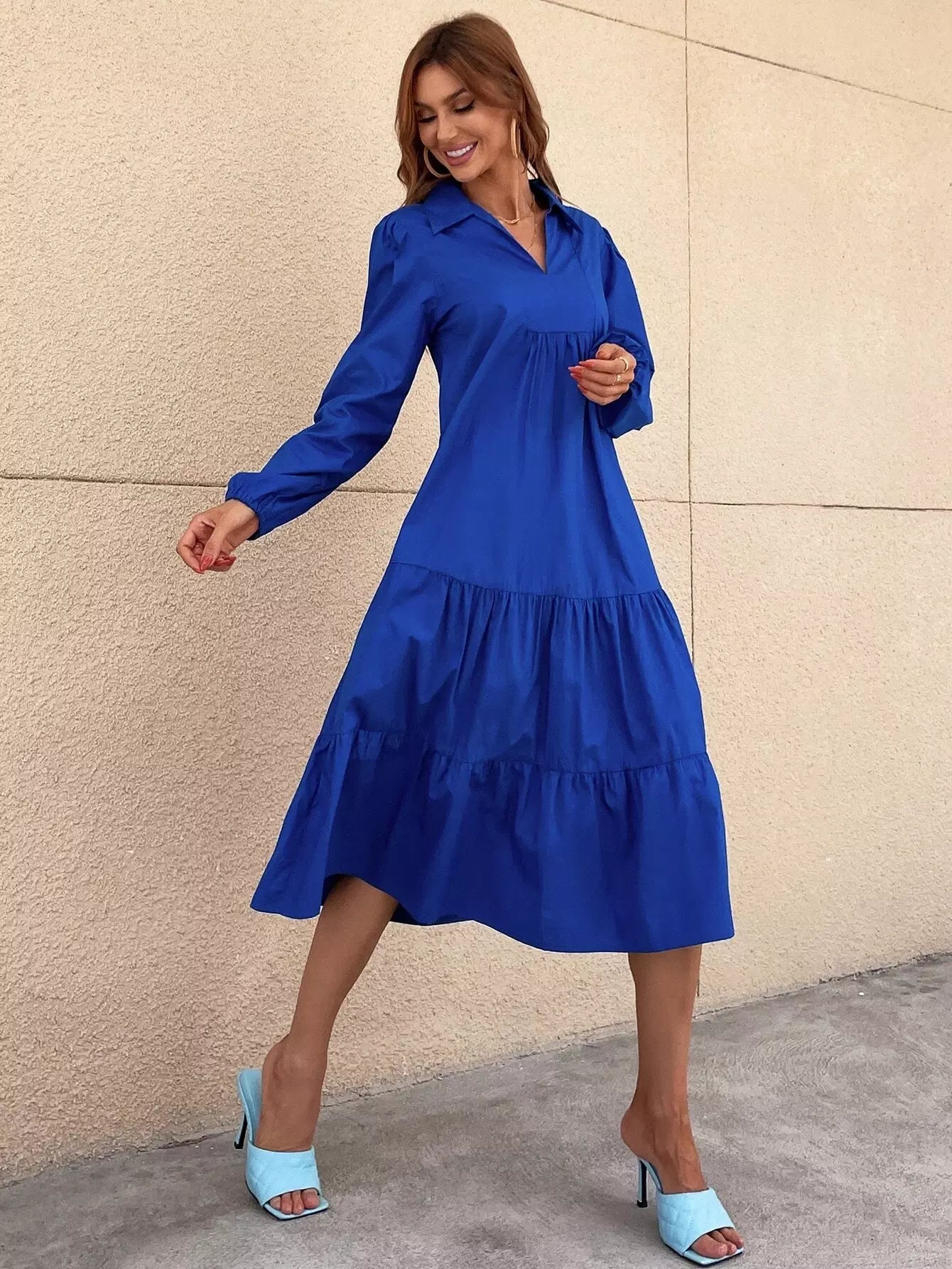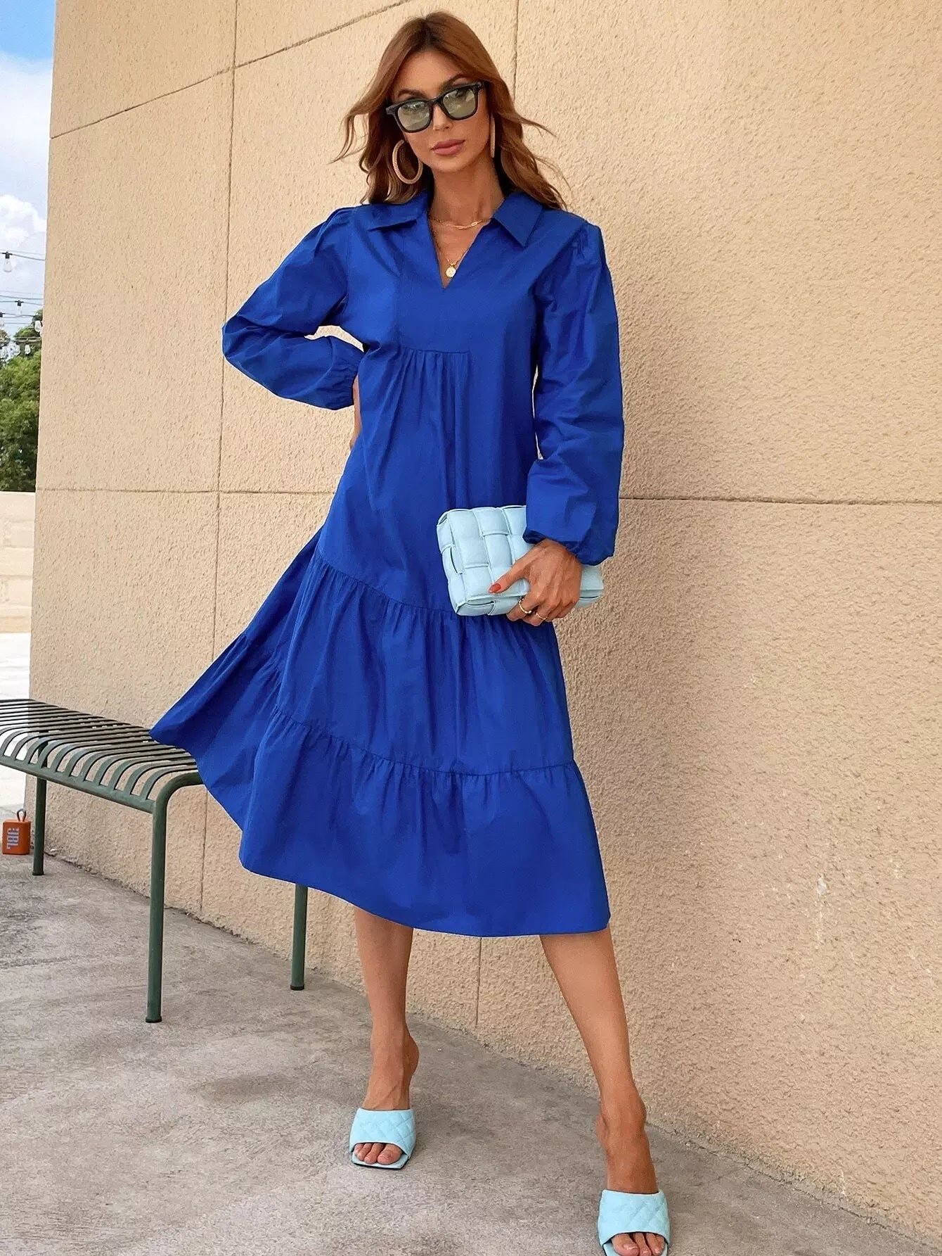 فستان بأكمام أسقفية سادة بأطراف مكشكشة