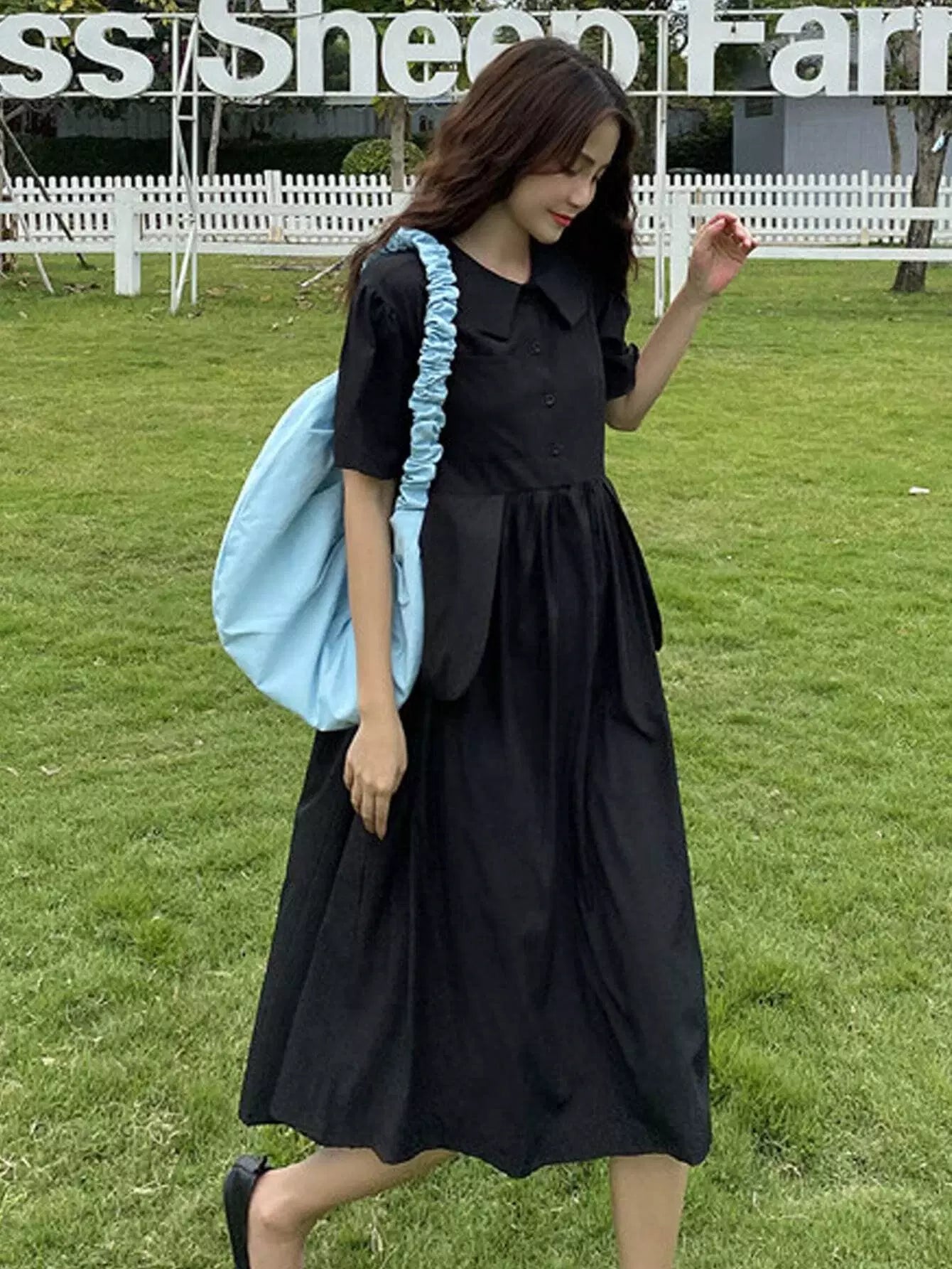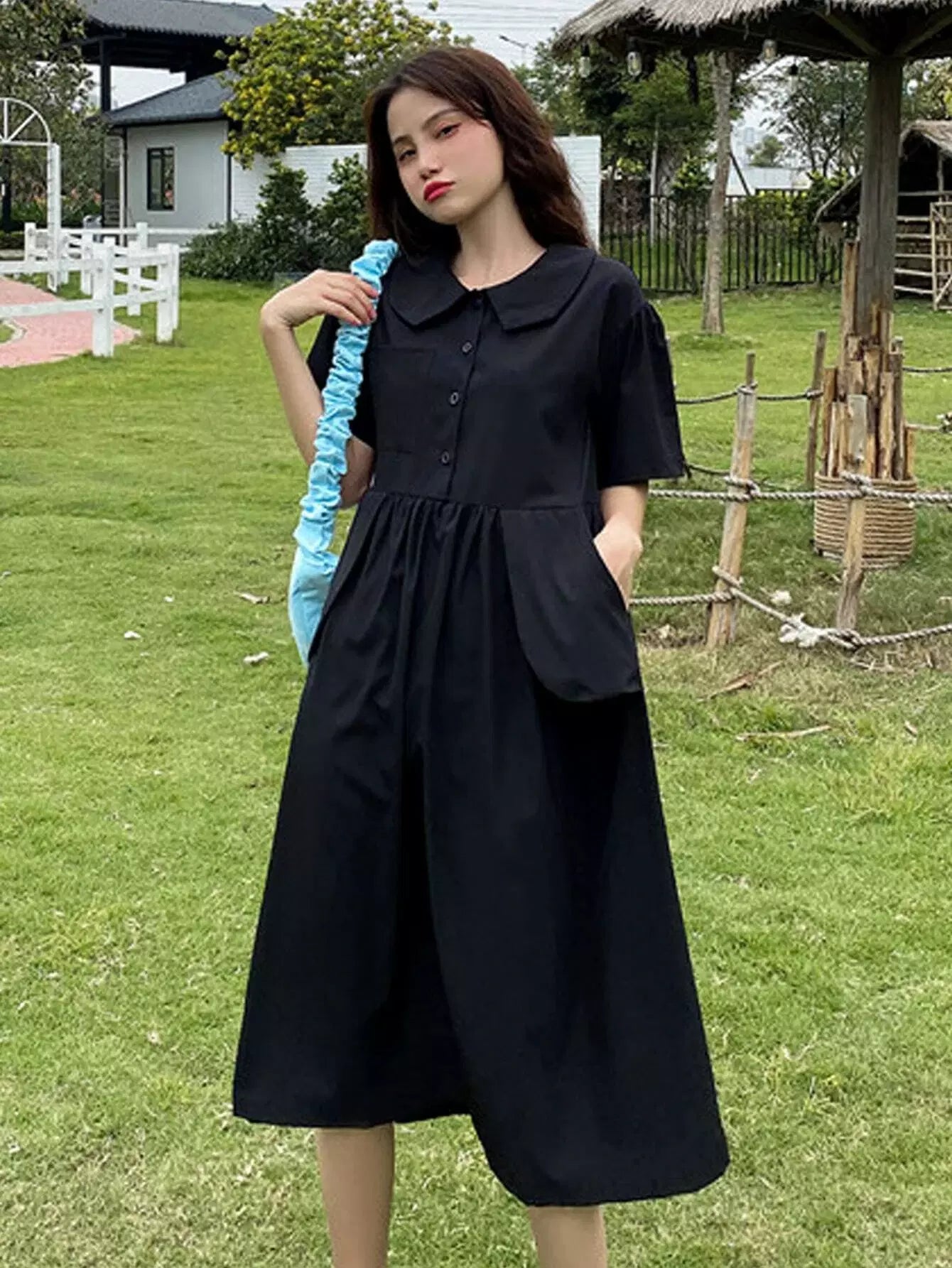 فستان قميصي سادة بأزرار أمامية