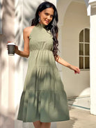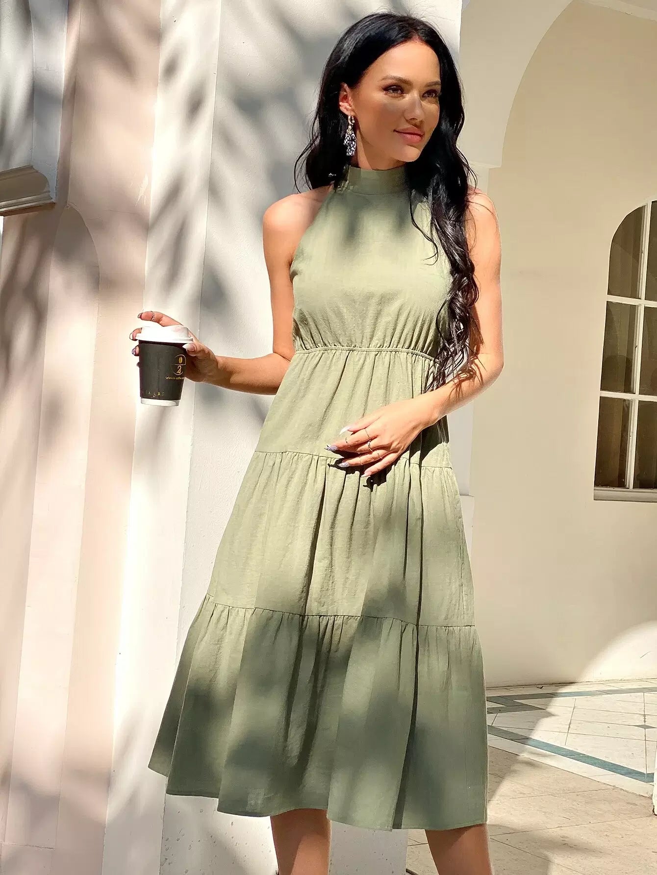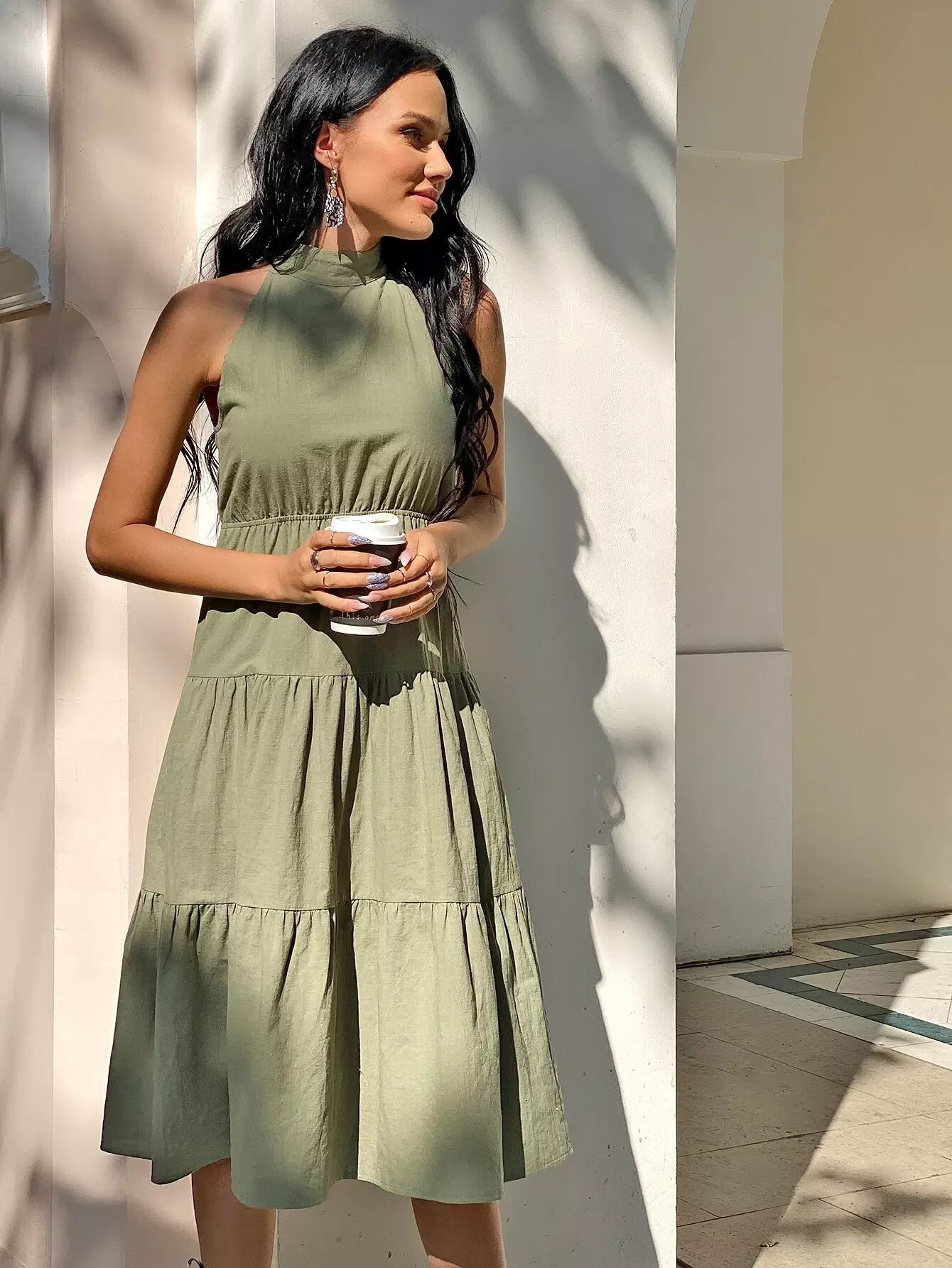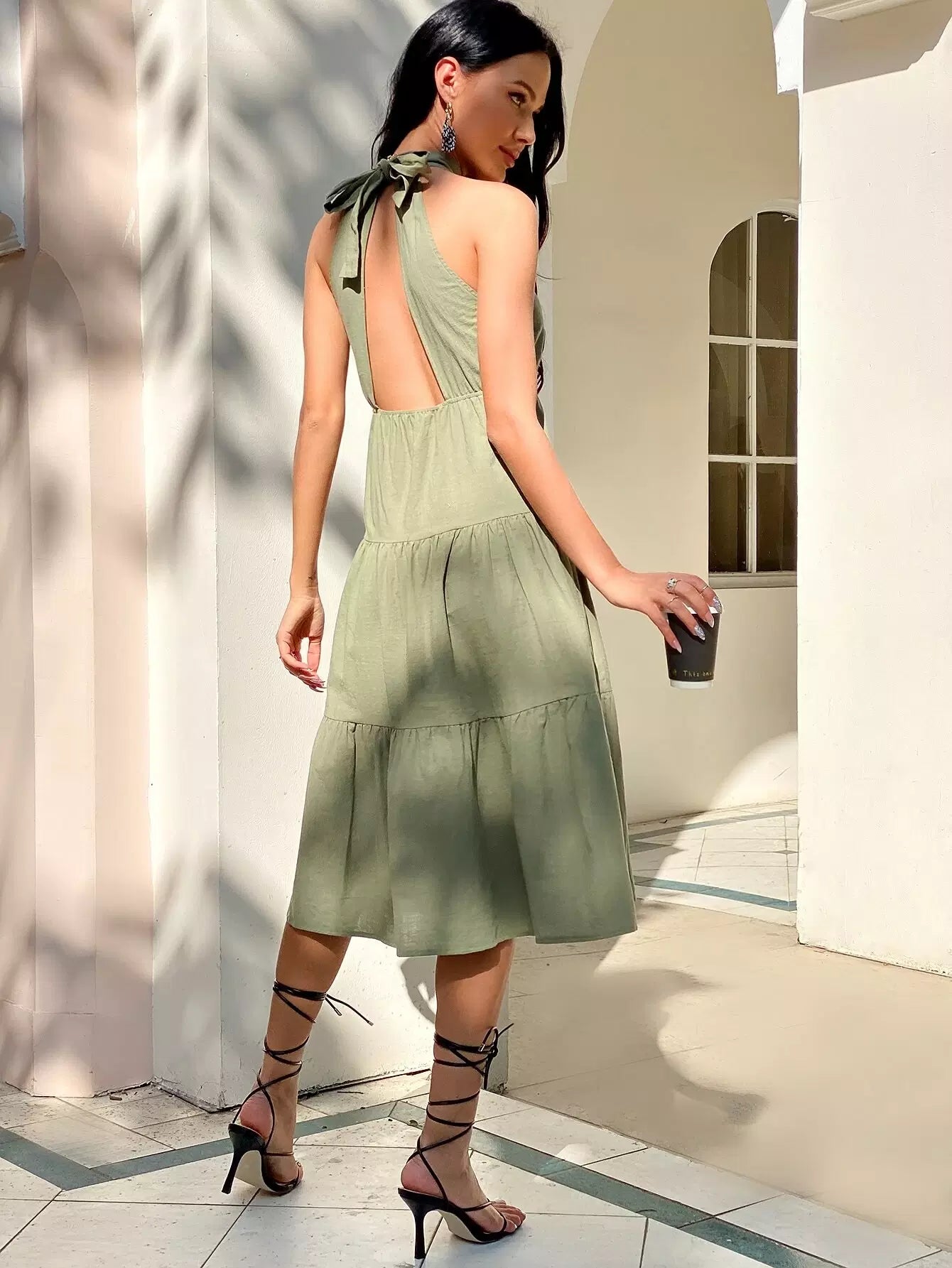 فستان سادة بقصّة سادة بفتحة على الظهر بربطة عنق