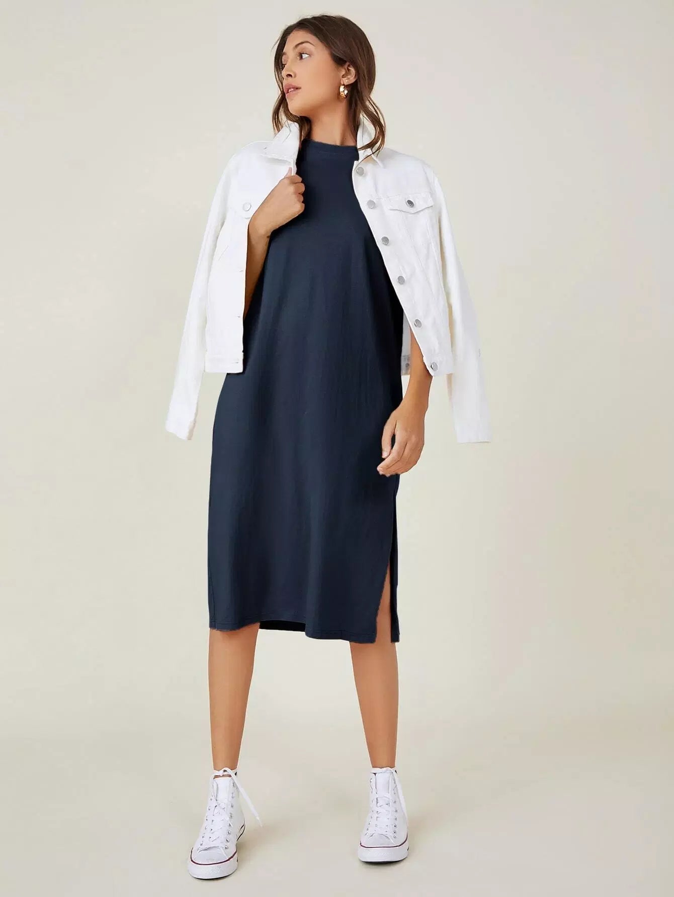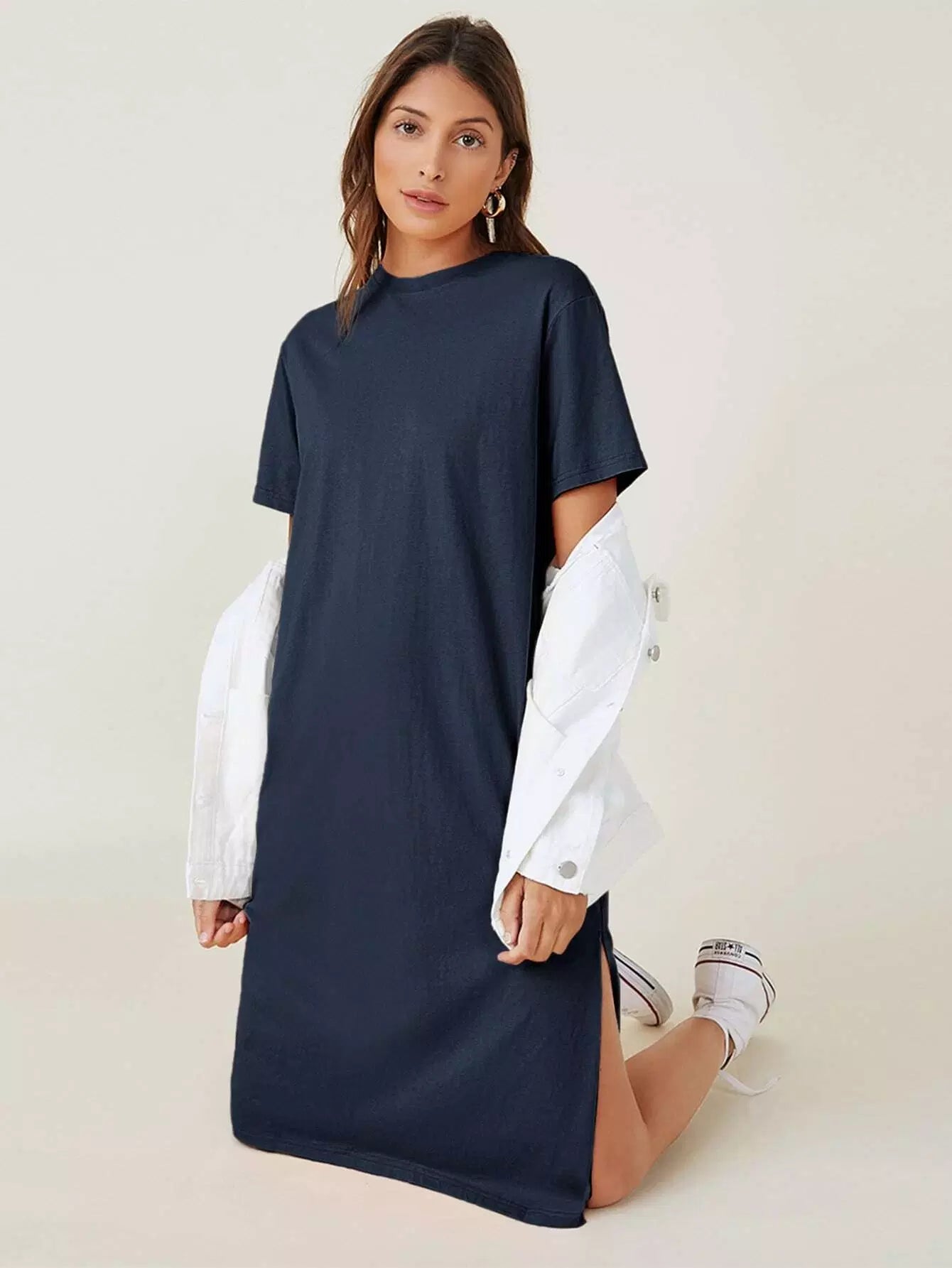 فستان سادة بحاشية منقسمة