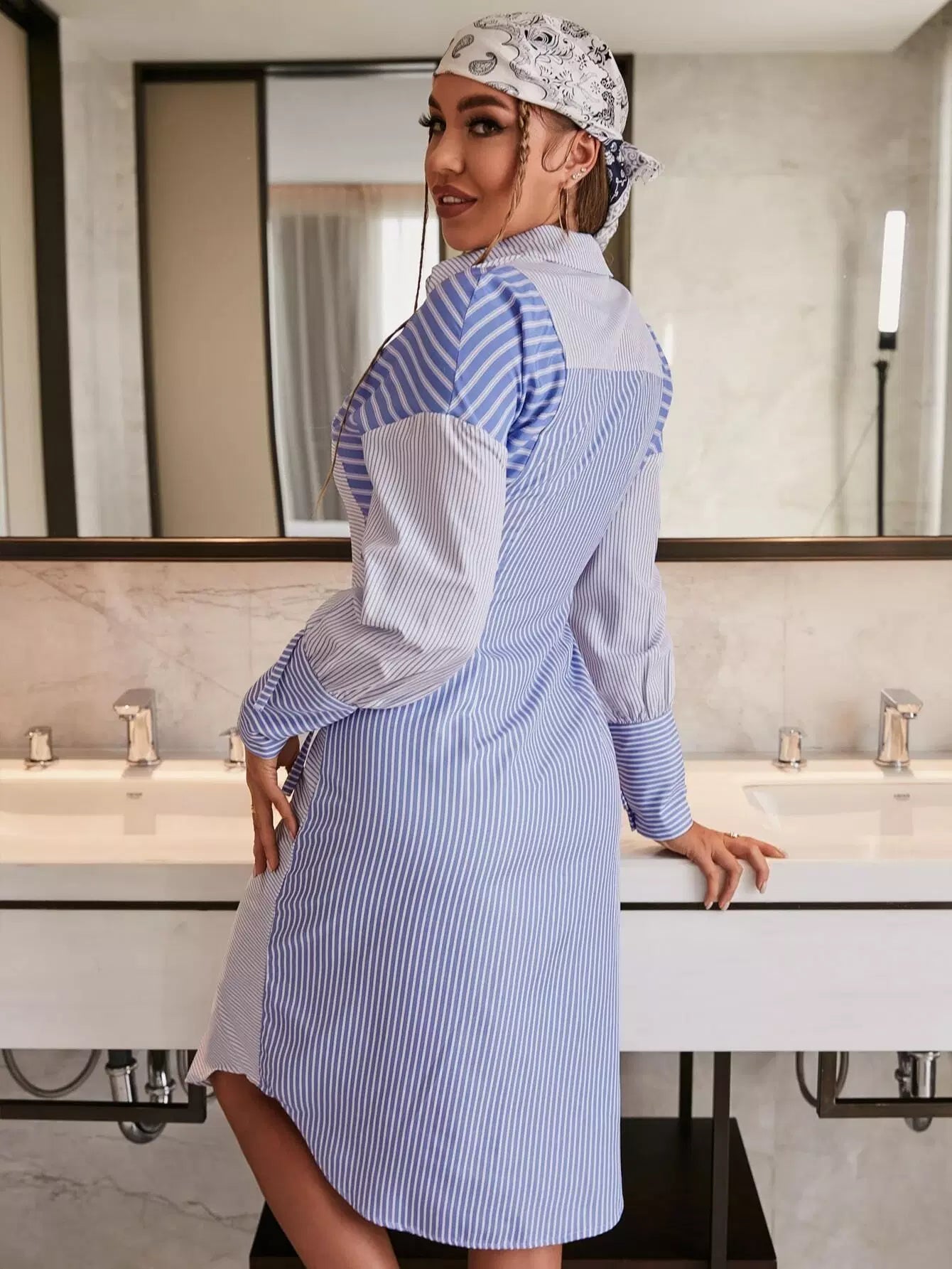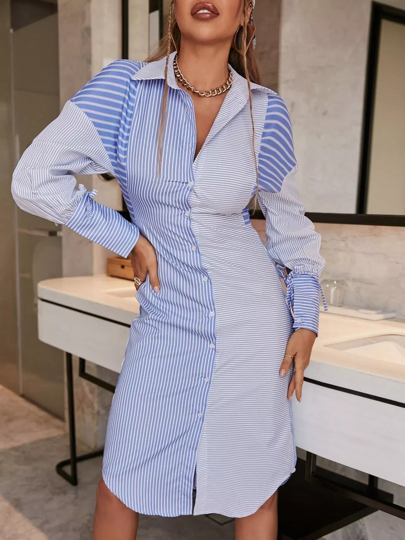 فستان قميص مخطط منسدل الكتفين