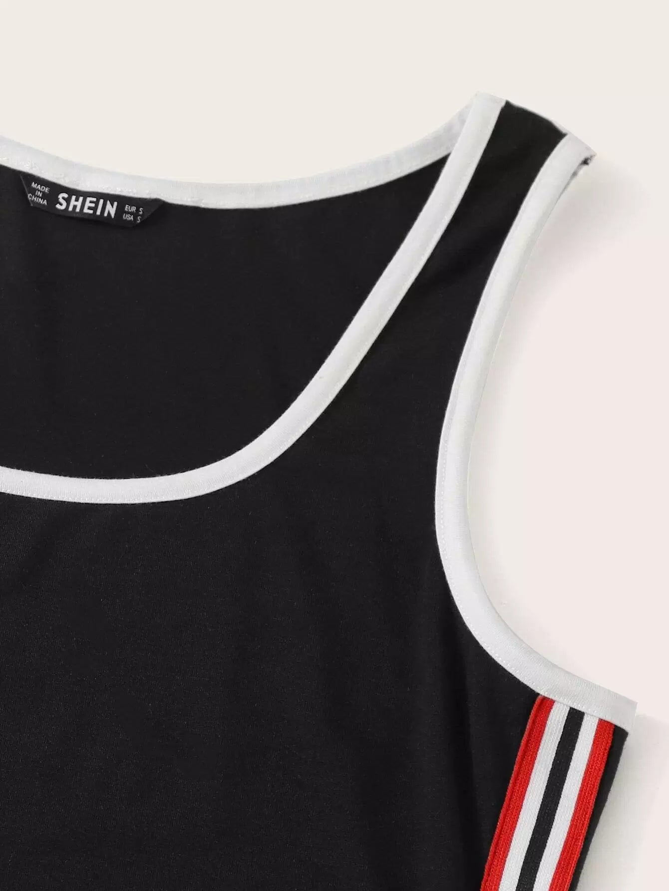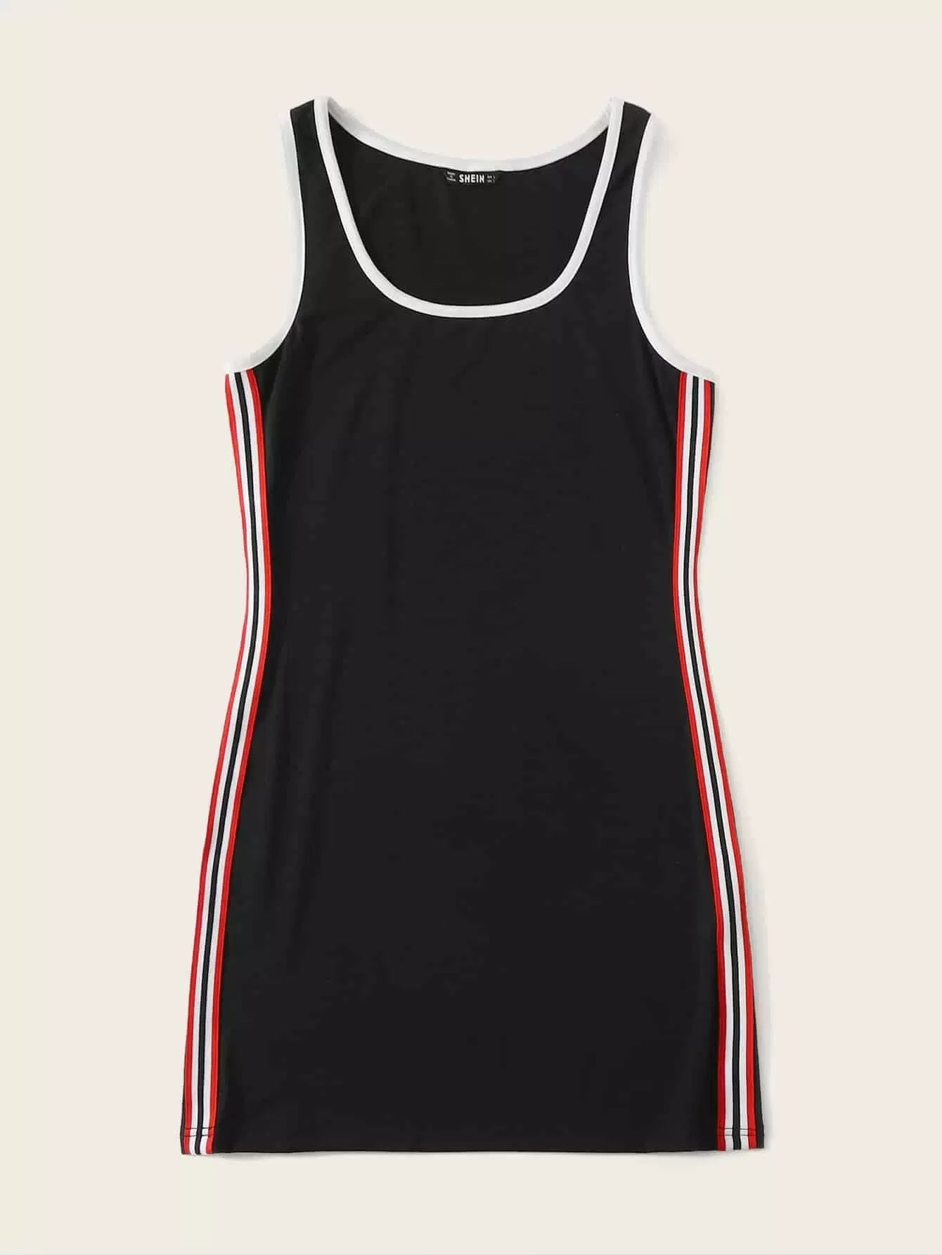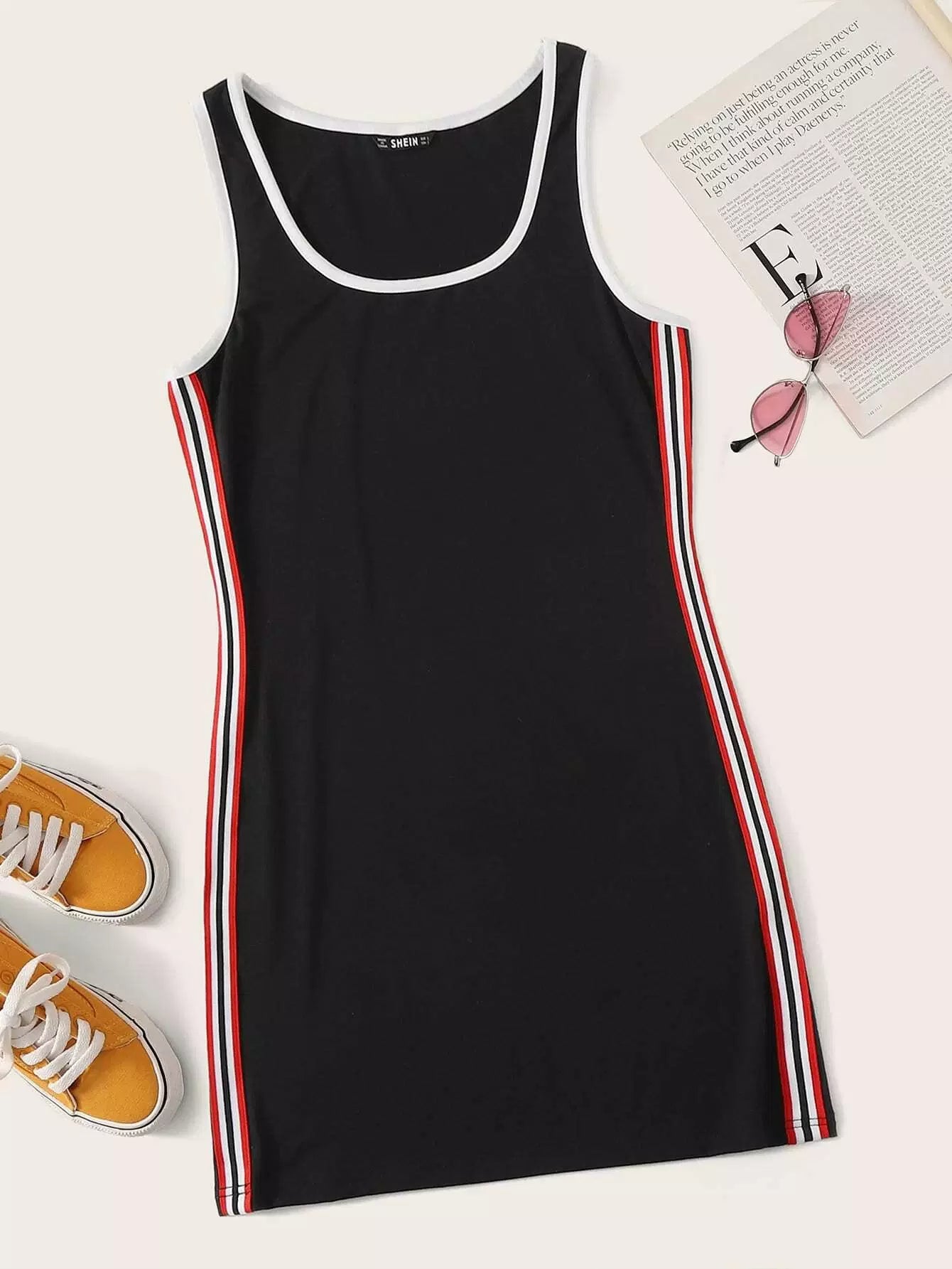 فستان بدون أكمام مخطط جانبي مخطط بشريط مخطط