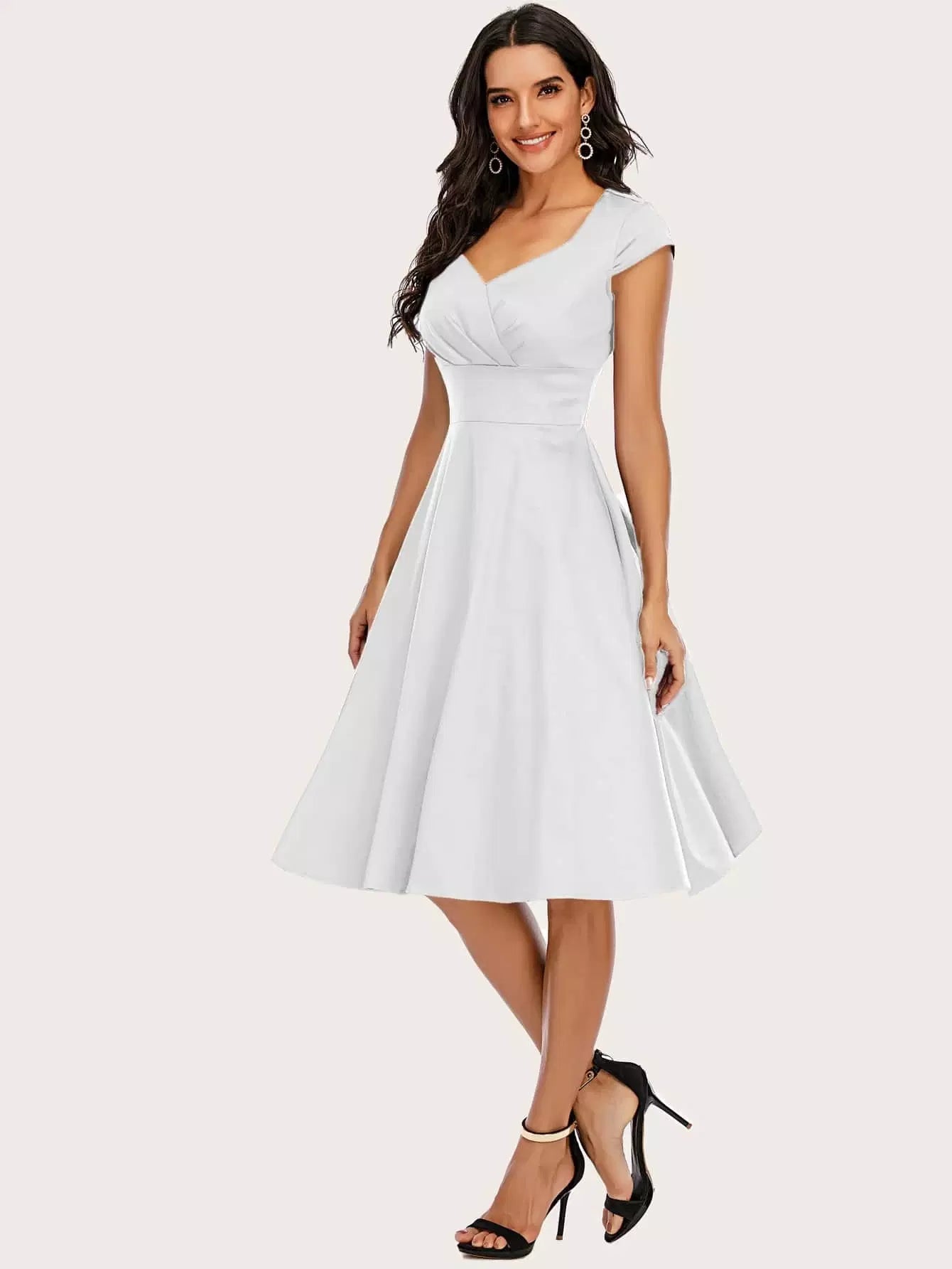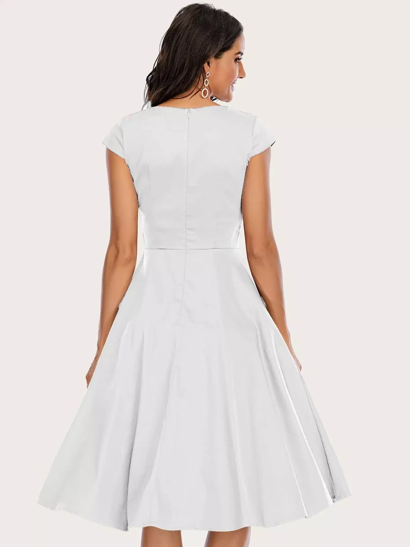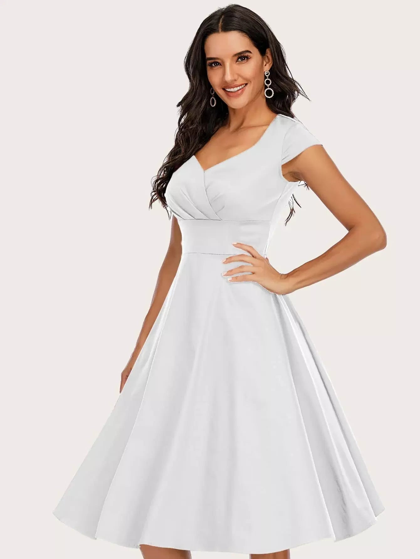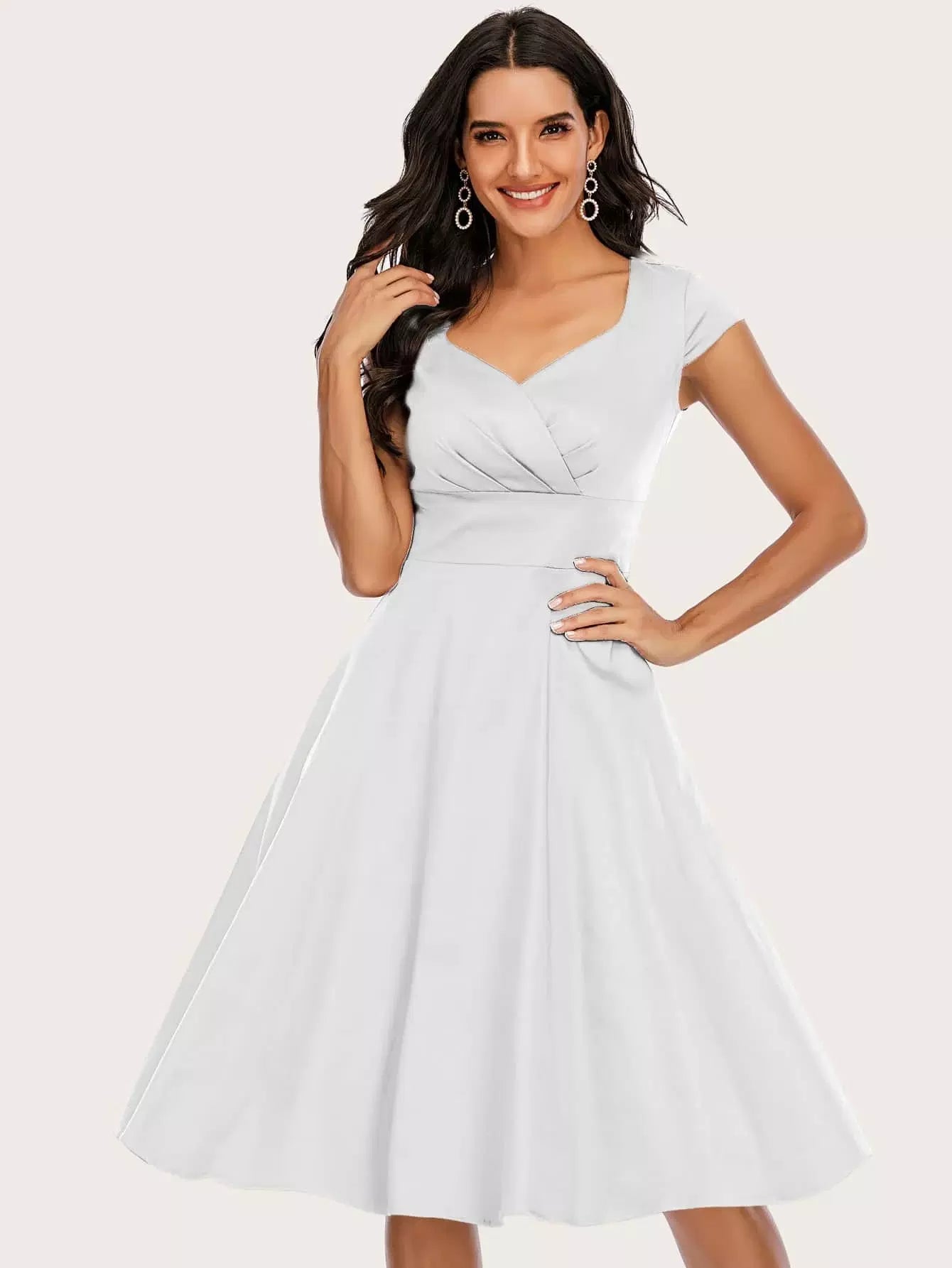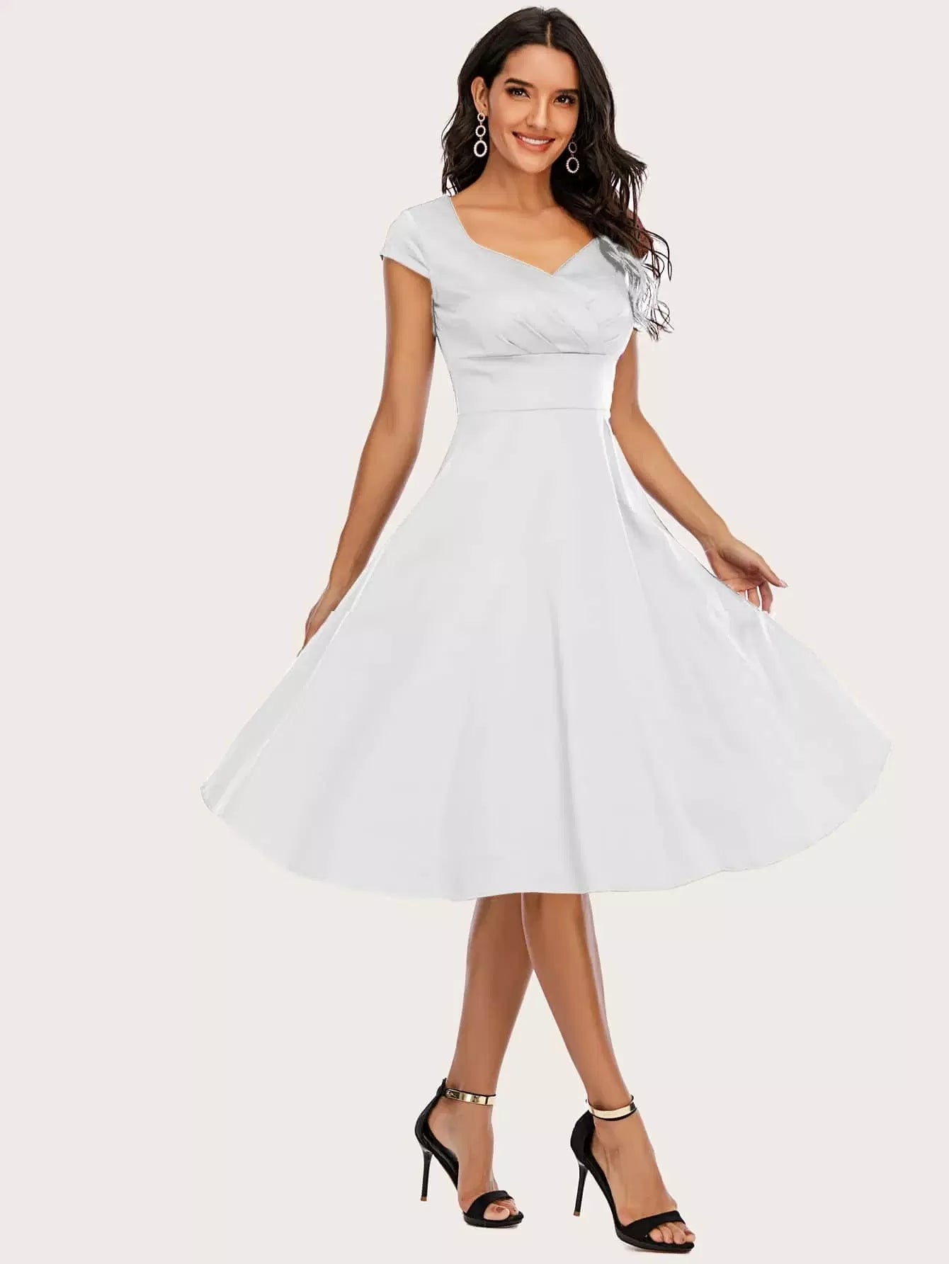 فستان بفتحة رقبة على شكل قلب وواسع من الأسفل