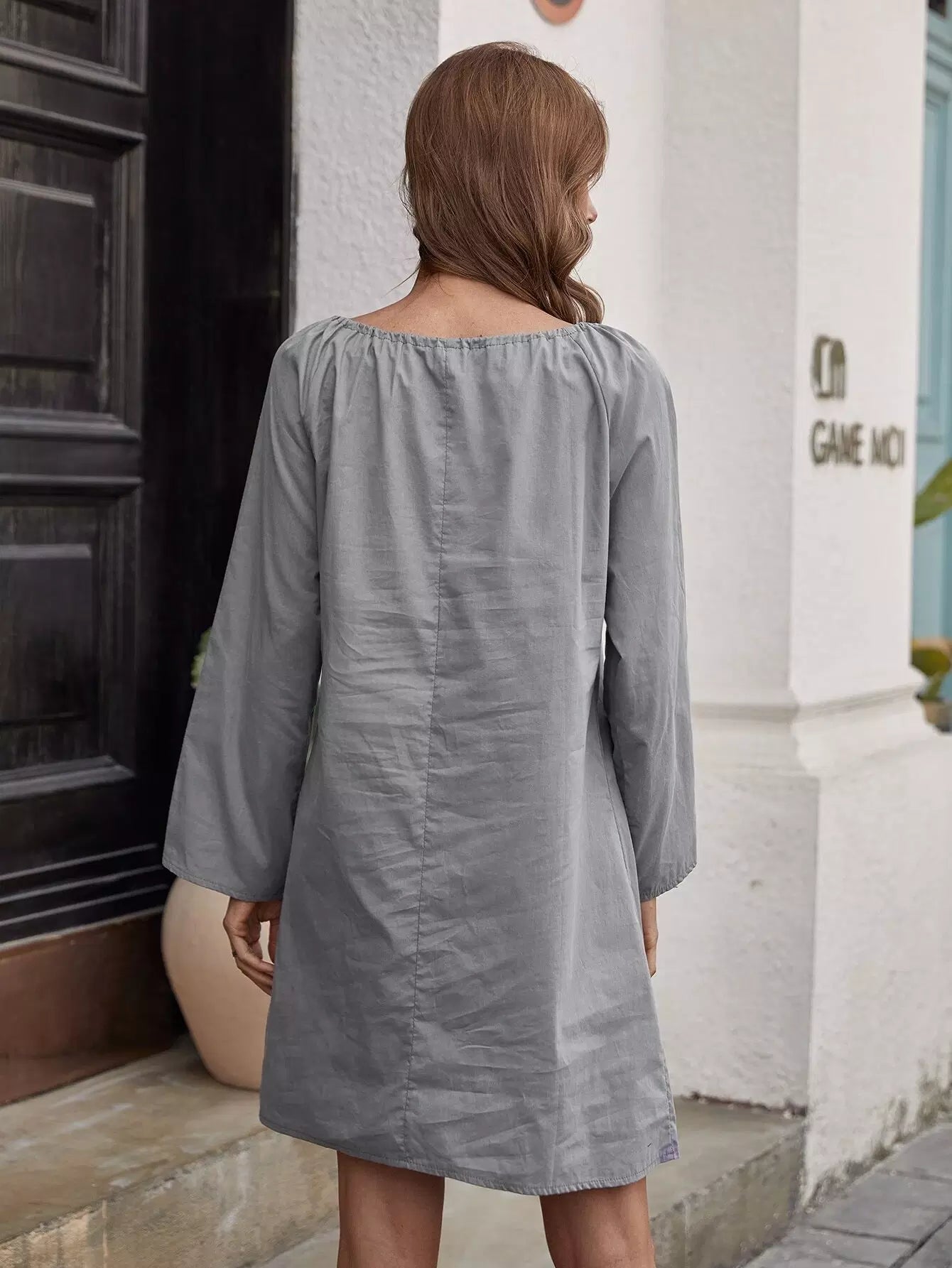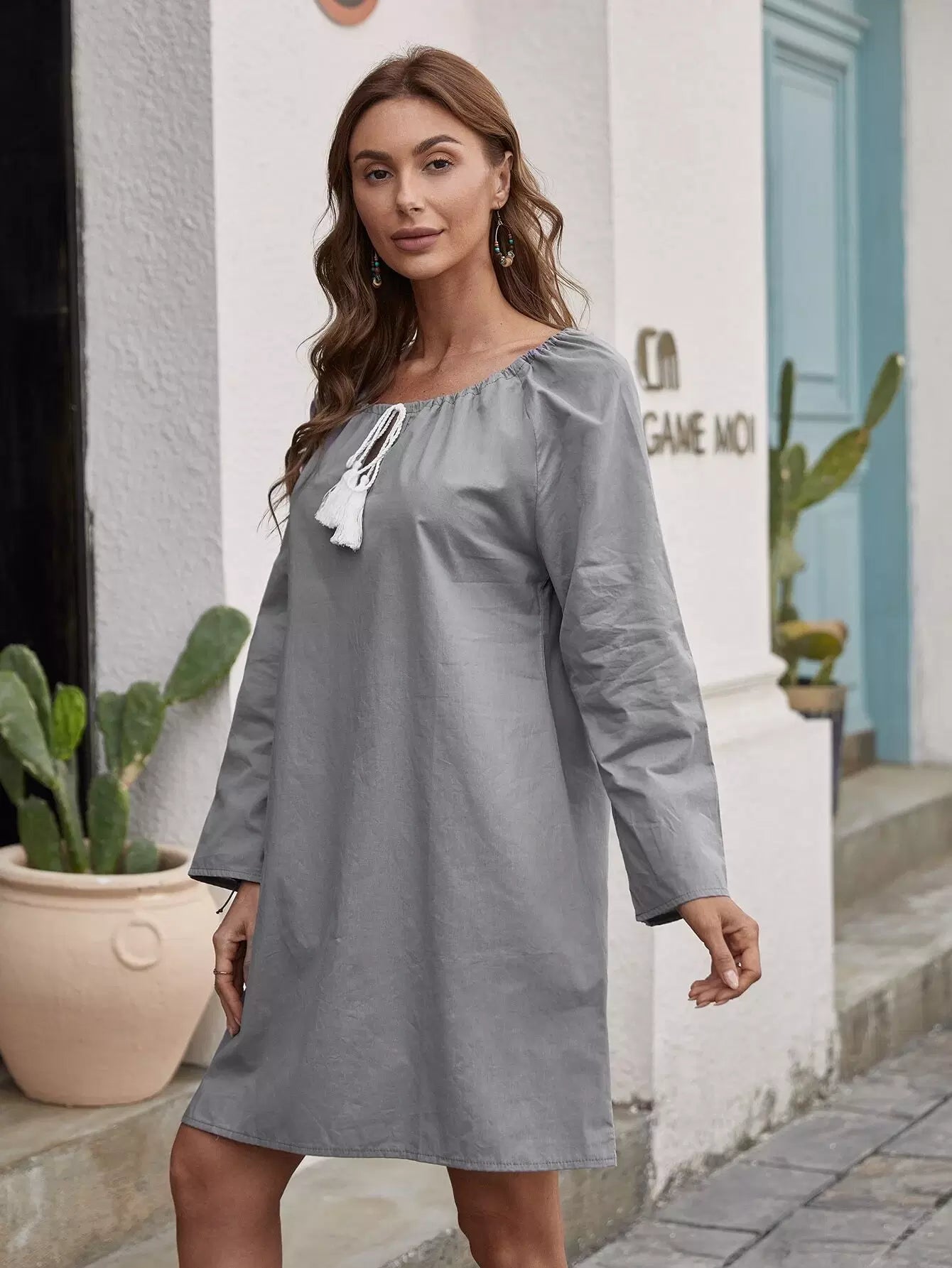 فستان تونيك بفتحة رقبة بفتحة رقبة على شكل عقدة شرابة