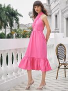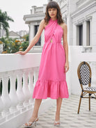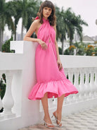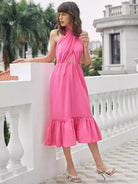 فستان مكشوف الظهر مع حافة مكشكشة