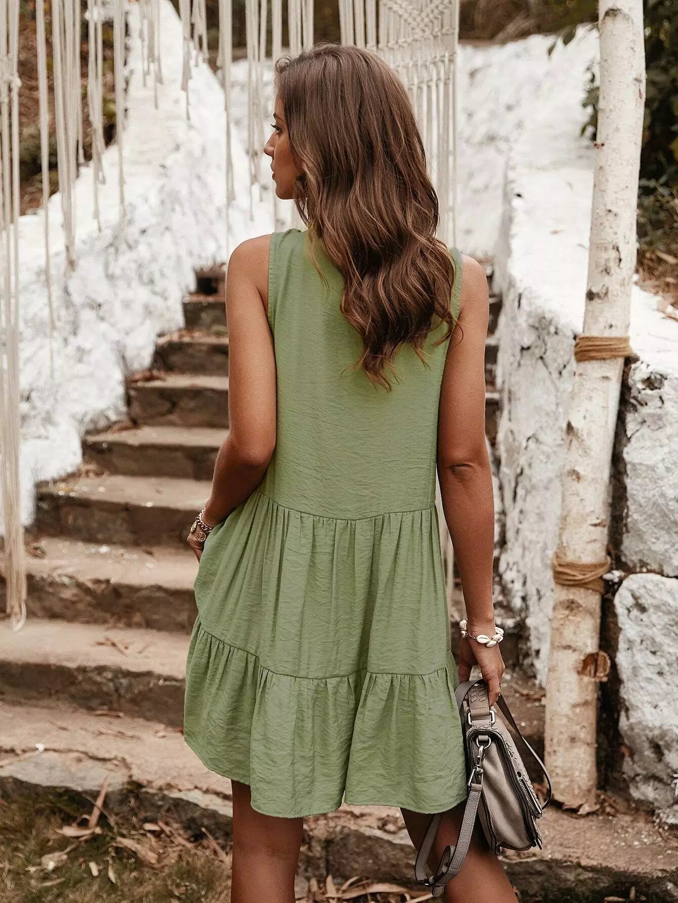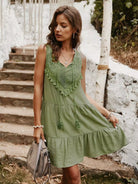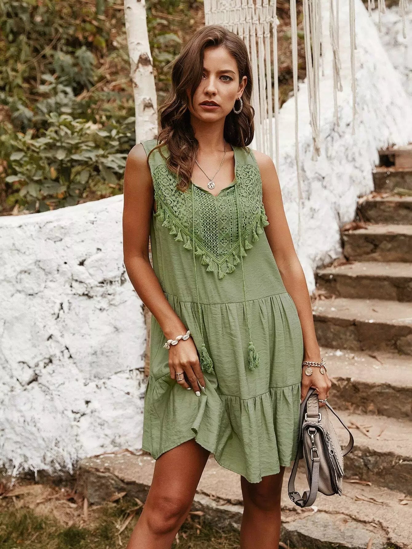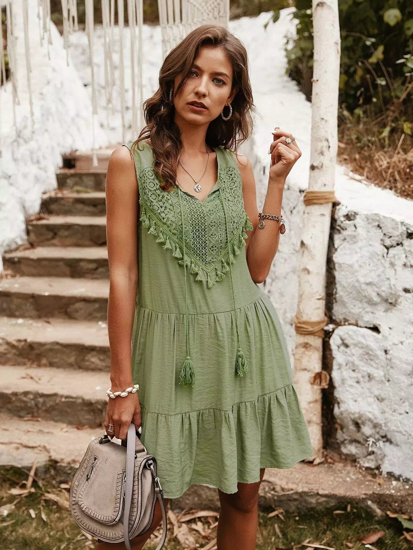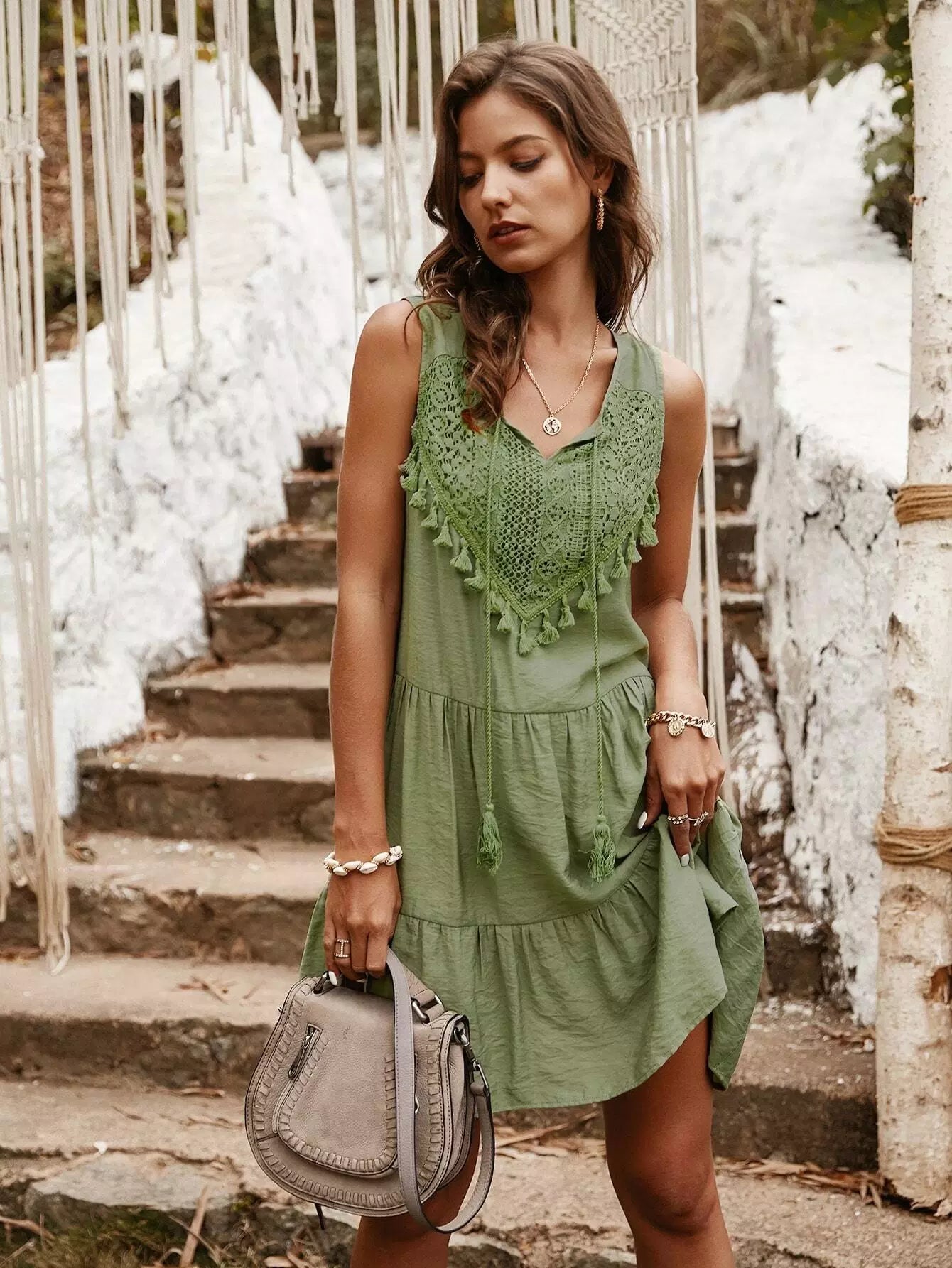 فستان بربطة عنق بربطة عنق من الدانتيل المزين بشرابة بلون مغاير