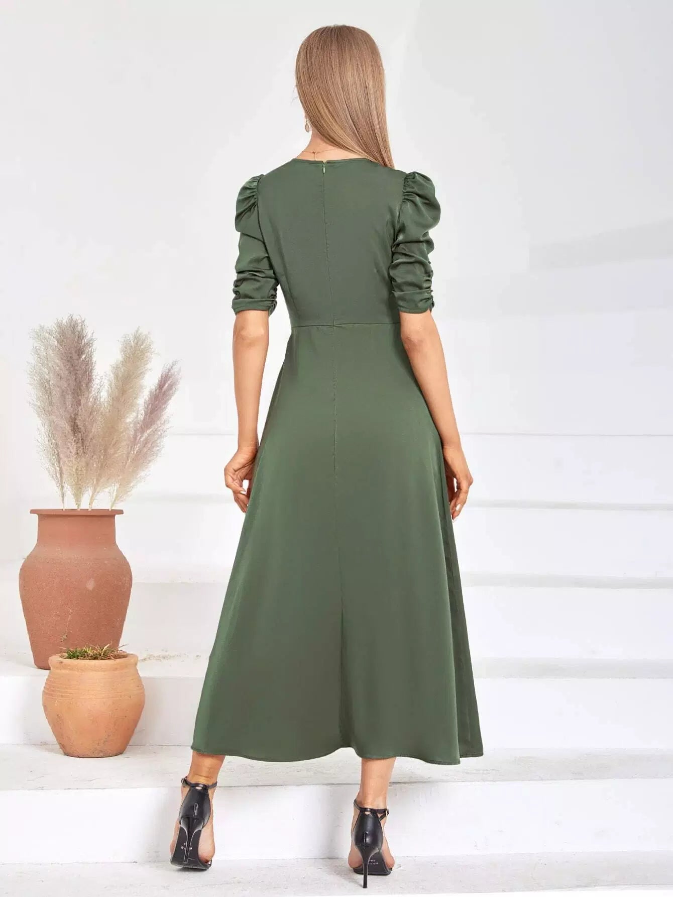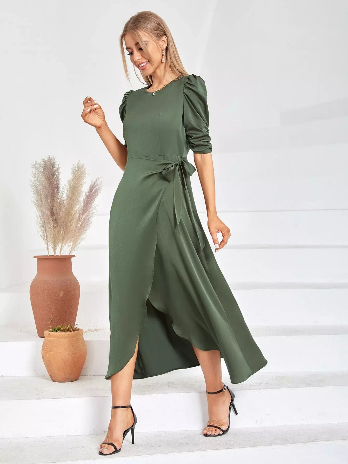 فستان بأكمام منفوشة ملفوفة على شكل حرف A