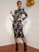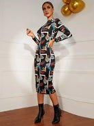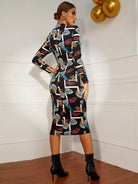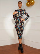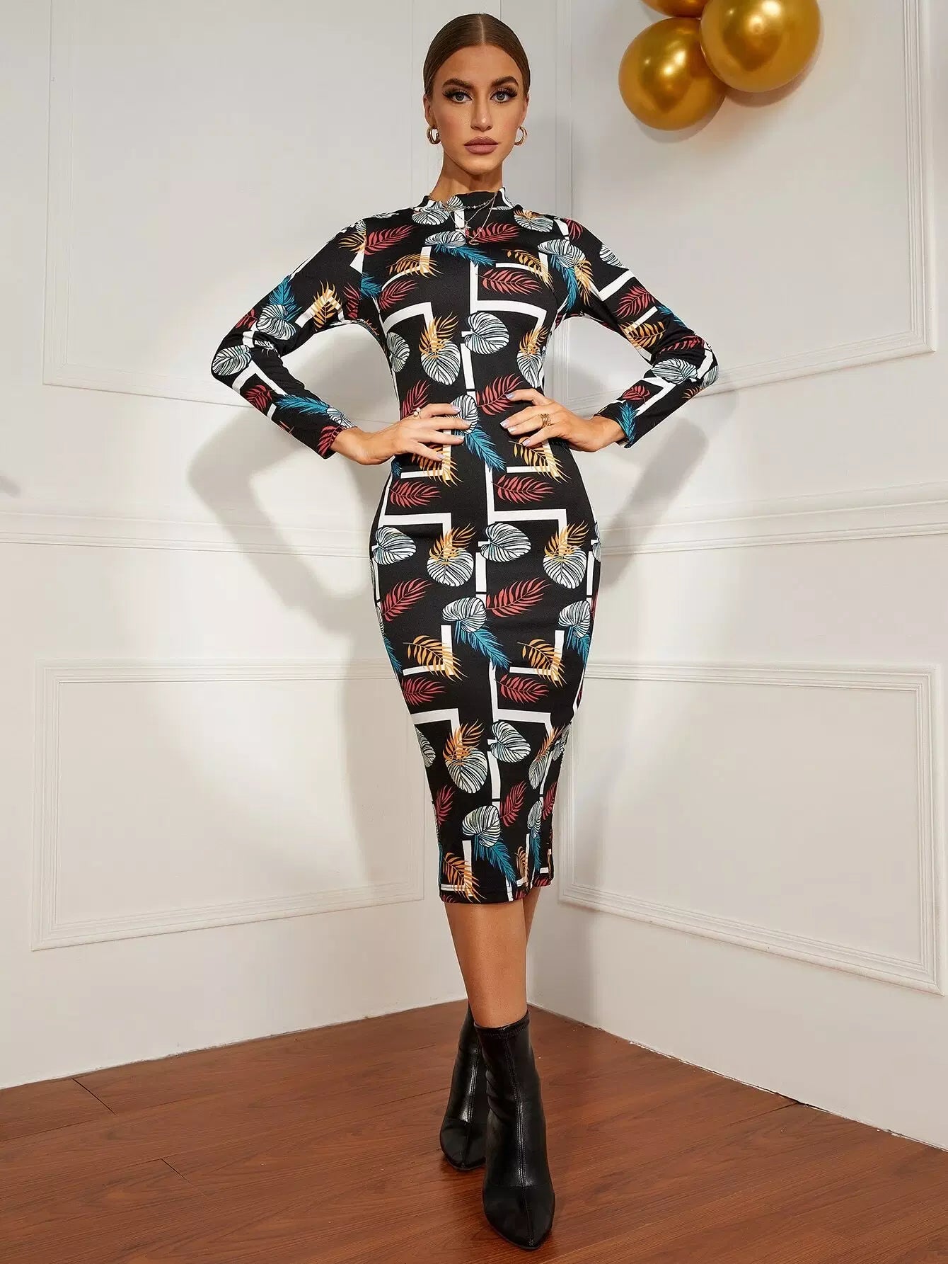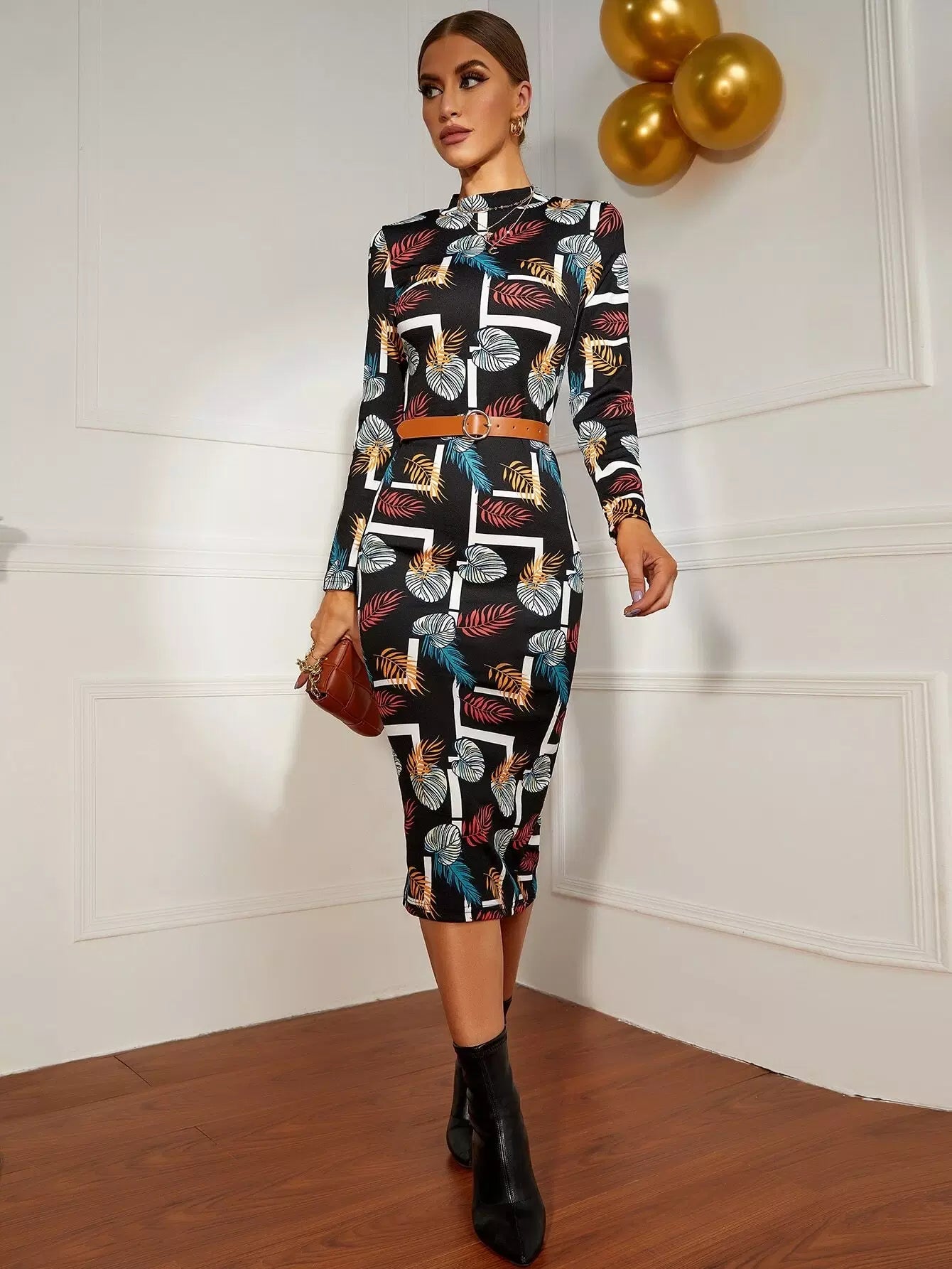 فستان بوديكون بطبعة استوائية برقبة استوائية بدون حزام