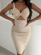 فستان بوديكون بقصّة أمامية بفتحة أمامية ملتوية ومحبوكة على شكل ضلع