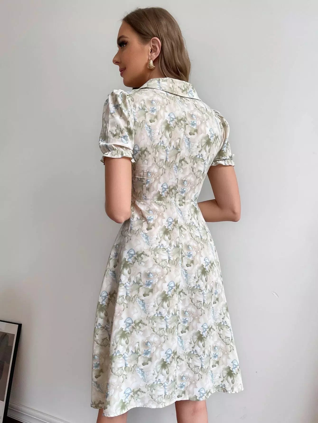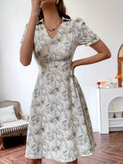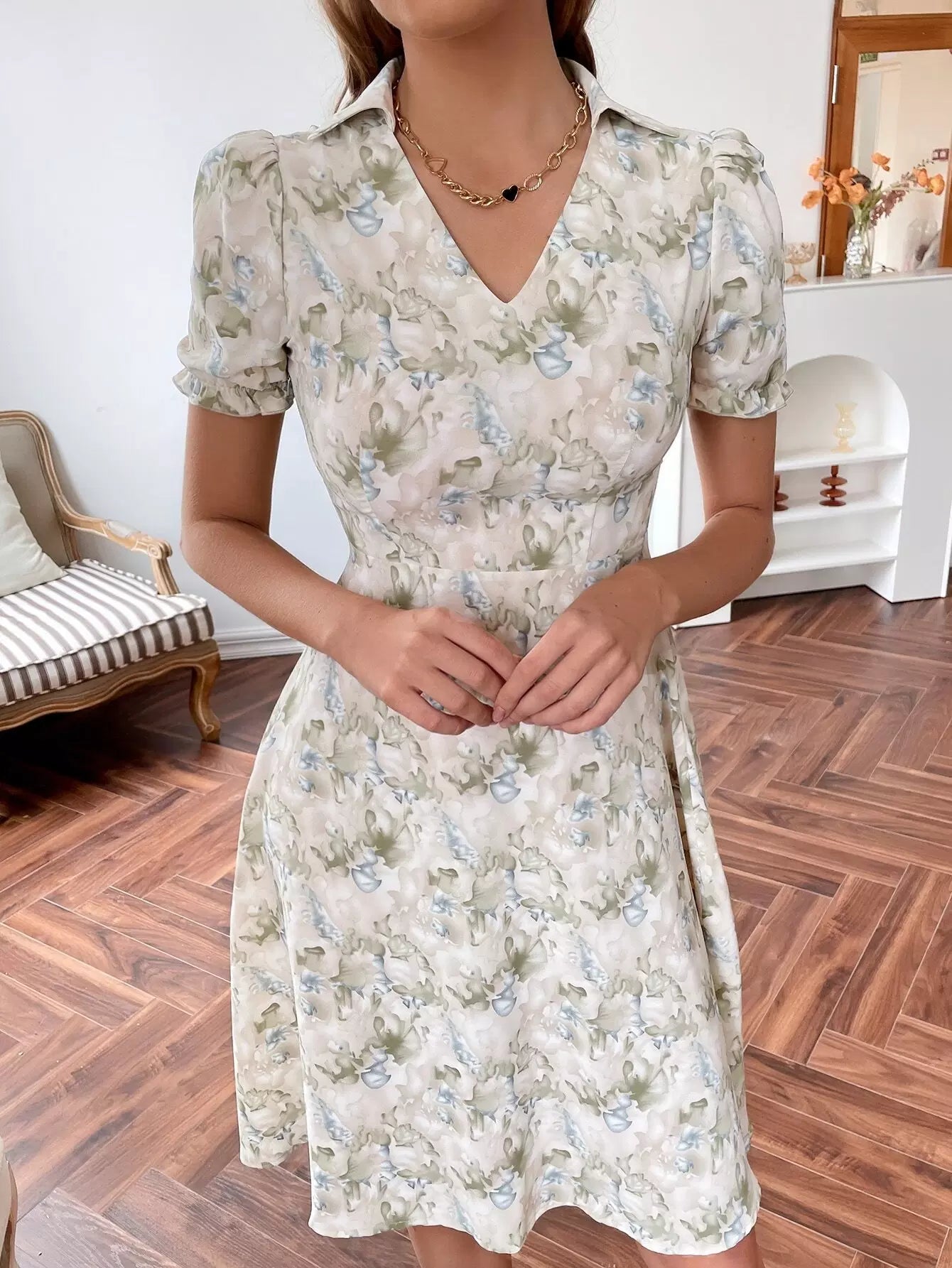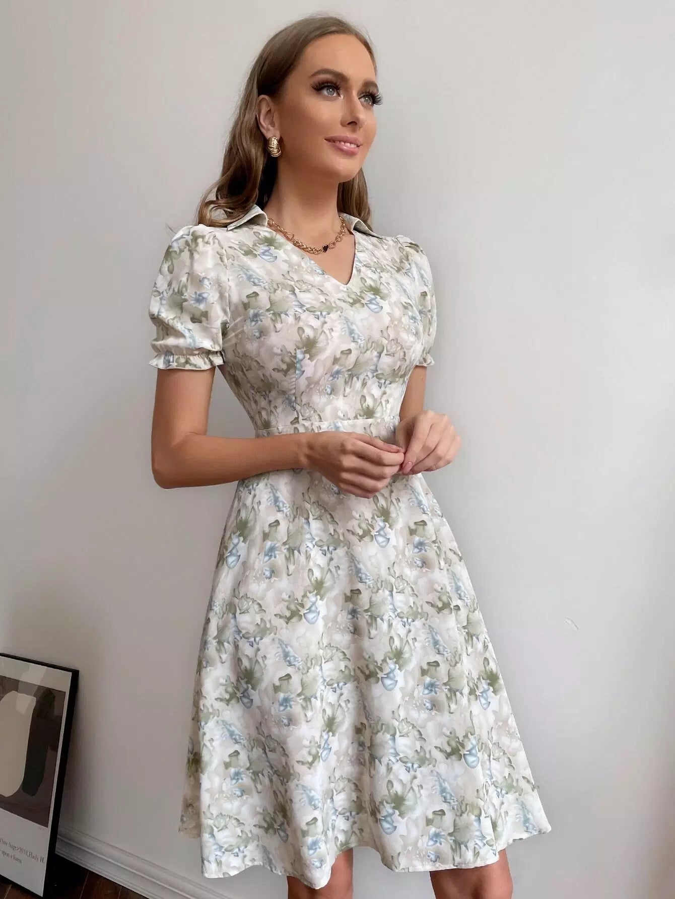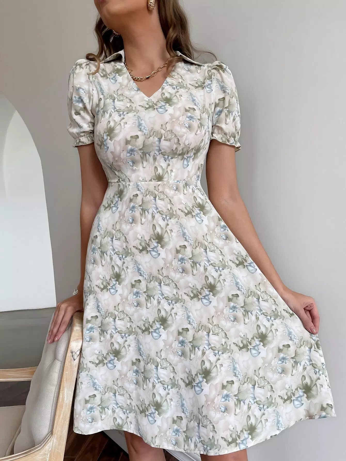 فستان زهري بياقة على شكل V بياقة على شكل V