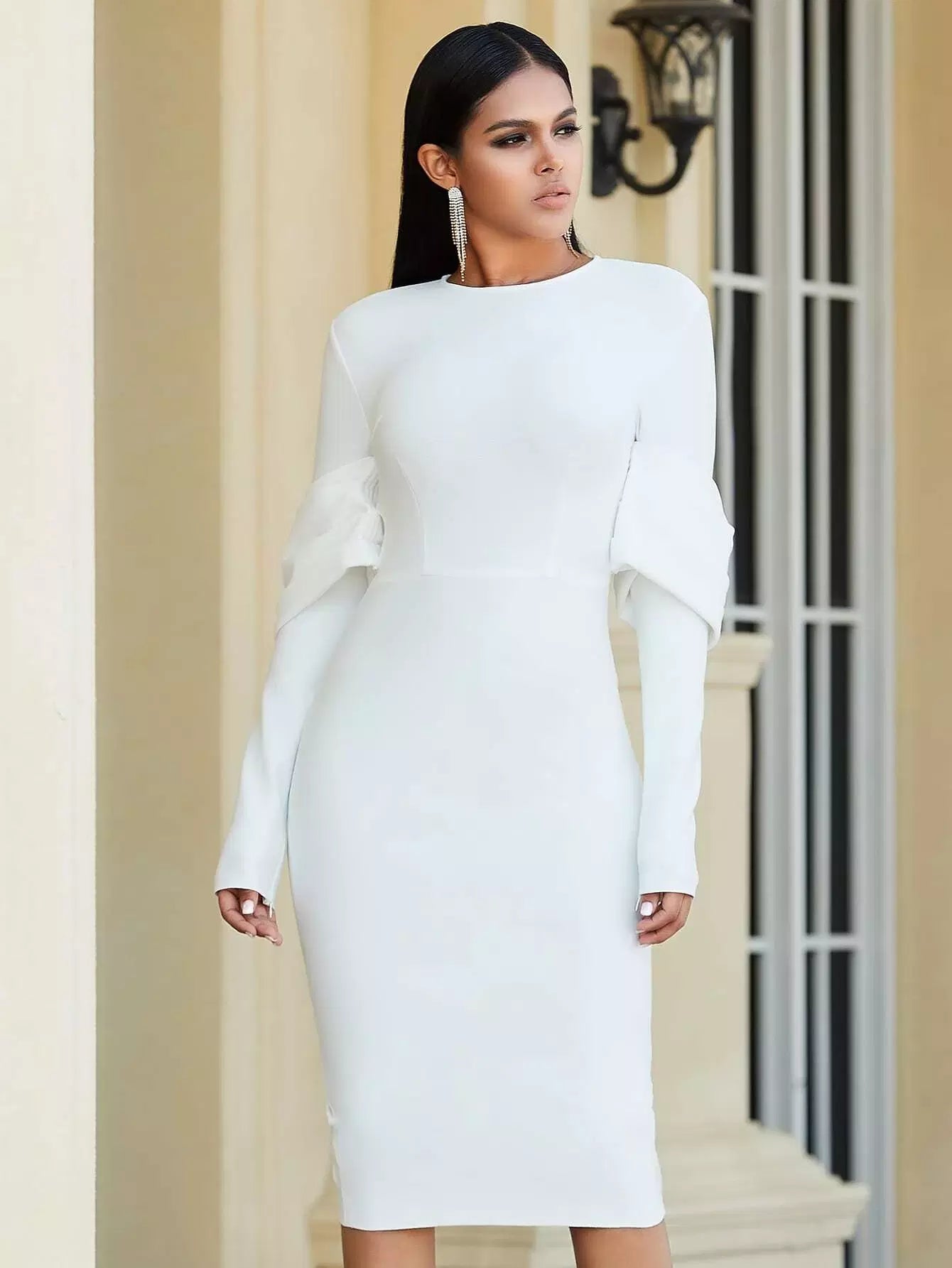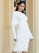 فستان ضمادة سادة بسحاب خلفي بسحاب
