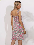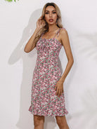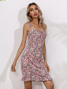 فستان كامي بحافة كشكش مطبوع بالزهور بالكامل