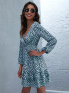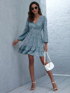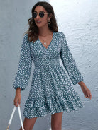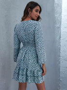 فستان مطبوع بالكامل بطبعة على كامل الصدرية برقبة كشكش على الخصر على شكل حرف A