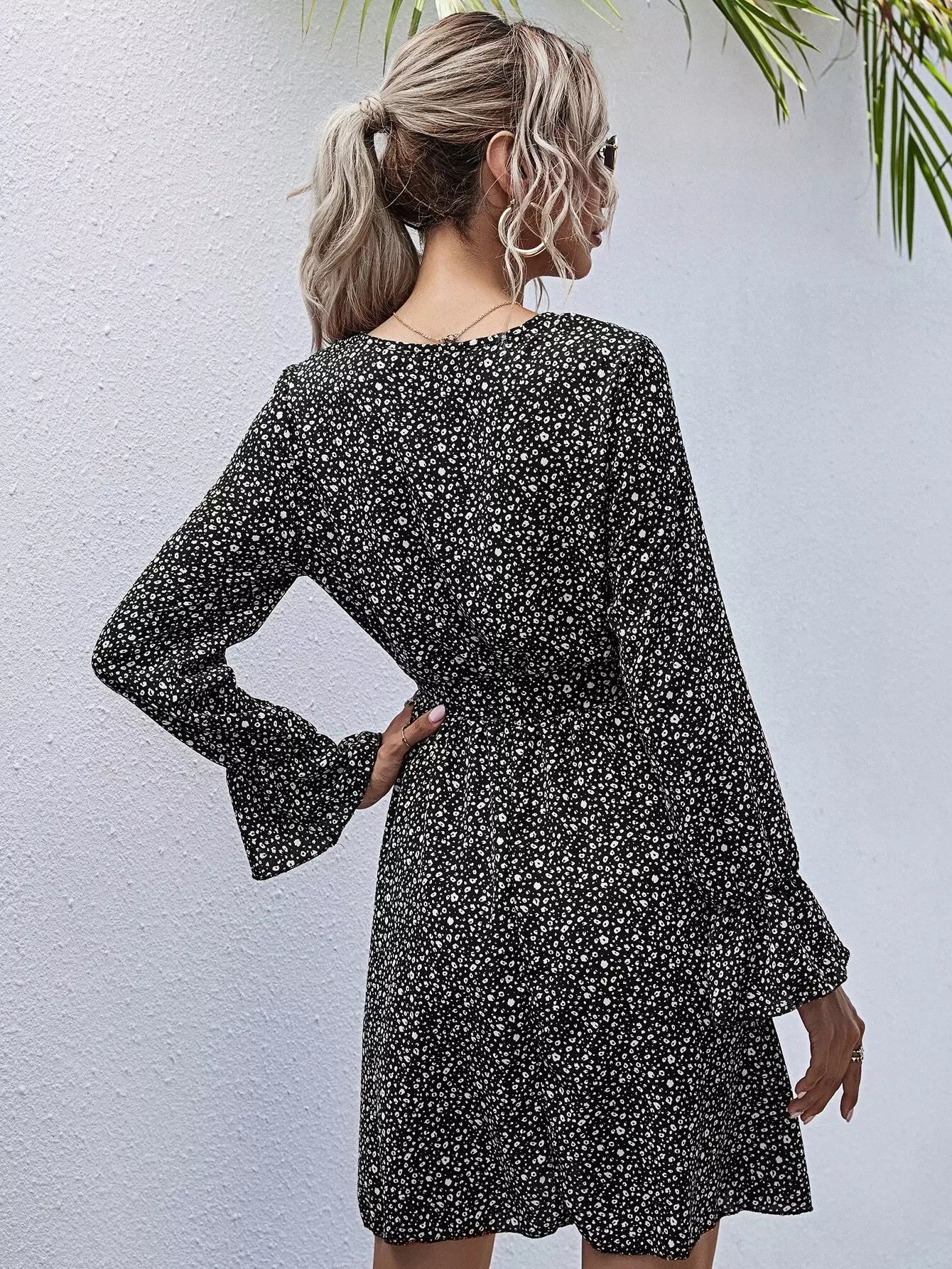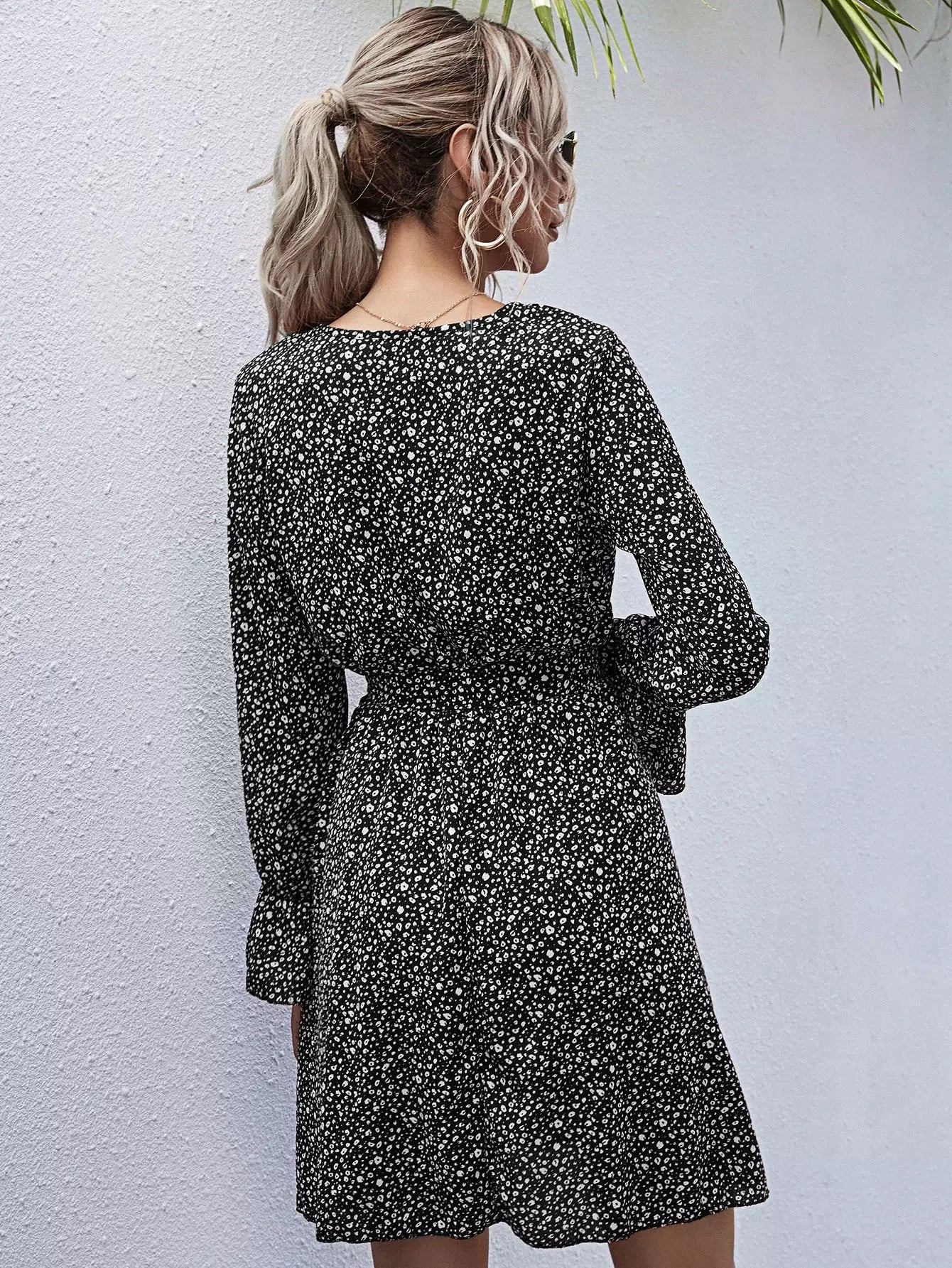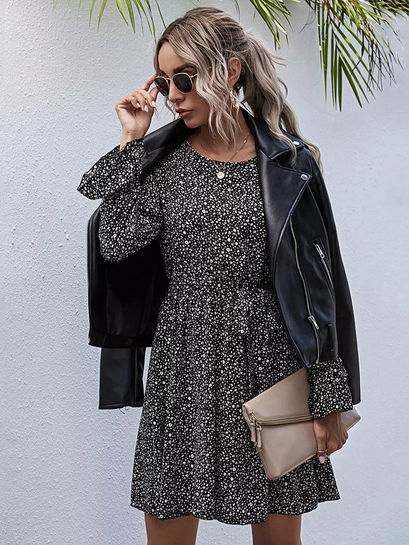 فستان على شكل حرف A بطباعة كاملة بدون حزام