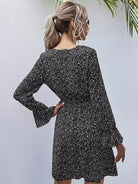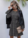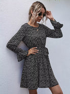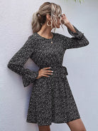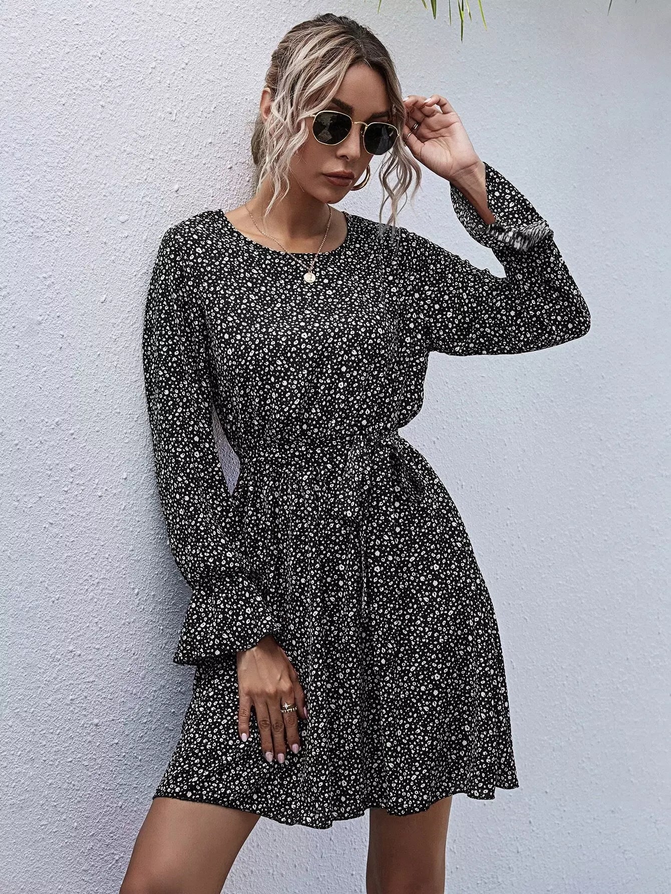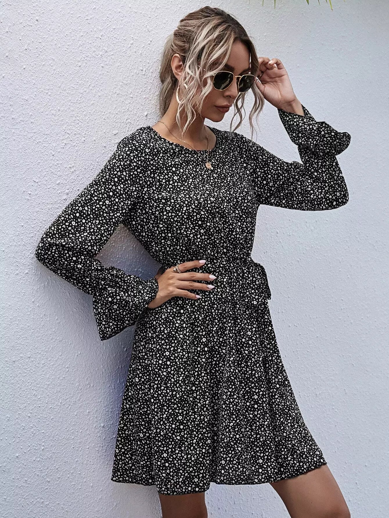 للنساء - فستان على شكل حرف A بحزام وطبعة كاملة