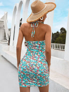 فستان ضيق بفتحة رقبة على شكل هالتر وطبعات متعددة