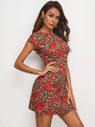 فستان بأكمام بطبعة زهور بأكمام باتوينج