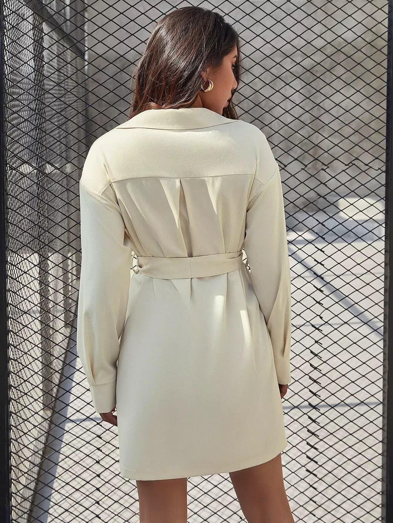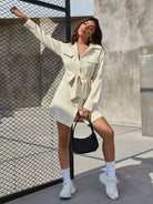 فستان قميص بأزرار أمامية بدون حزام