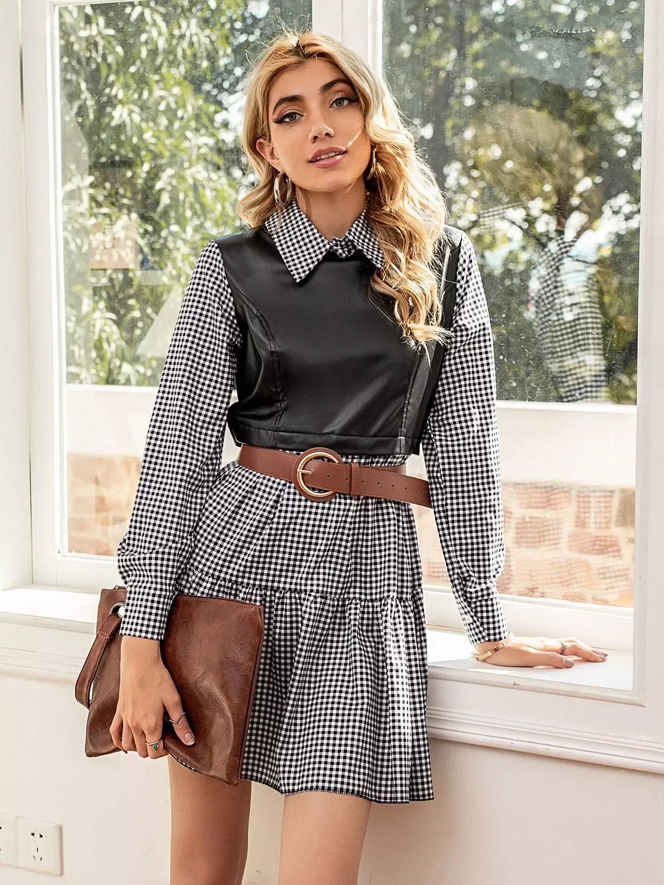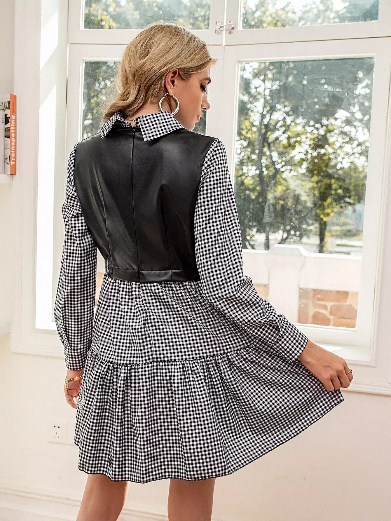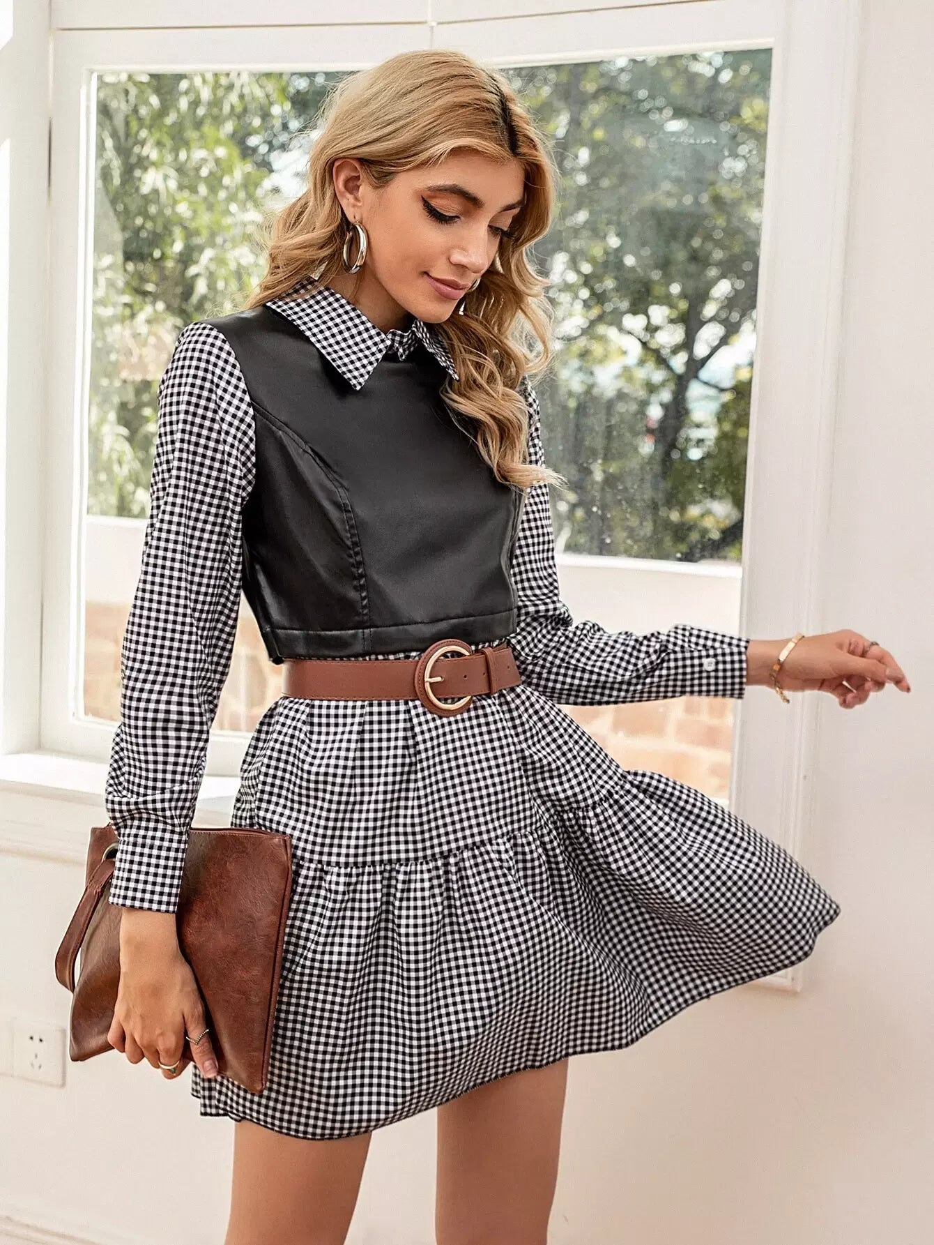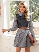 فستان من القماش القطني المتباين بدون حزام