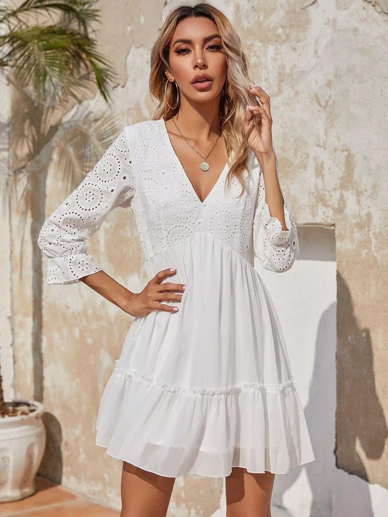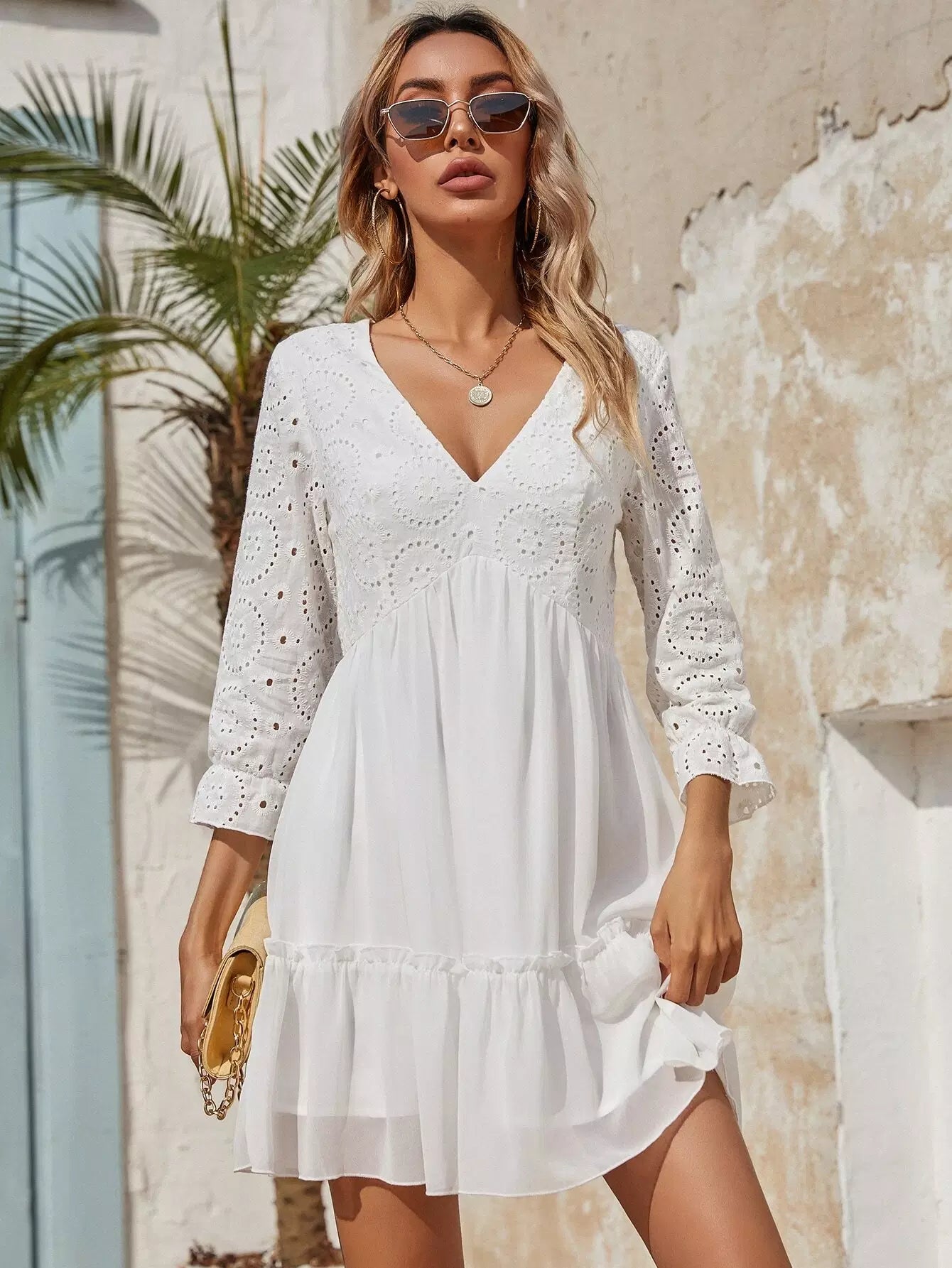 للنساء - فستان شيفي بكشكشة متباينة على شكل حرف A
