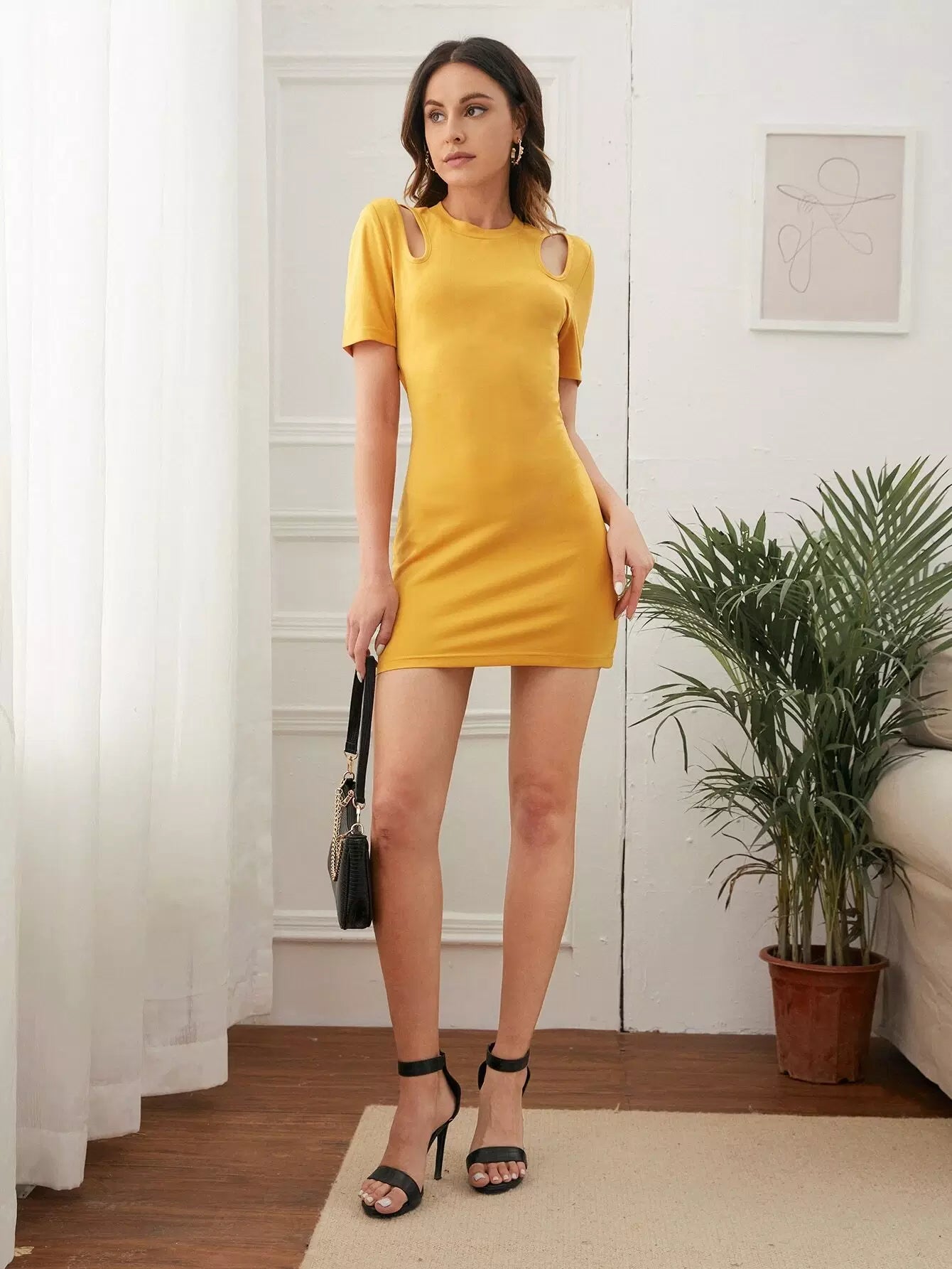 فستان سادة مفتوح من الخلف مفتوح التفاصيل بفتحات