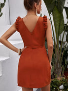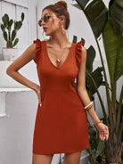 فستان ضيق بياقة على شكل حرف V بياقة على شكل كشكش على شكل حرف V