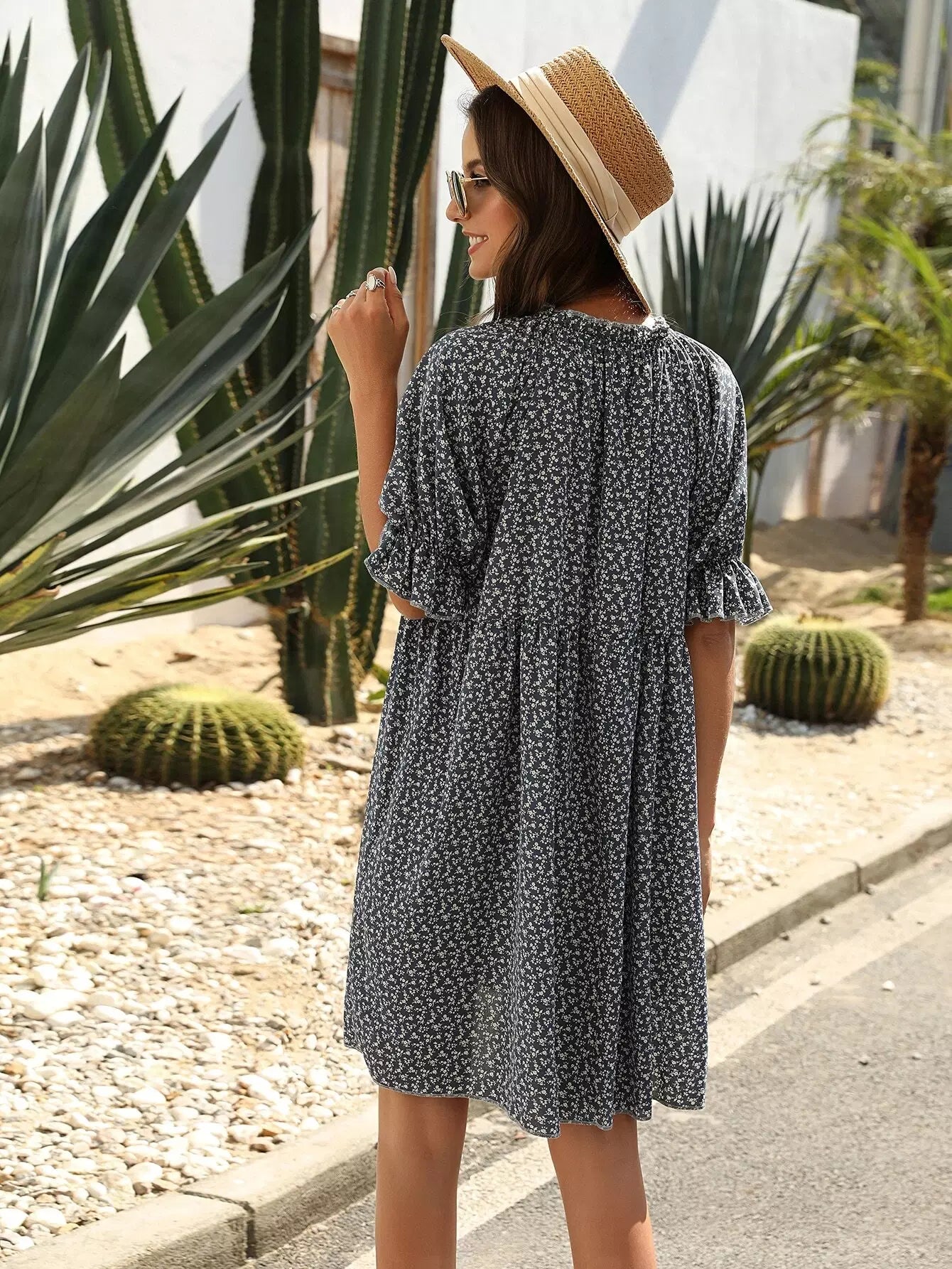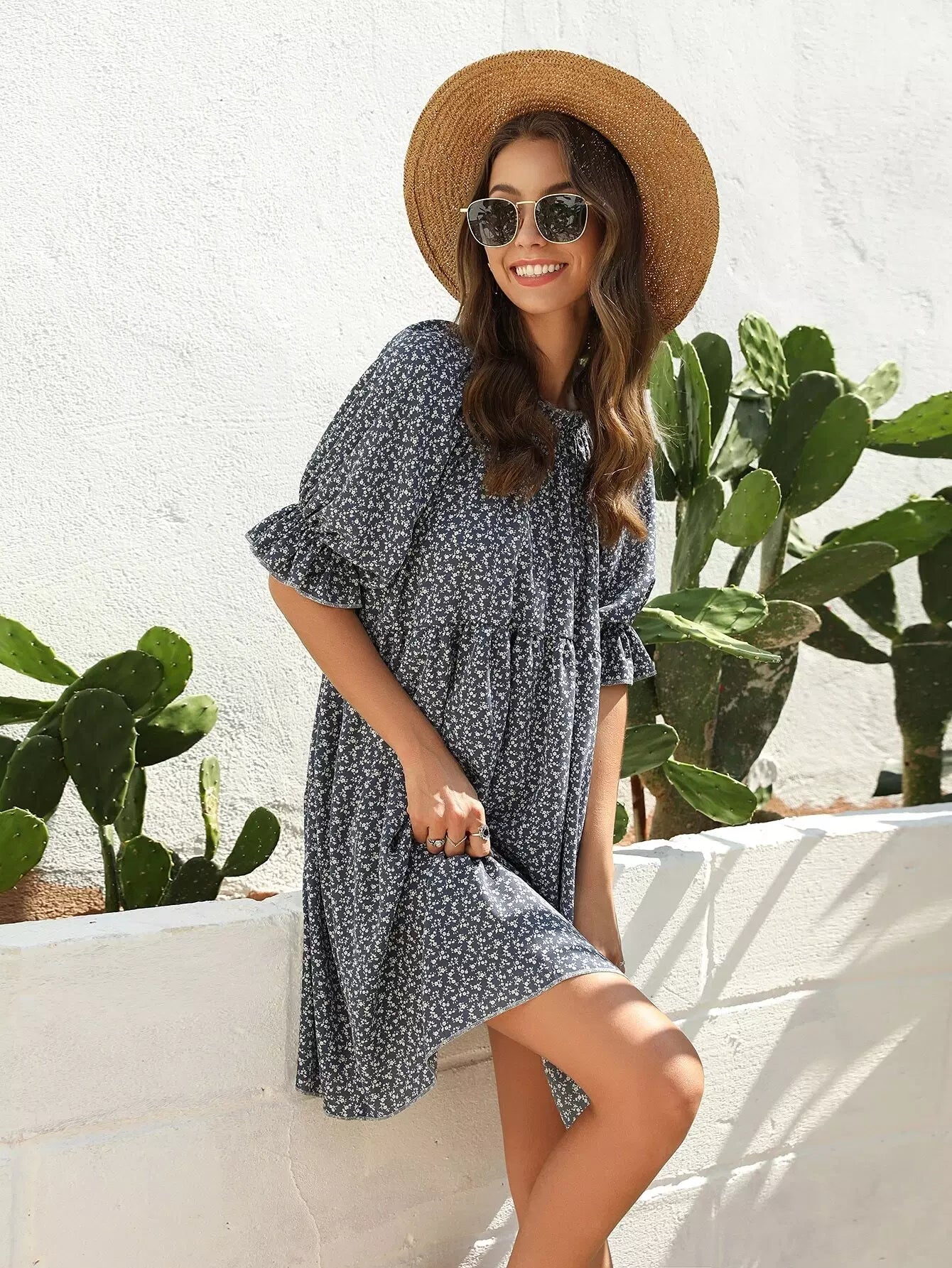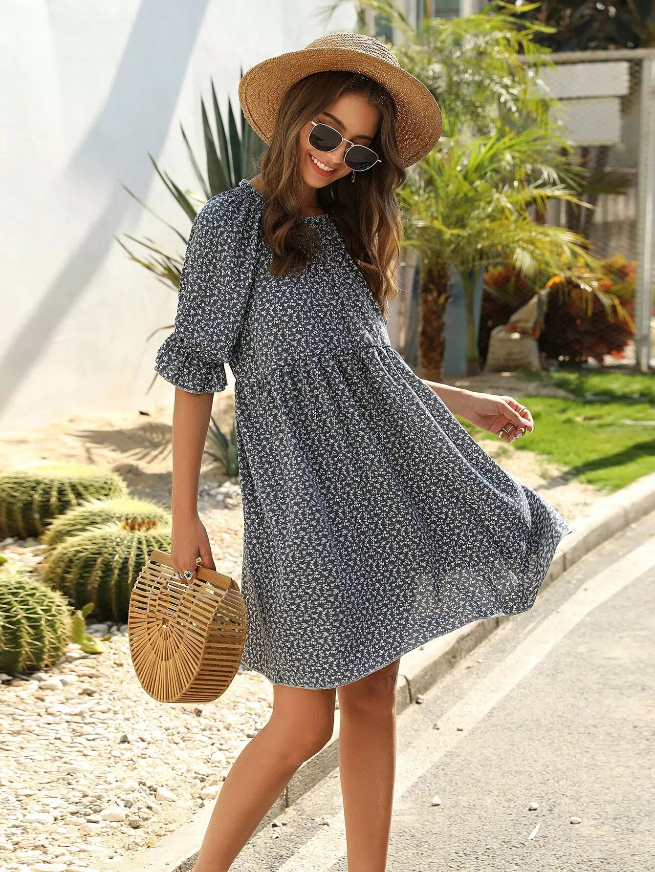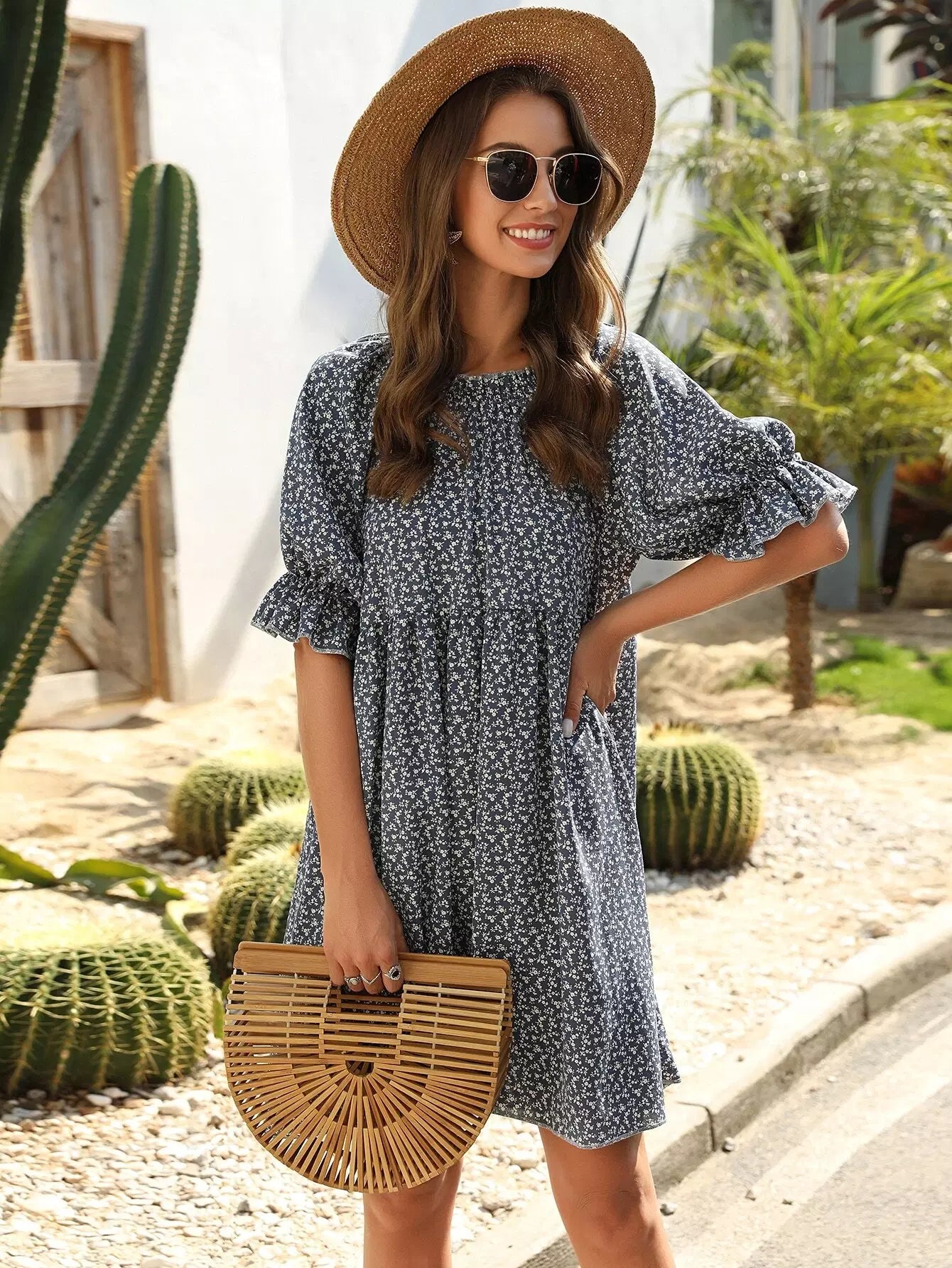 فستان ديتسي بأكمام منفوشة بأزهار منفوشة بأكمام بيبي دول