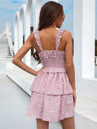 فستان كامي بطبعة زهور صغيرة مع خصر مجعد