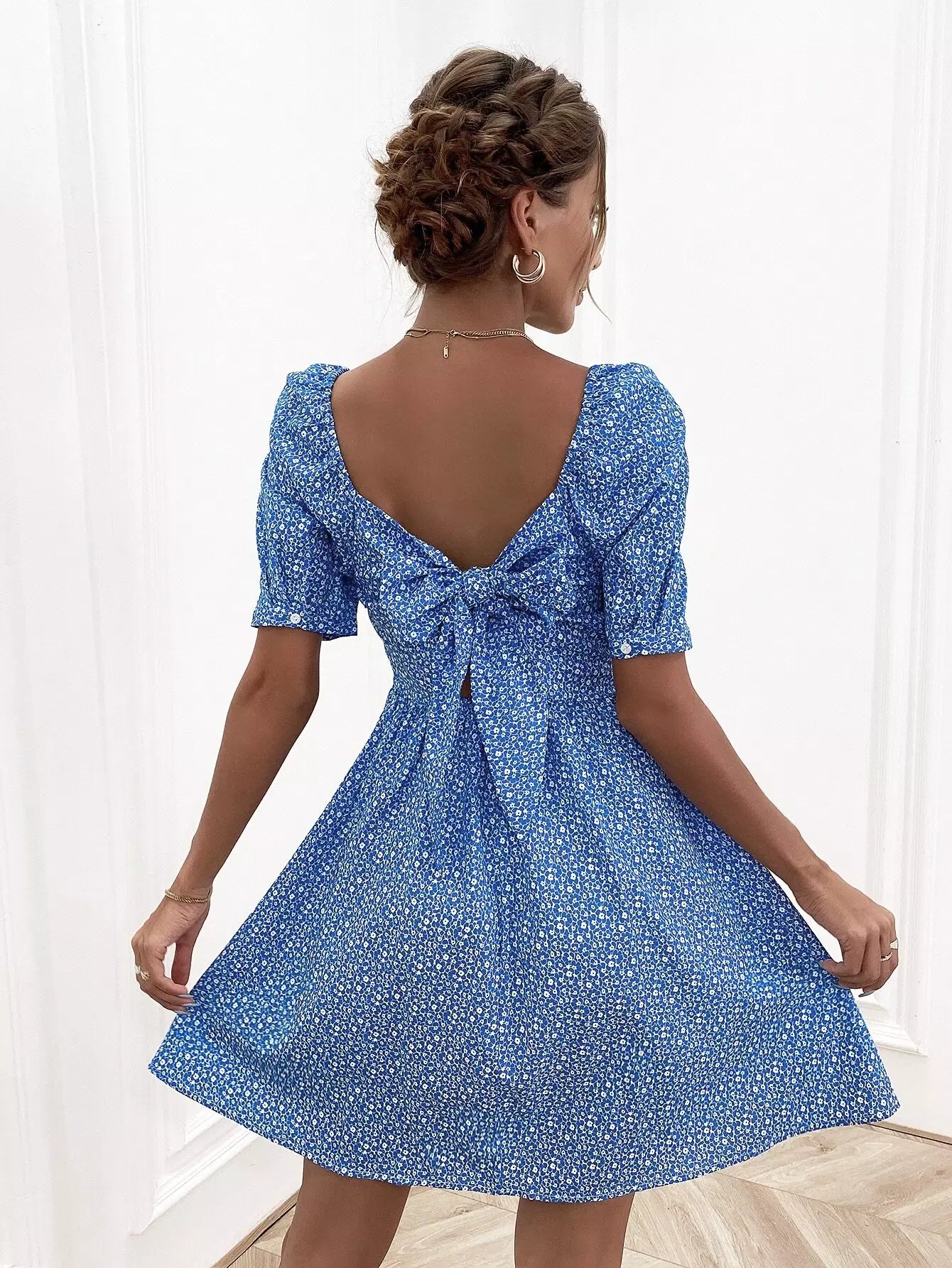 فستان ديتسي بطبعة زهور مطبوع بربطة عنق على الظهر