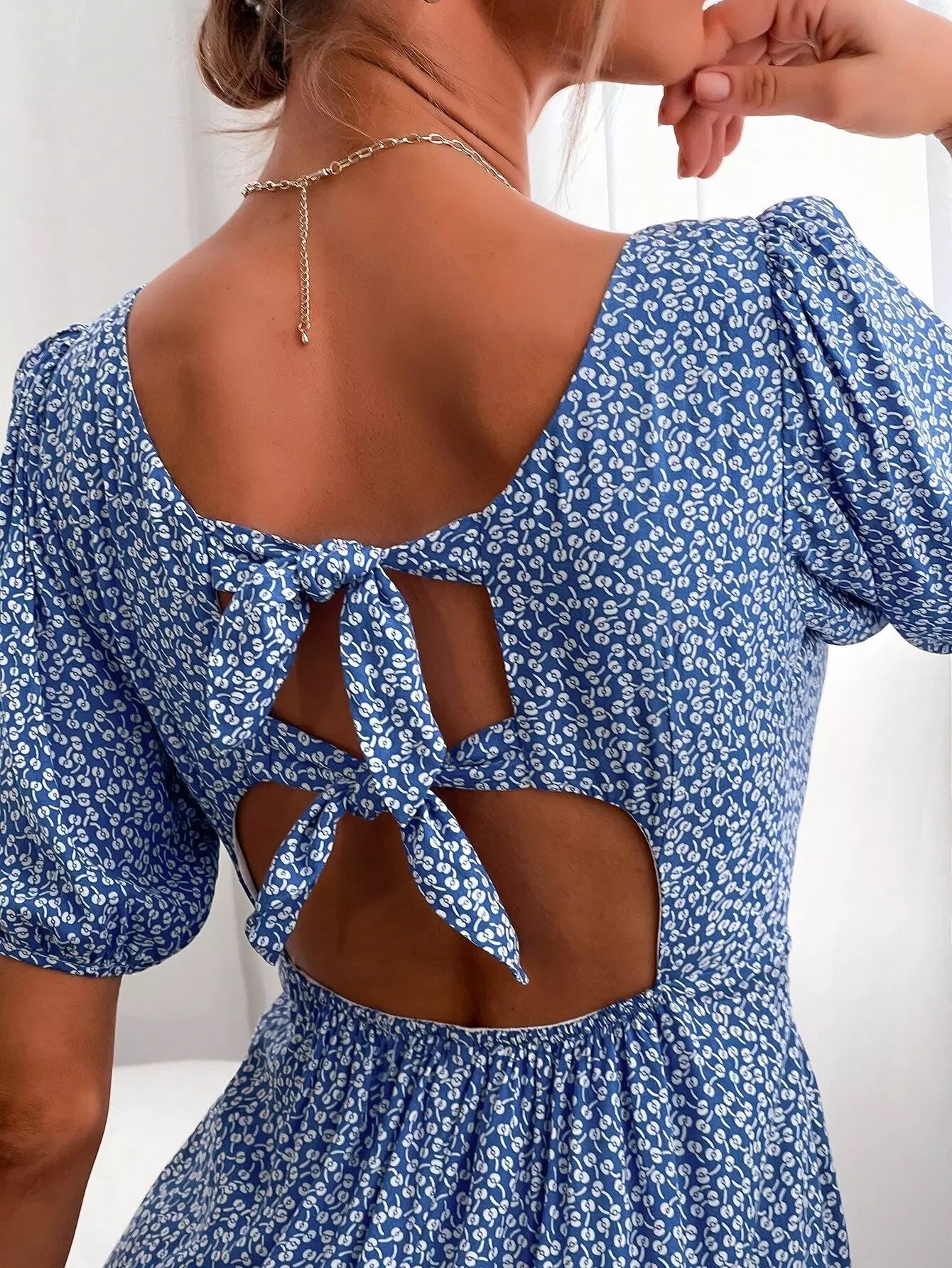 فستان ديتسي بطبعة زهور مطبوع بربطة عنق على الظهر