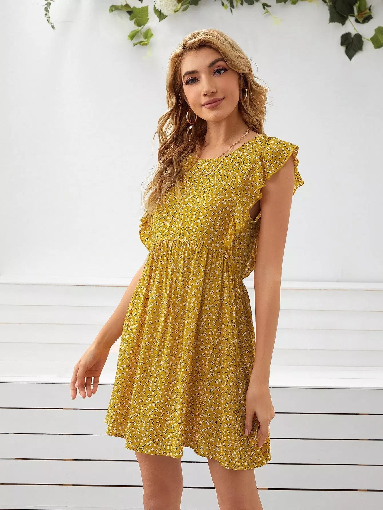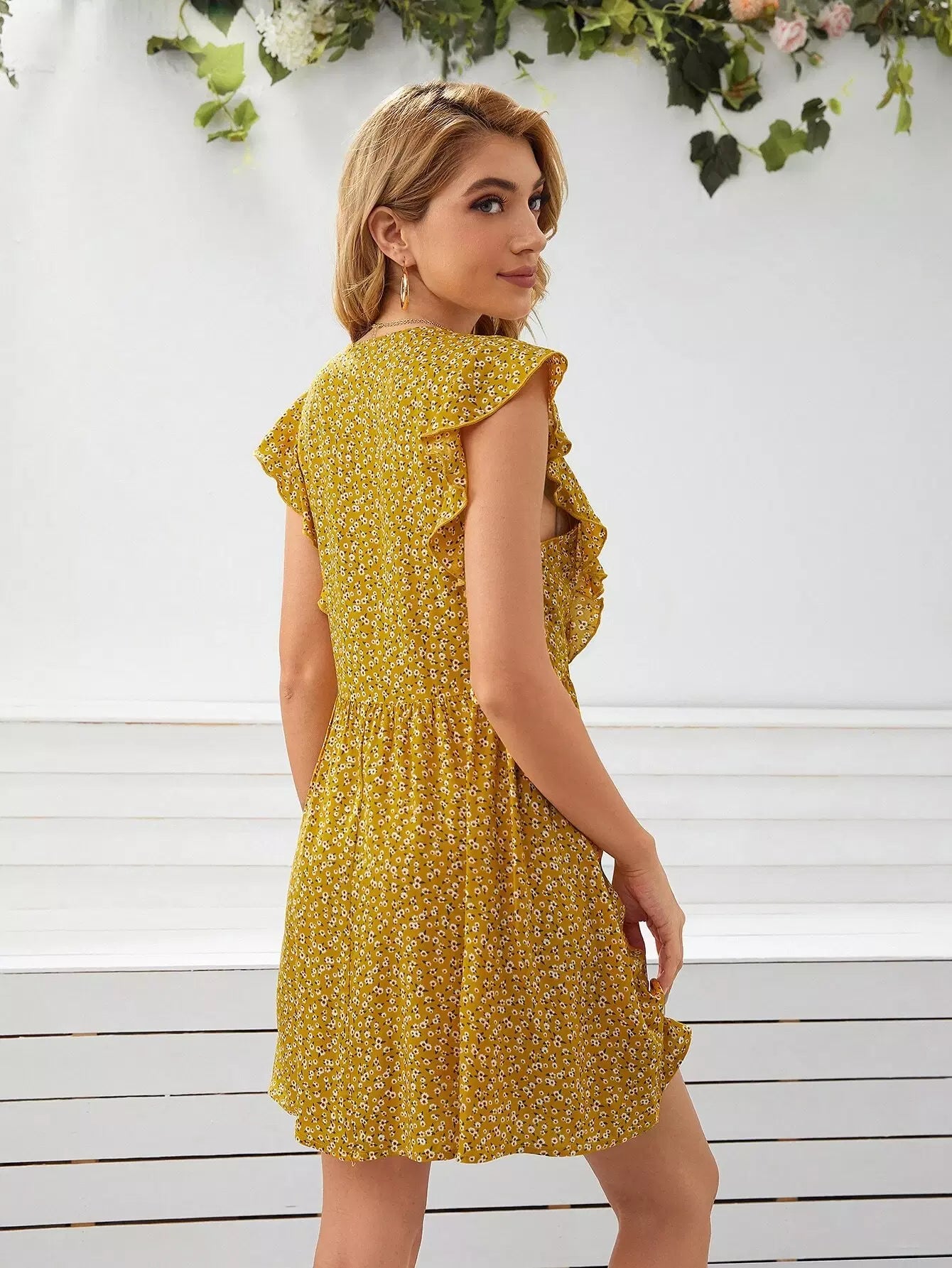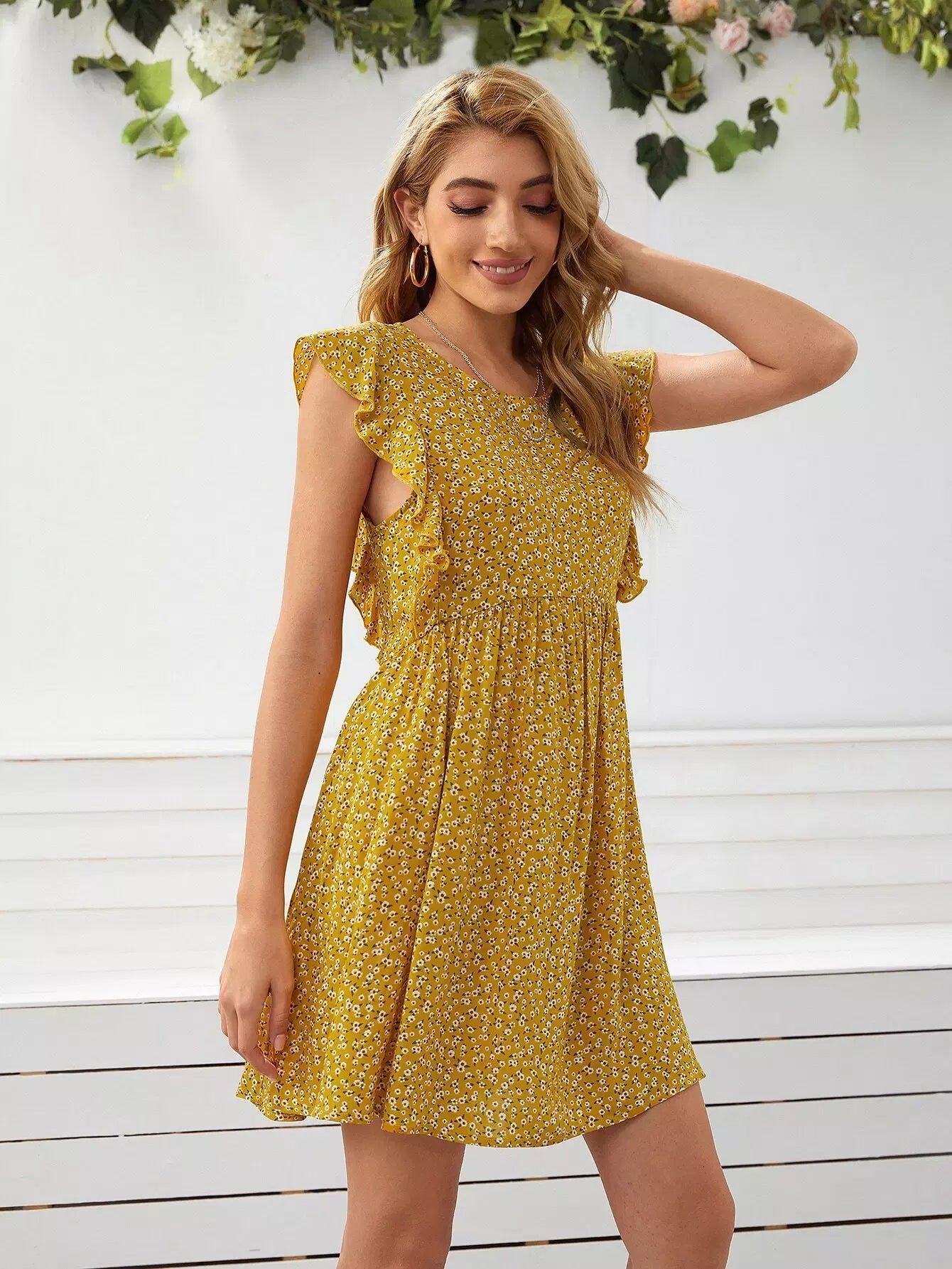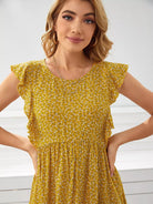 فستان بفتحة ذراع مكشكش مزين بالزهور