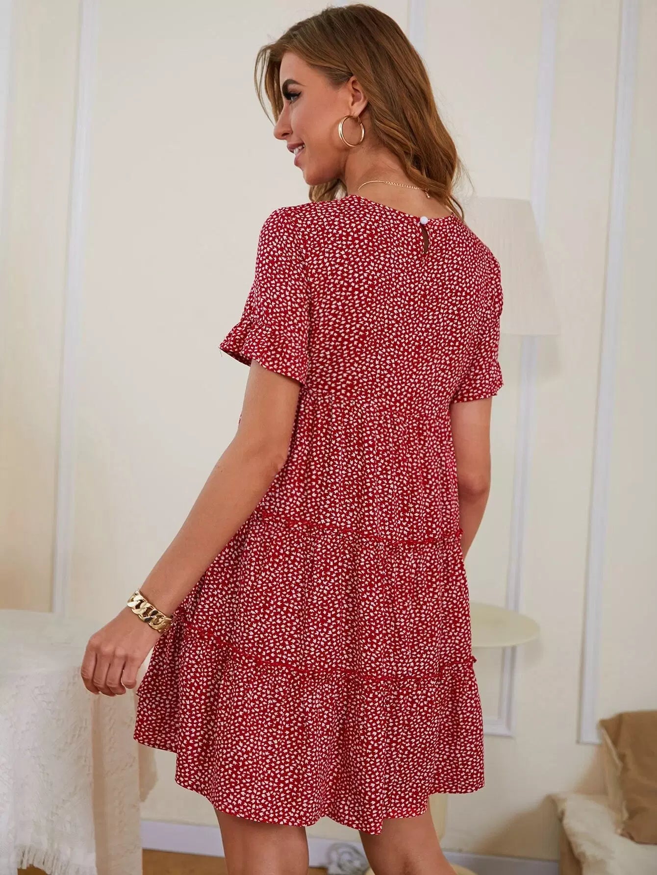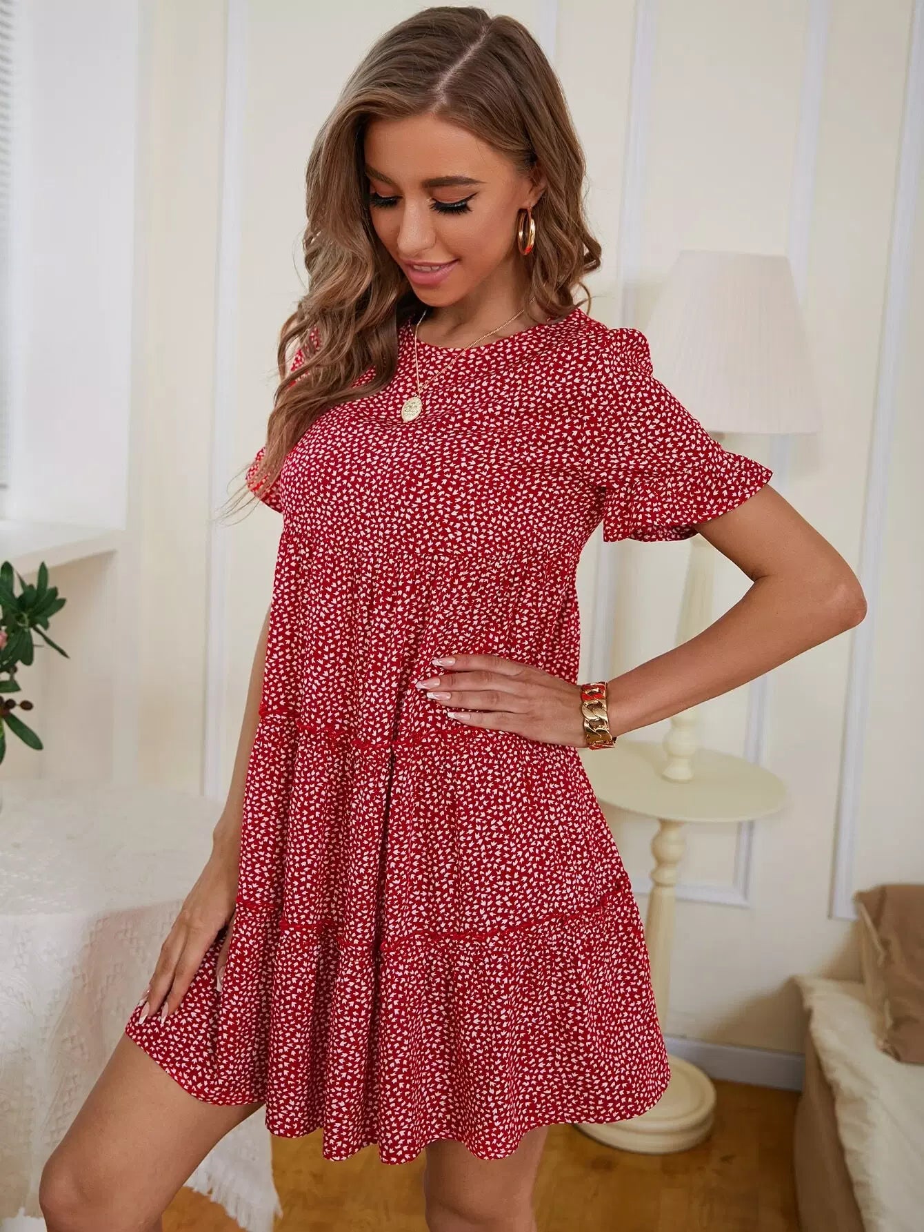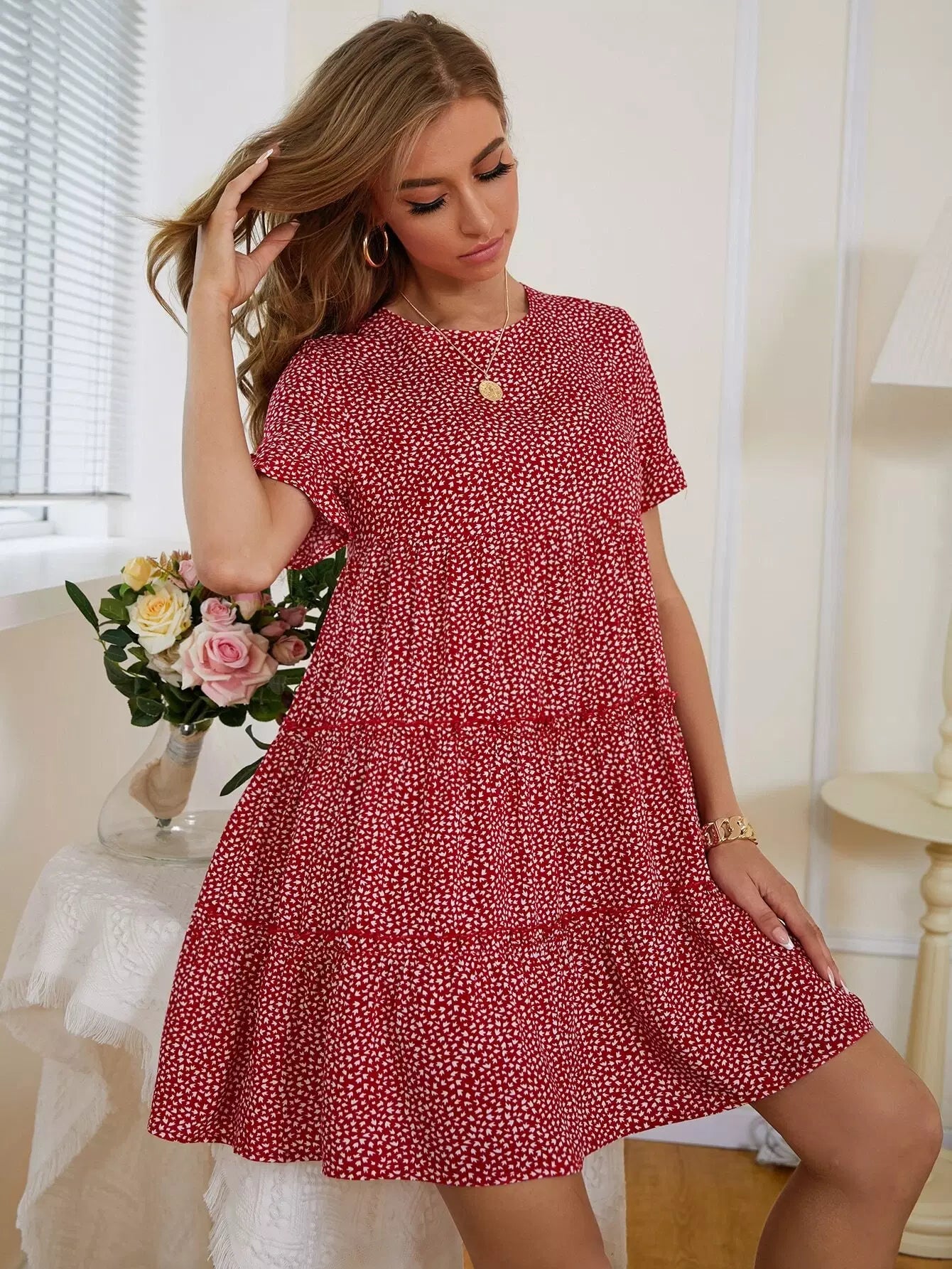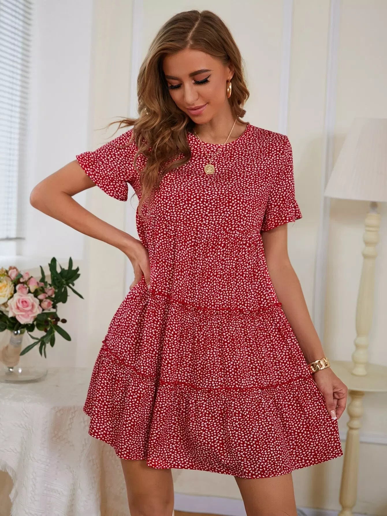 فستان ديتسي بحافة كشكش مزين بالورود