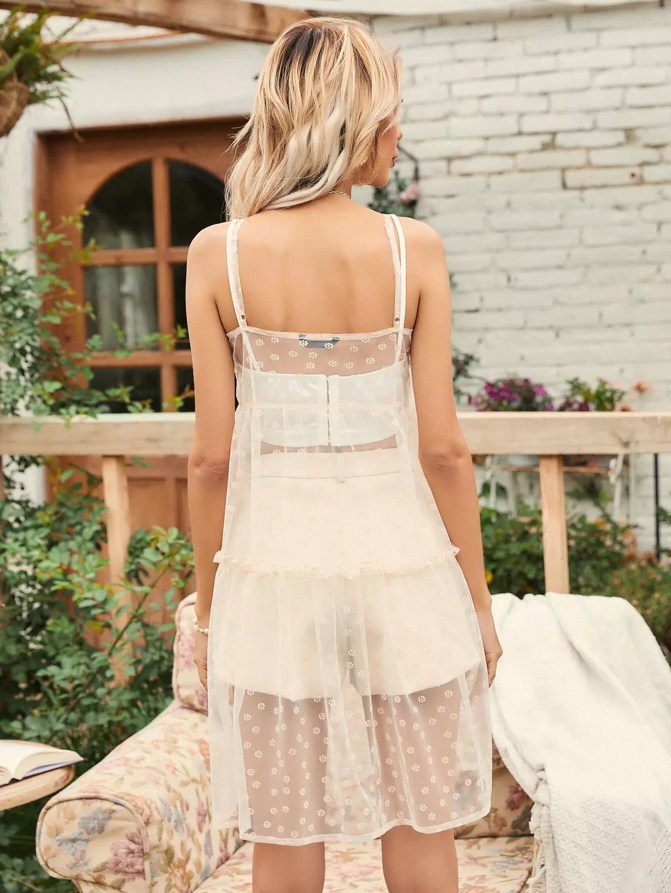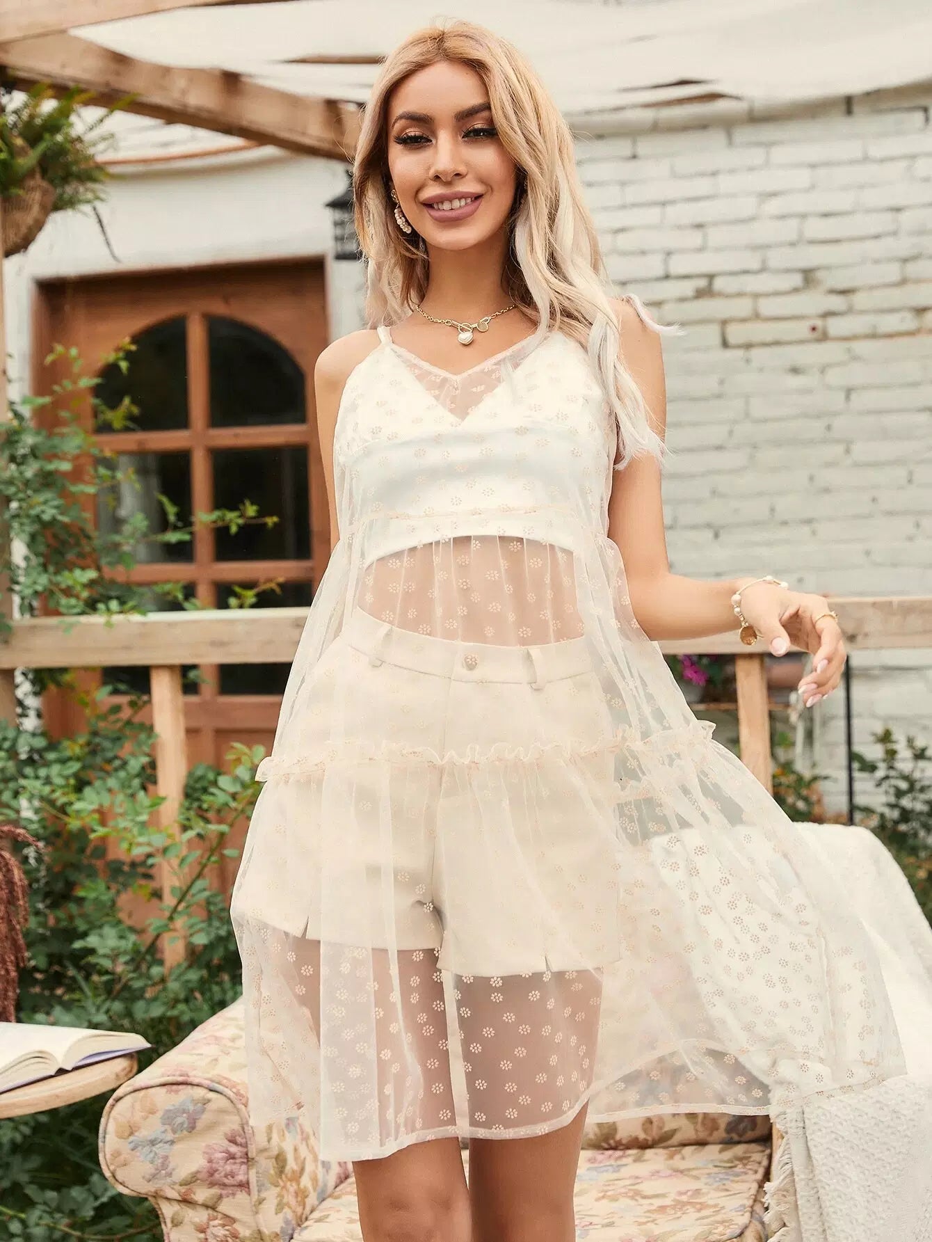 فستان كامي شفاف من القماش الشبكي مزين بنقشة الزهور