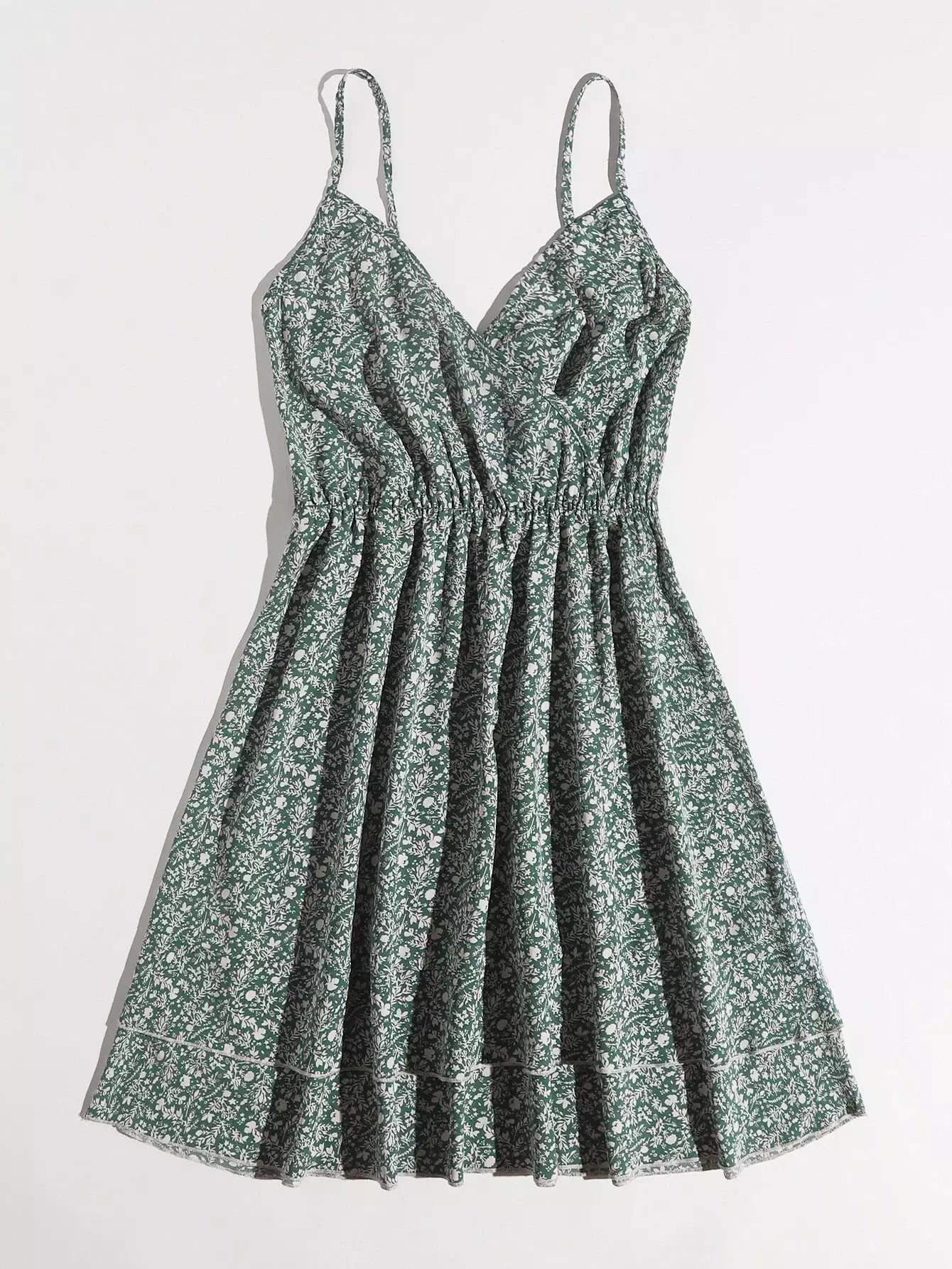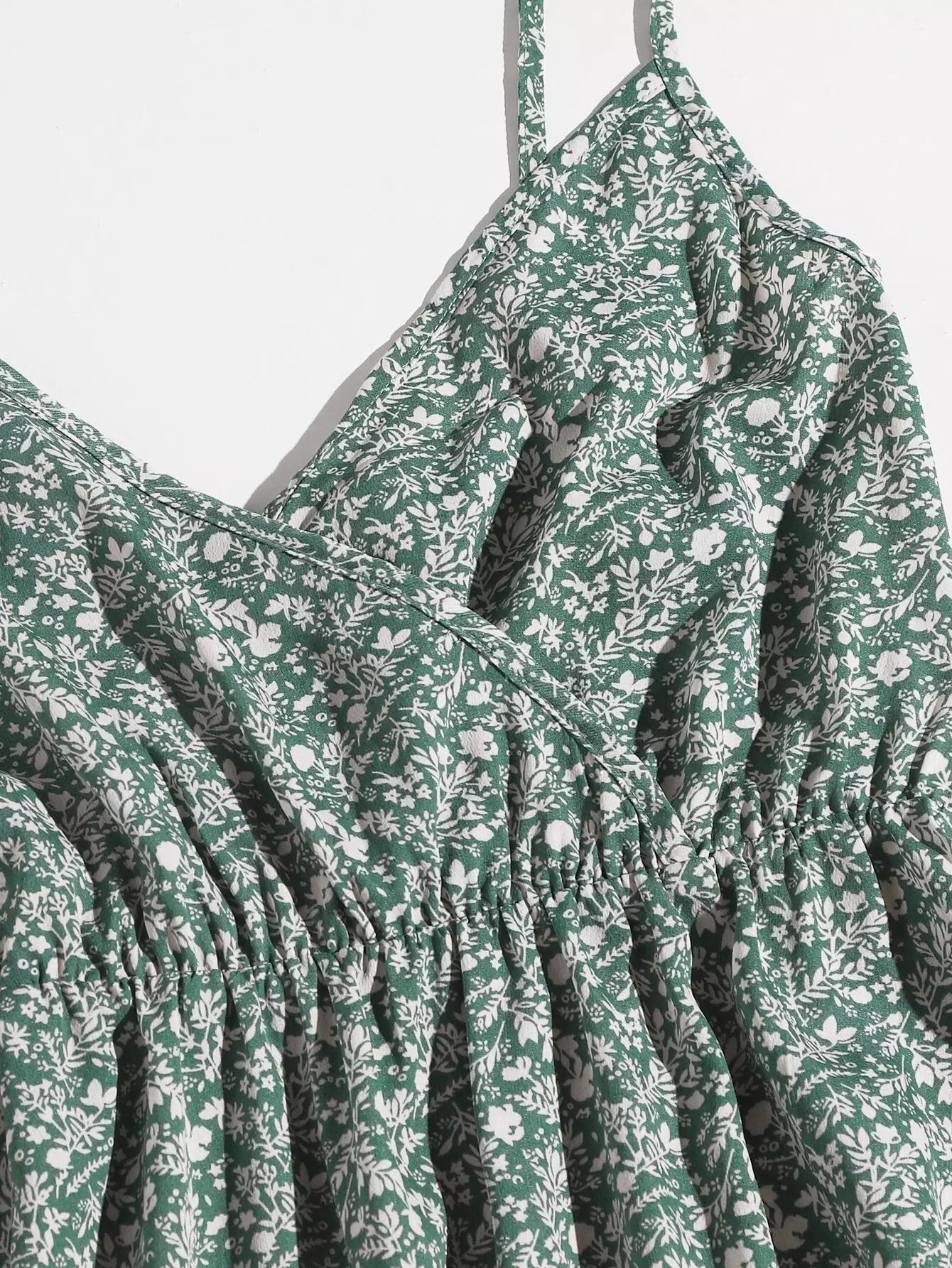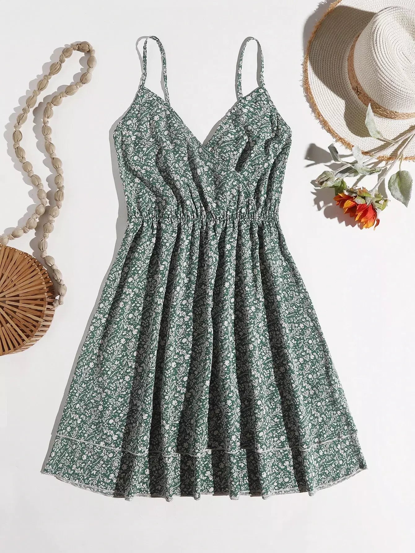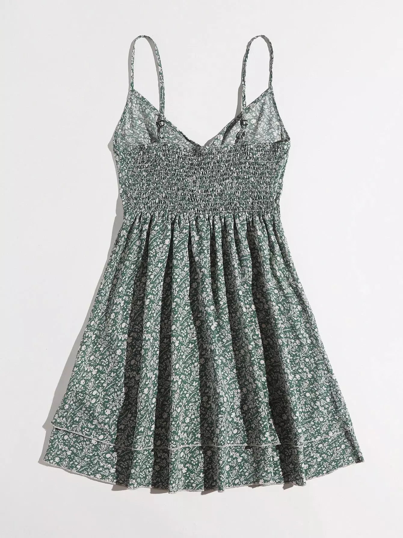 فستان ديتسي مزين بالورود مزين بشريط كامي