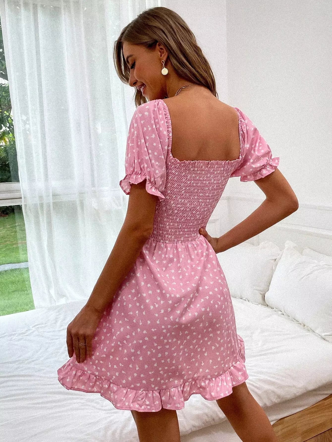 فستان ديتسي برقبة زهرية بفتحة رقبة على شكل حرف A
