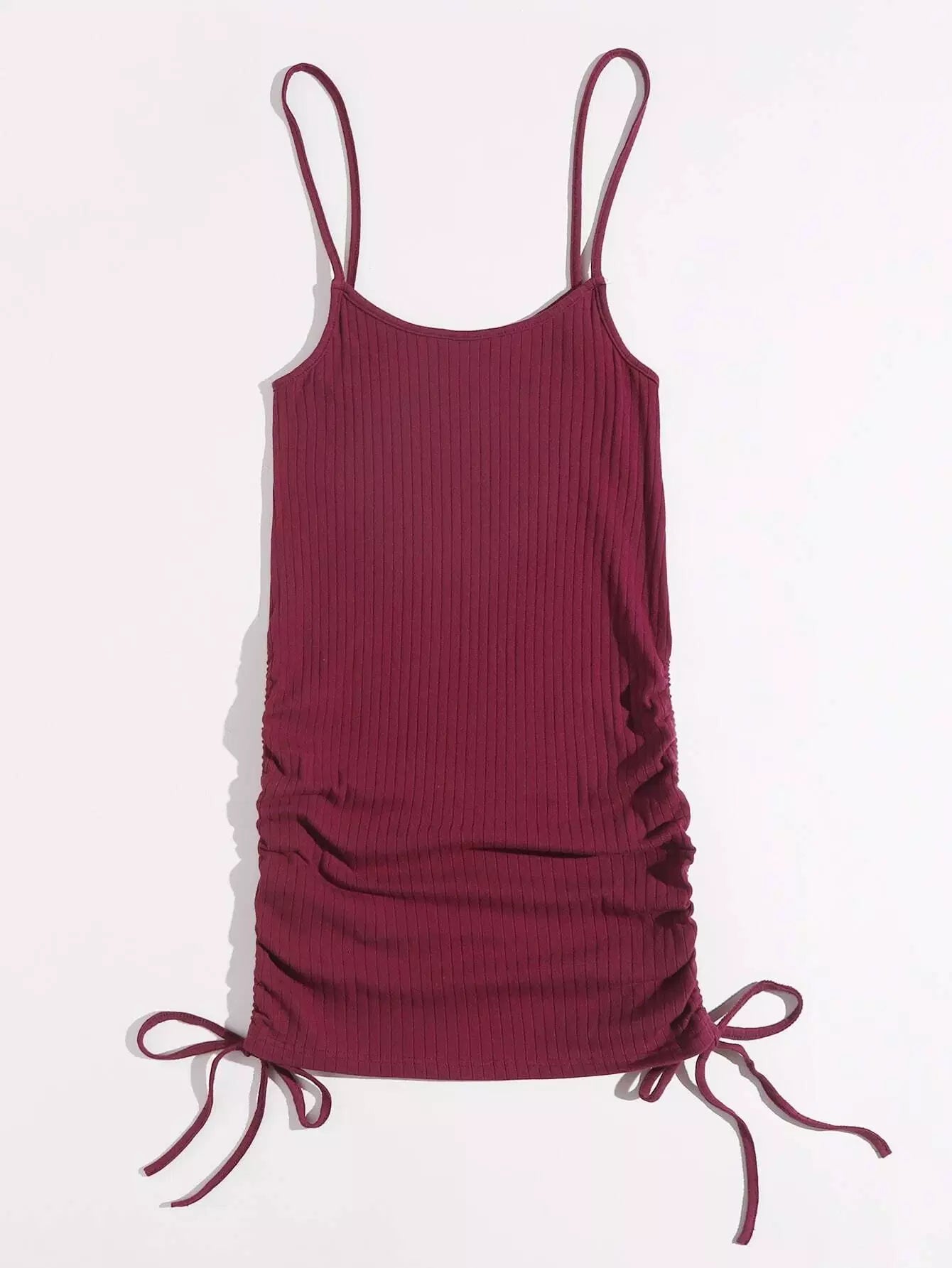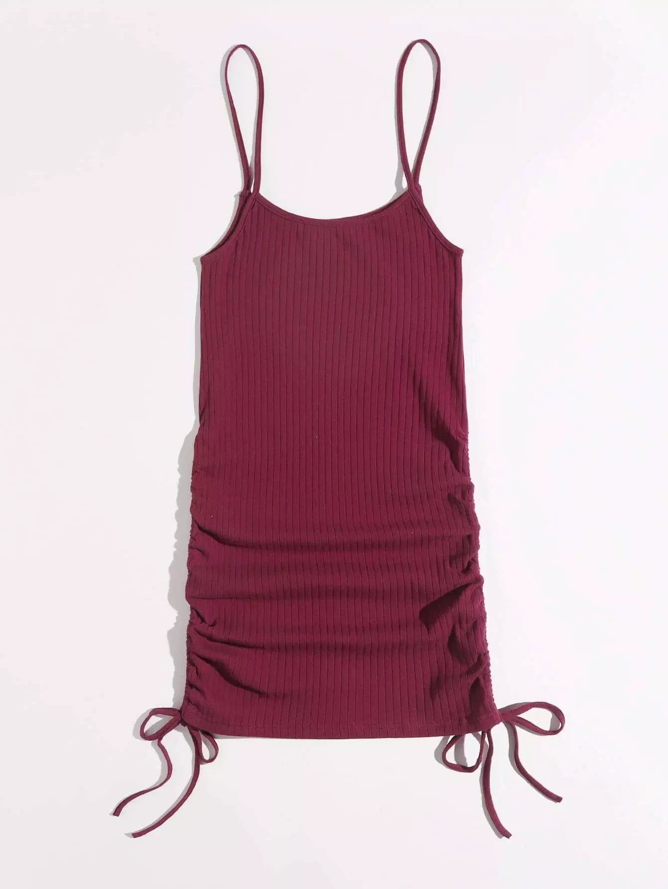 فستان محبوك بأربطة جانبية برباط من نسيج مضلع محبوك