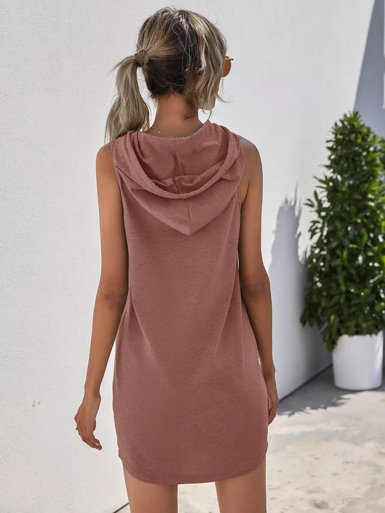 فستان بدون أكمام بأربطة بلا أكمام بغطاء للرأس