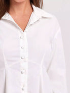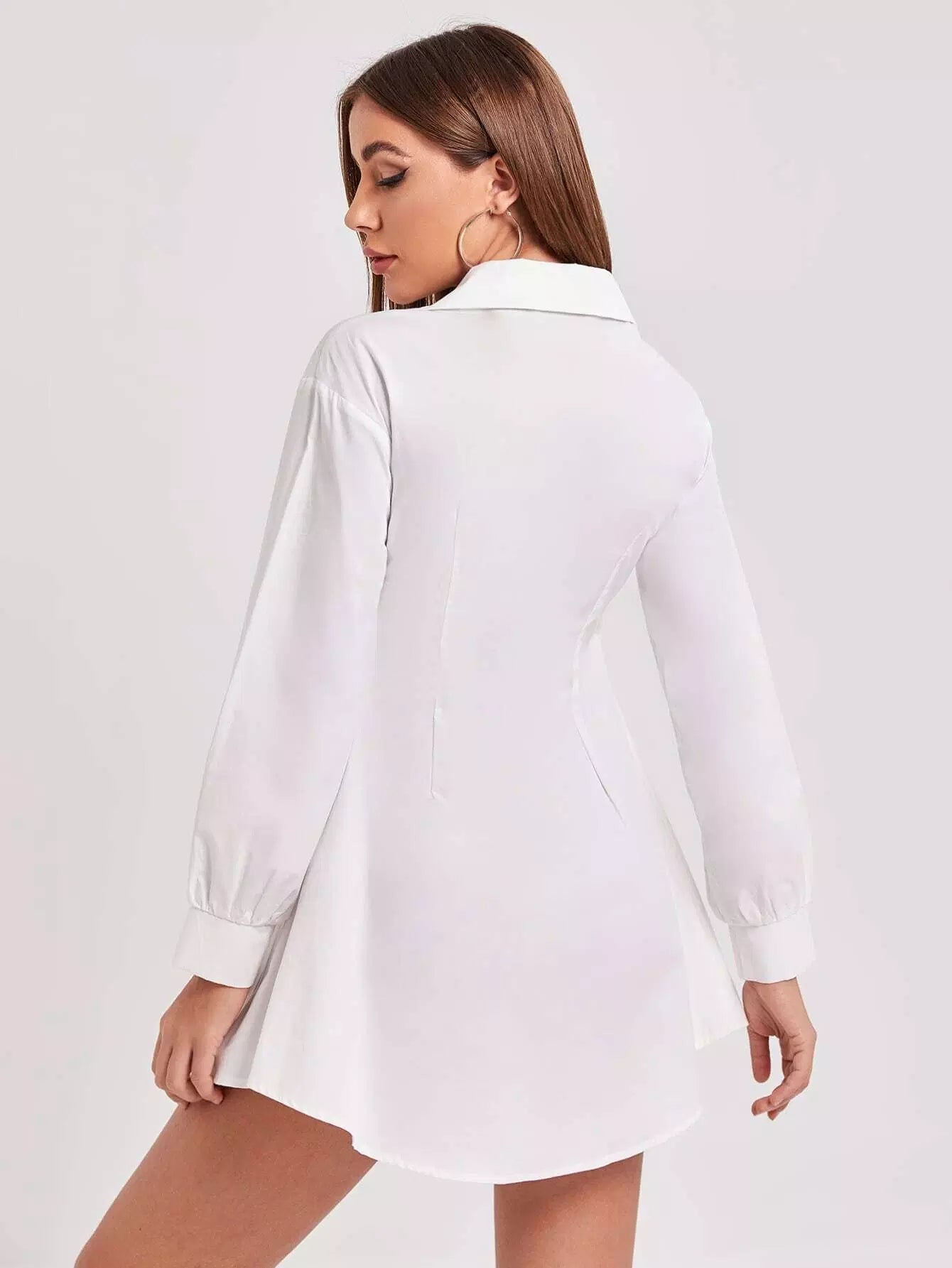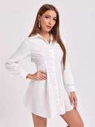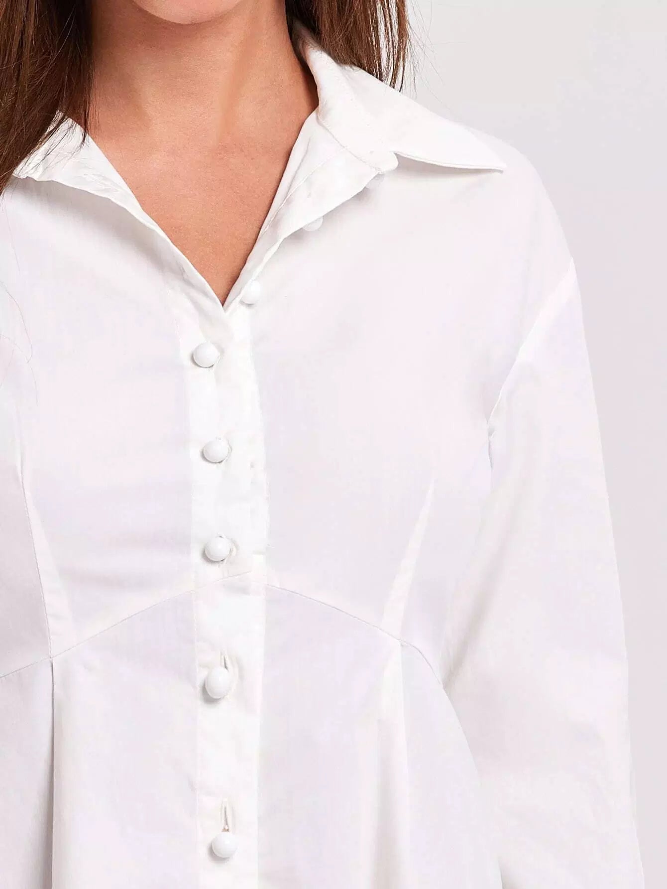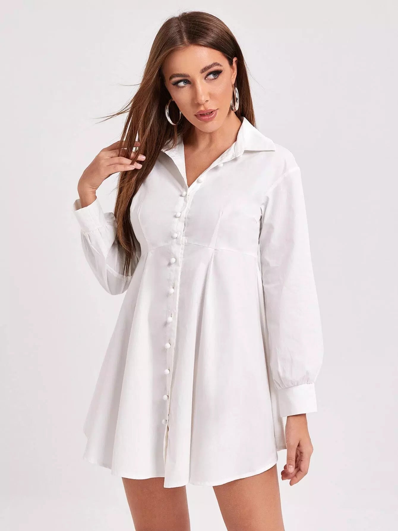 فستان قميص منسدل الكتفين بأزرار أمامية