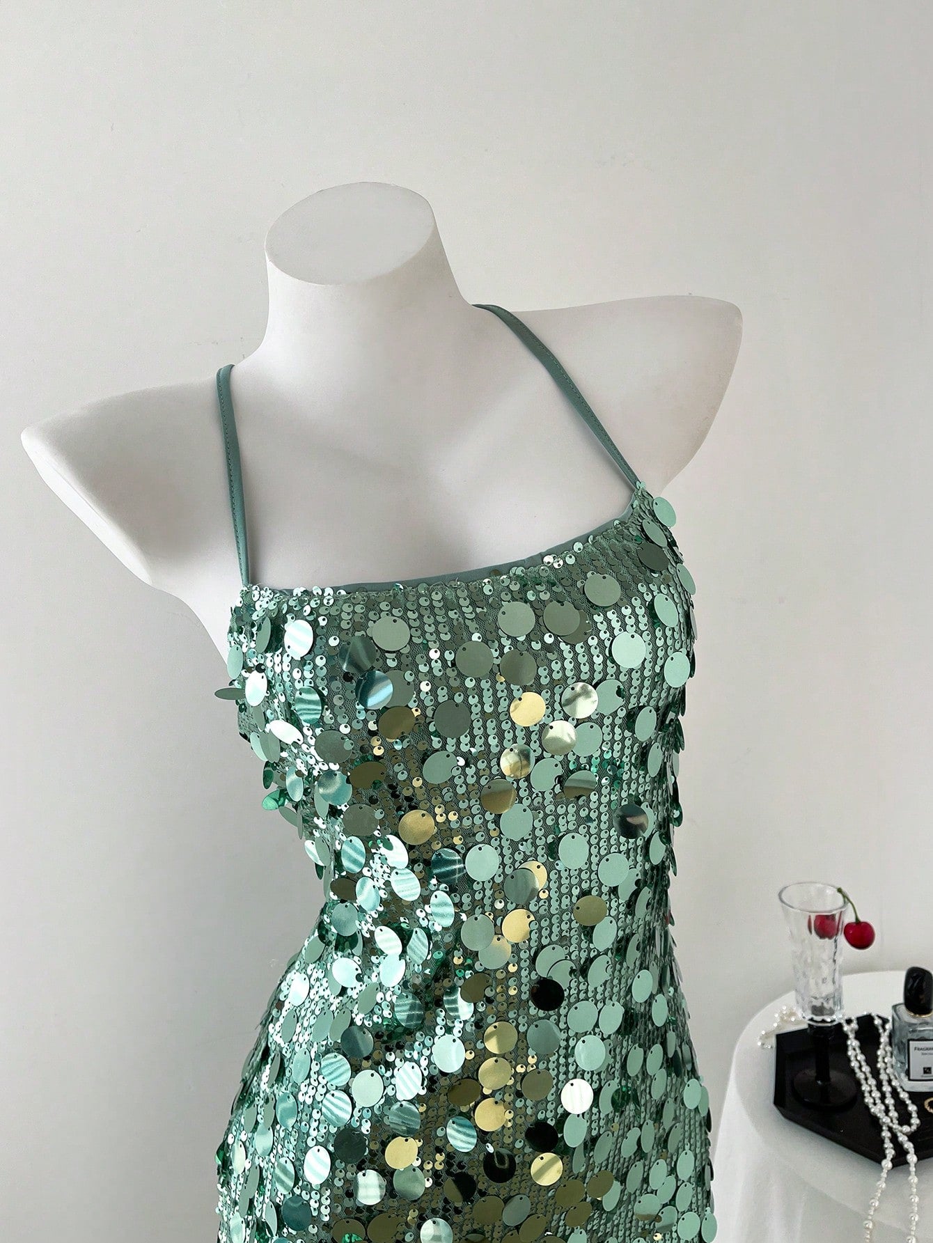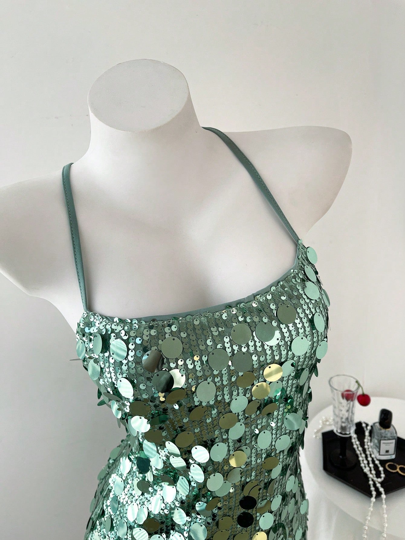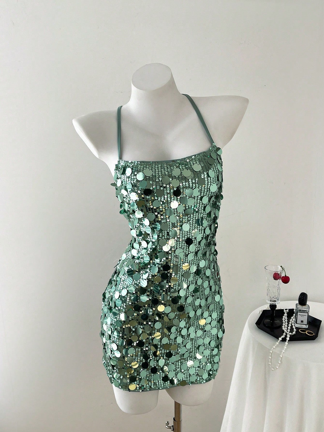 women Elamini Women's Solid Sequin Backless Criss-Cross Strap Glamour Mini Dress